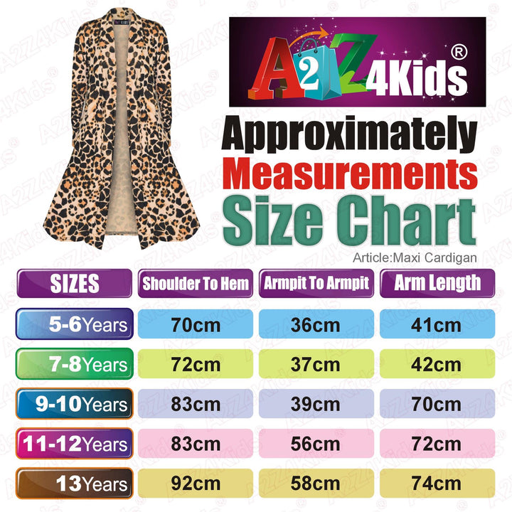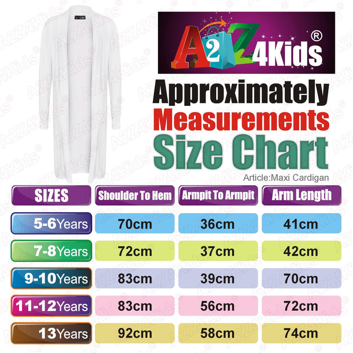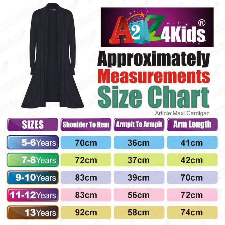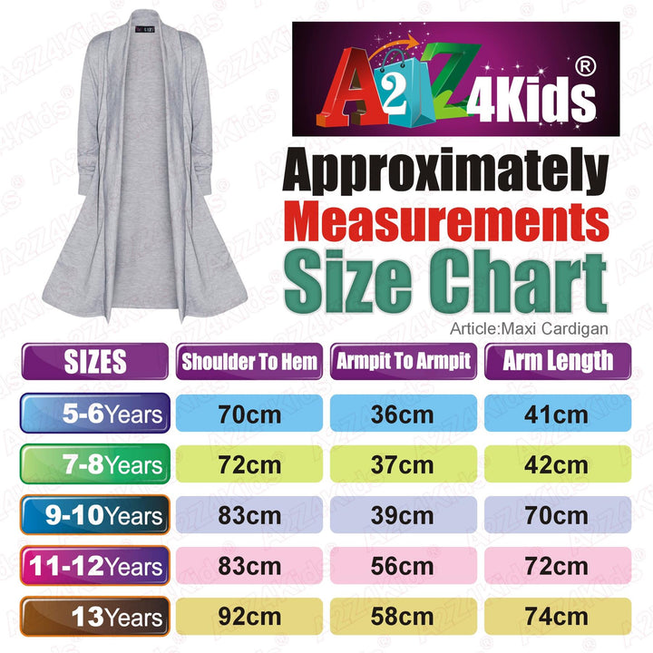 Kids Girls Long Sleeves Maxi Boyfriend Floaty Cardigan Ladies Open Front 5-13 Yr