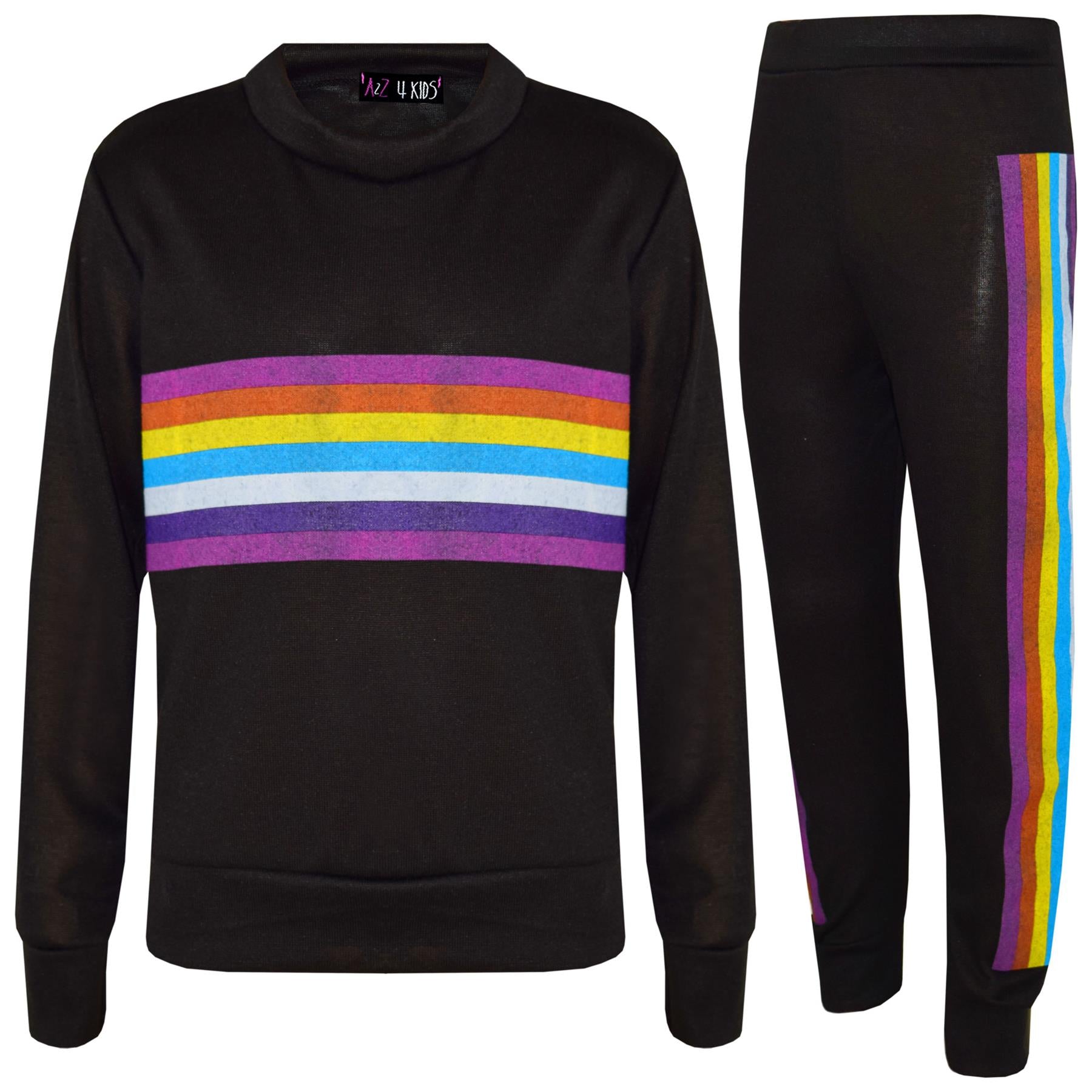 Kids Girls Lounge Suit Rainbow Striped Top Bottom Lounge Wear Tracksuit 7-13 Yr