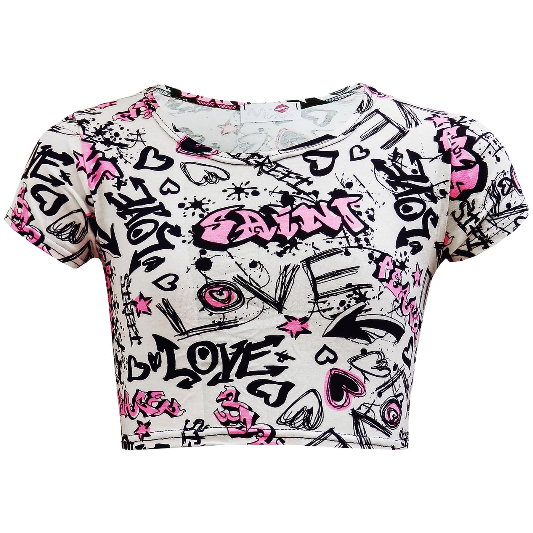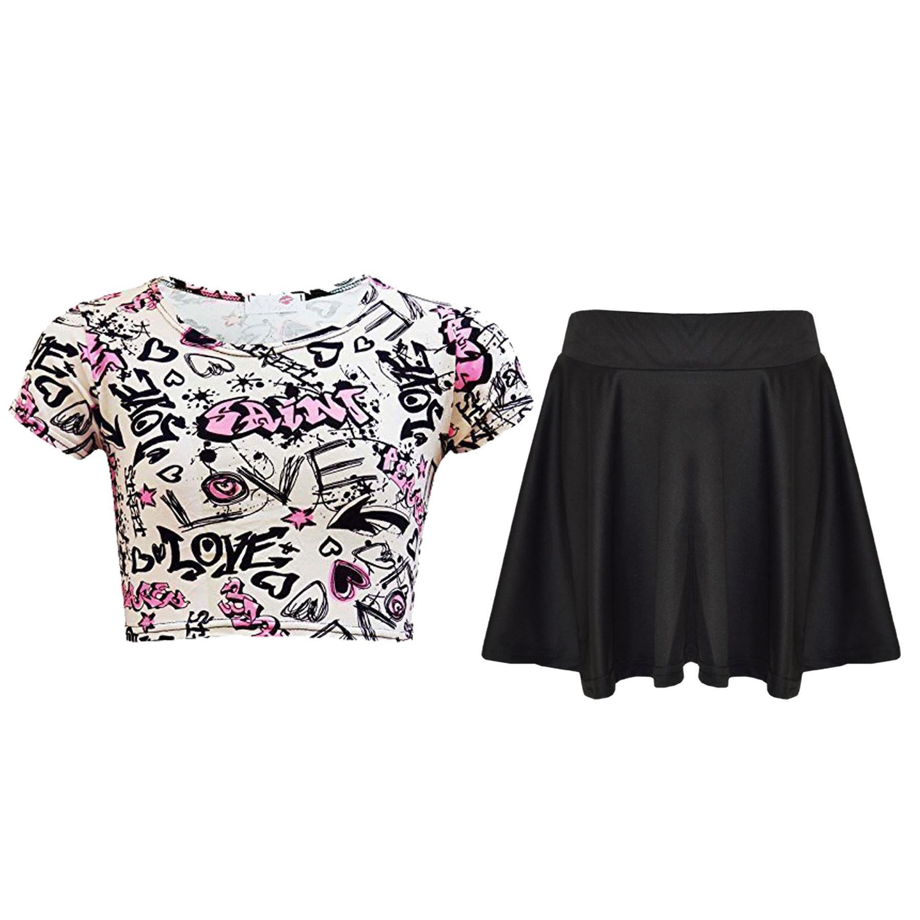 Kids Girls Love Comic Graffiti Print Legging Skater Midi Dress Crop Top Skirt