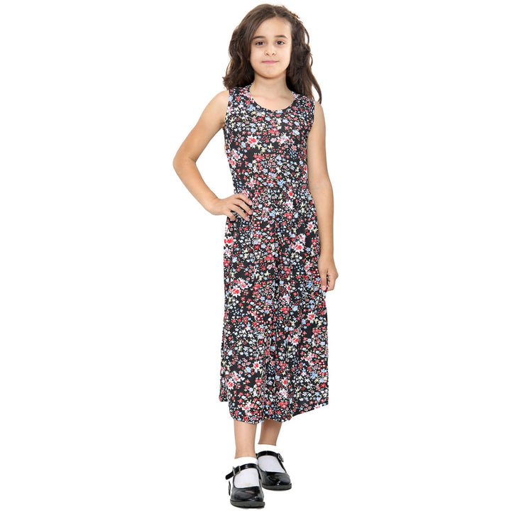 Kids Girls Maxi Dress Sleeveless Printed Party Fashion Summer Long Skater Dress