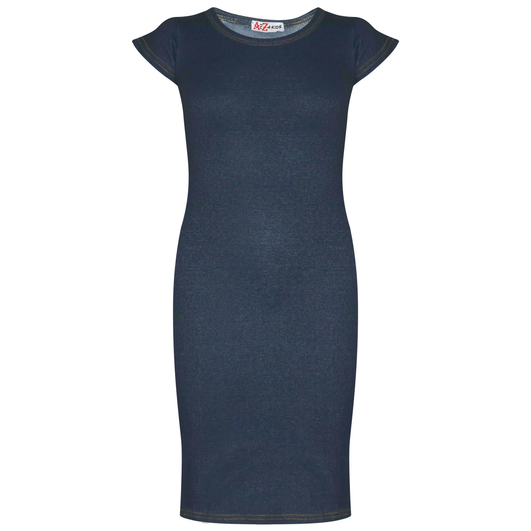 Kids Girls Midi Maxi Denim Dress Ladies Party Fashion Long Slim Fit Stretchy Top