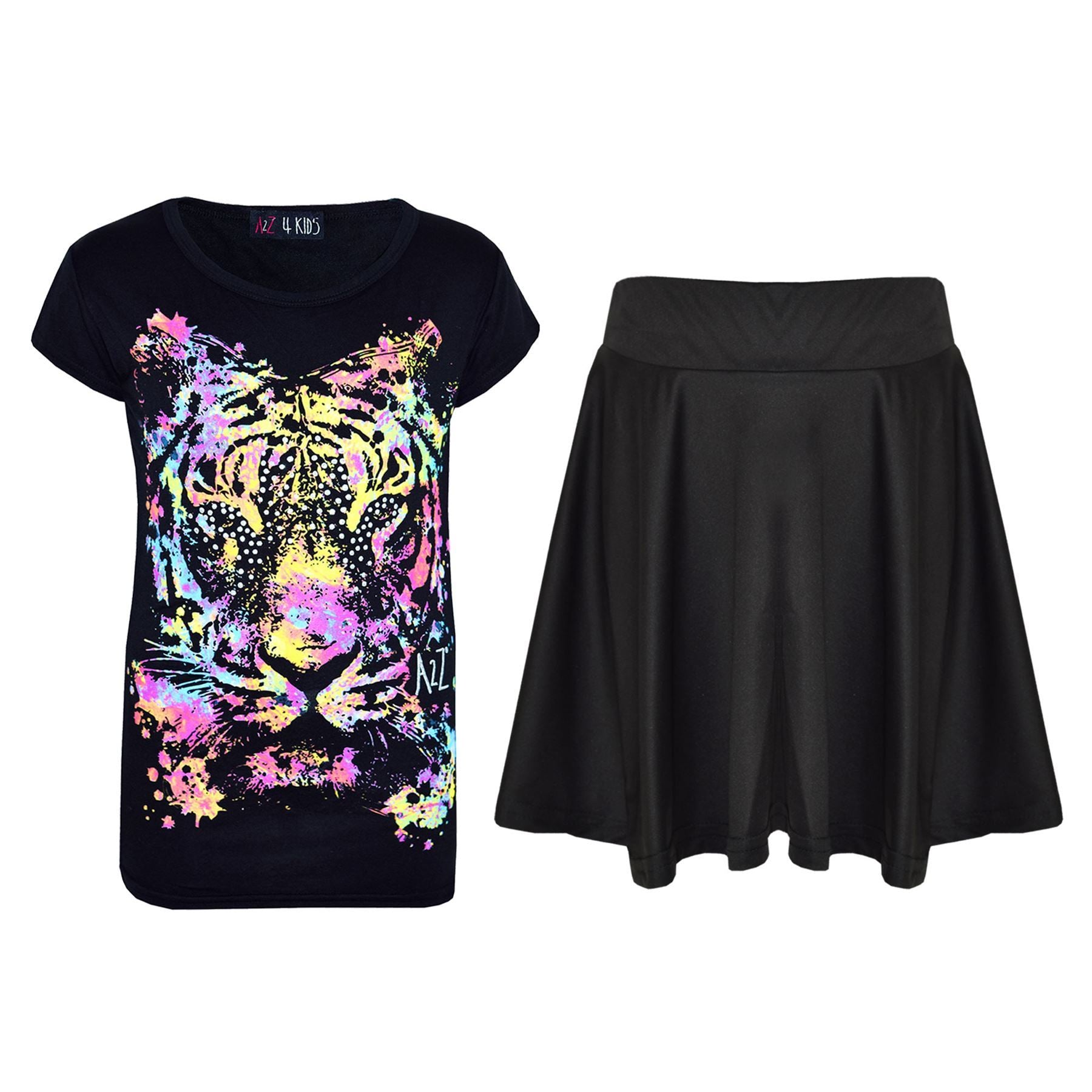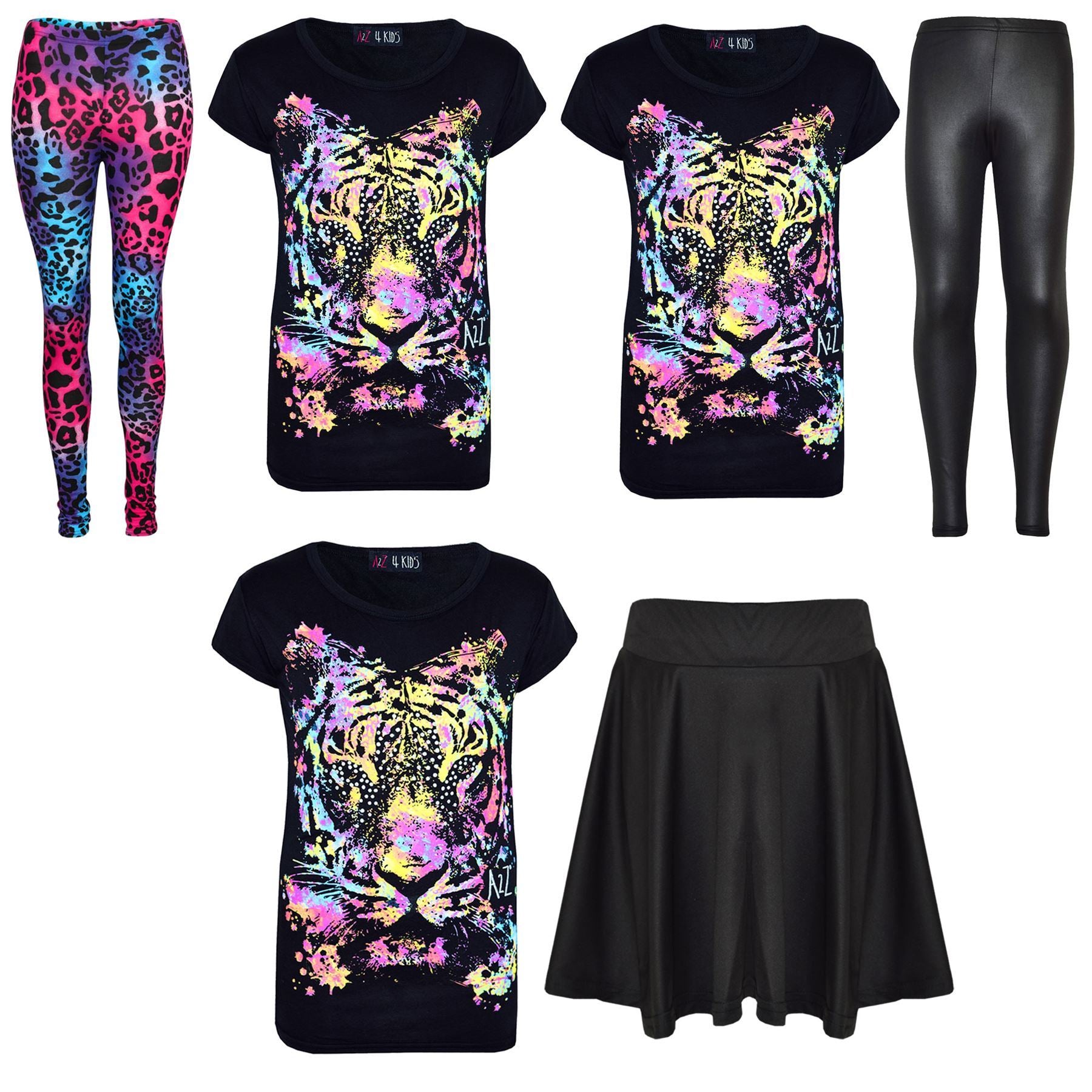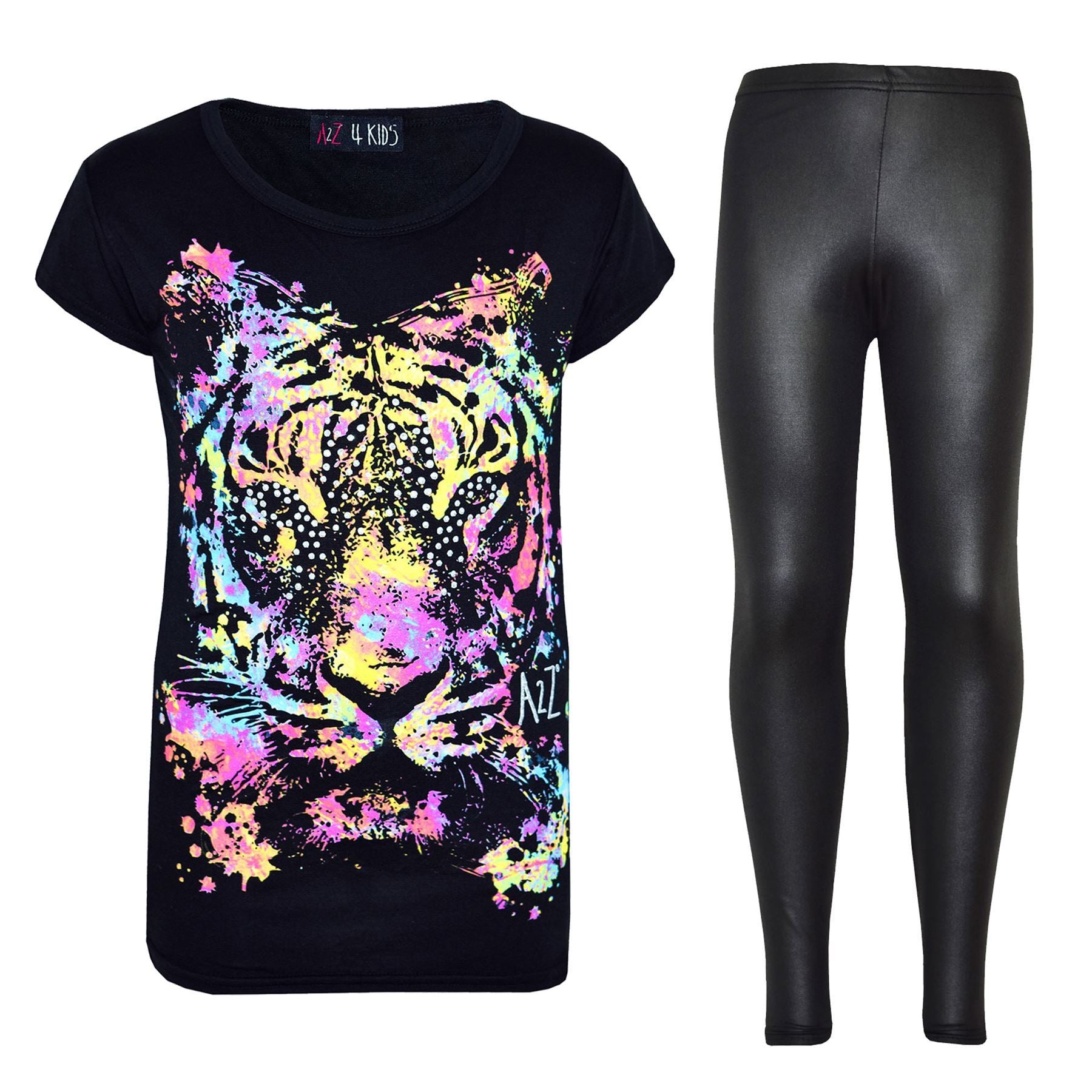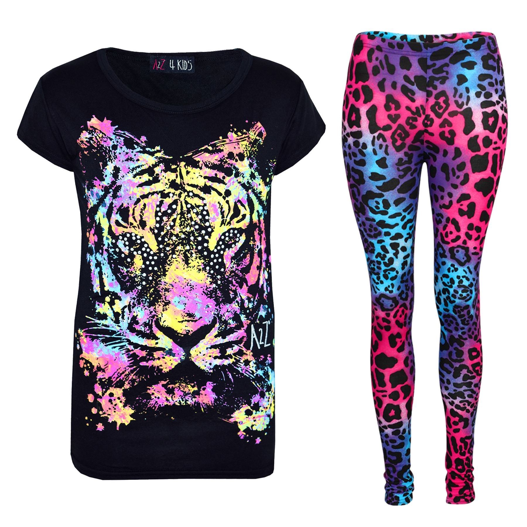 Kids Girls Multi Tiger Print Trendy T Shirt Top & Fashion Legging Set 7-13 Year