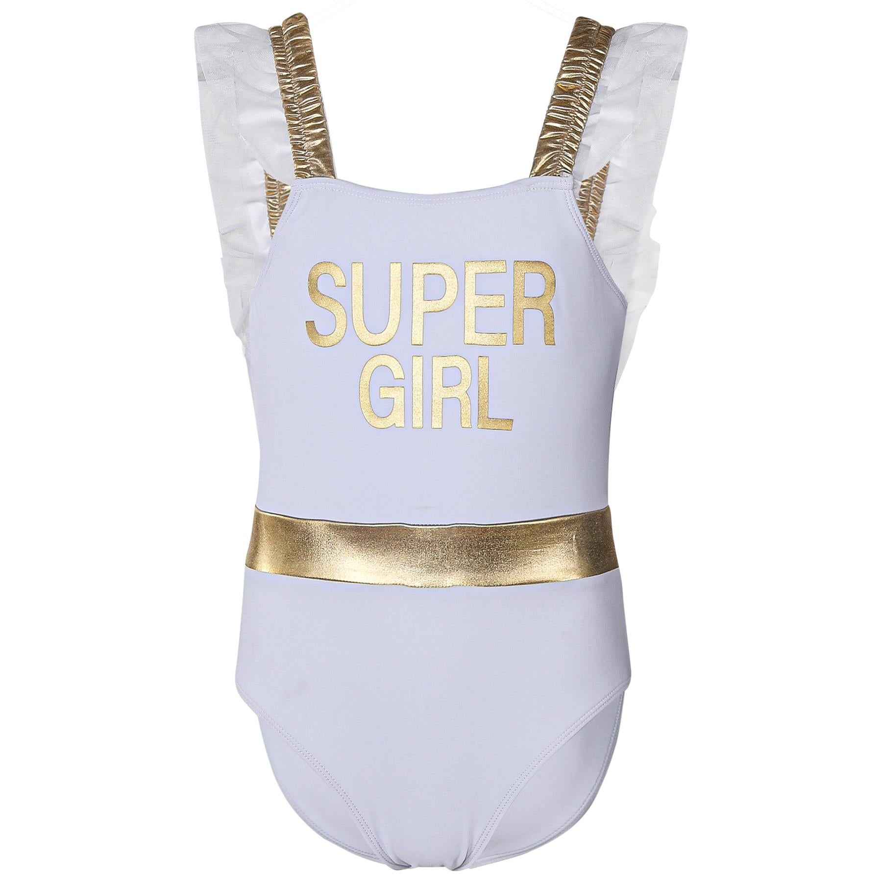Kids Girls One Piece Swimsuit Gold Trim Super Girl Beach Surfing Swimwear 2-14