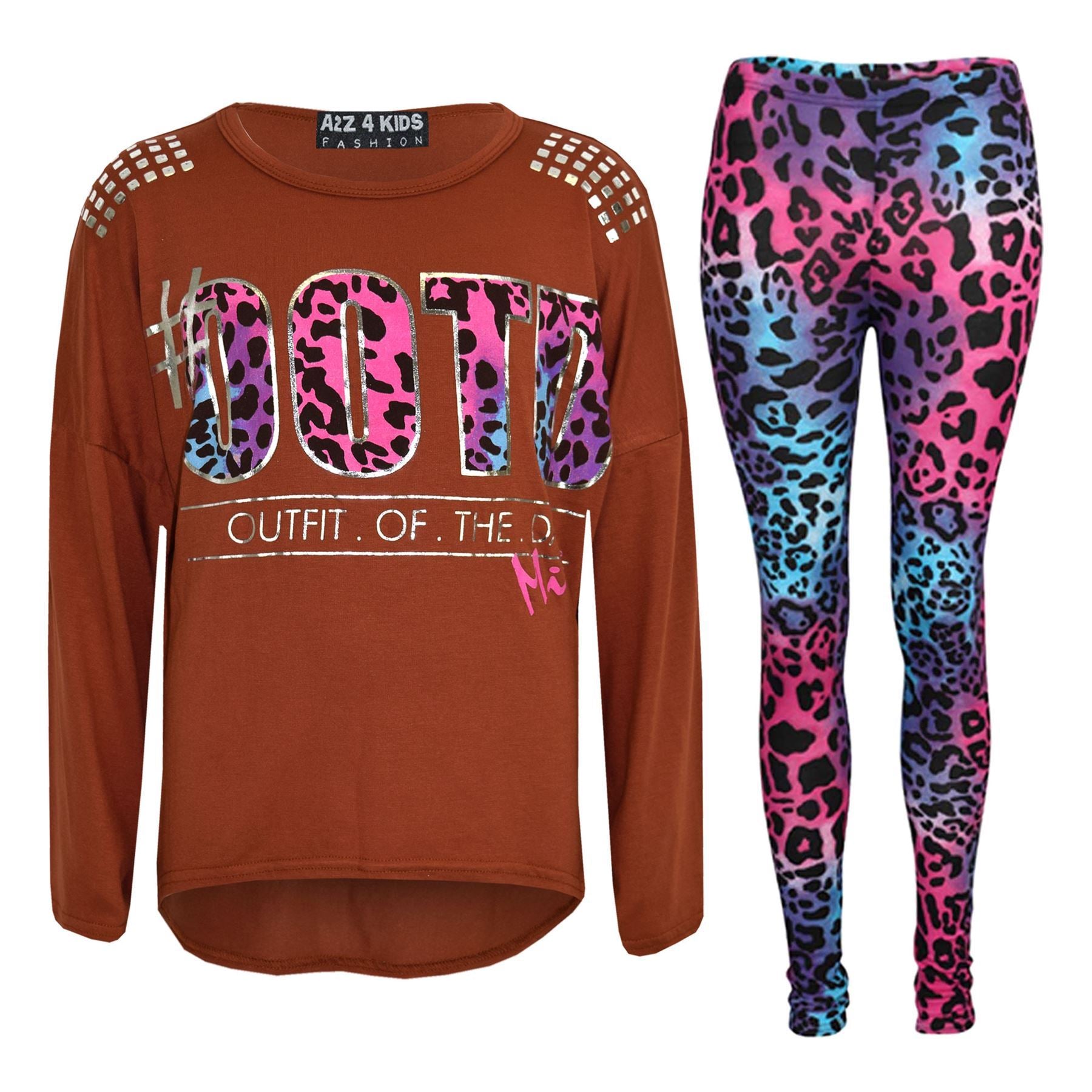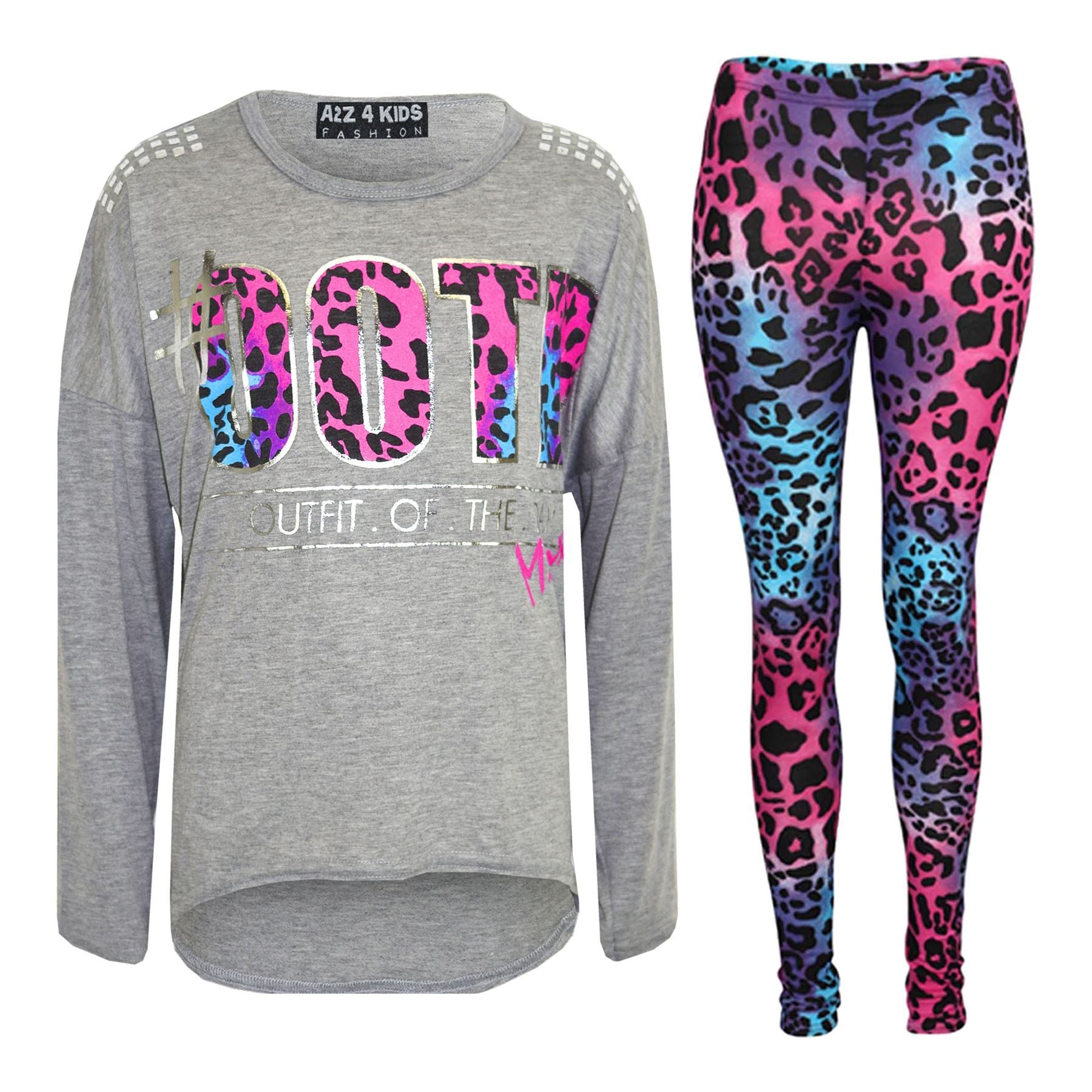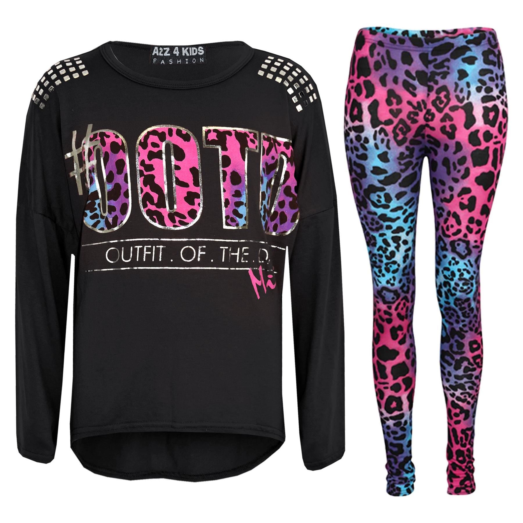 Kids Girls #OOTD Print Long Sleeves Top & Matching Fashion Legging Set 7-13 Year