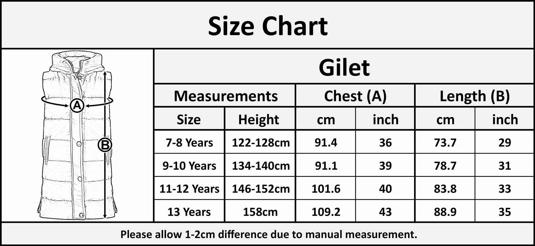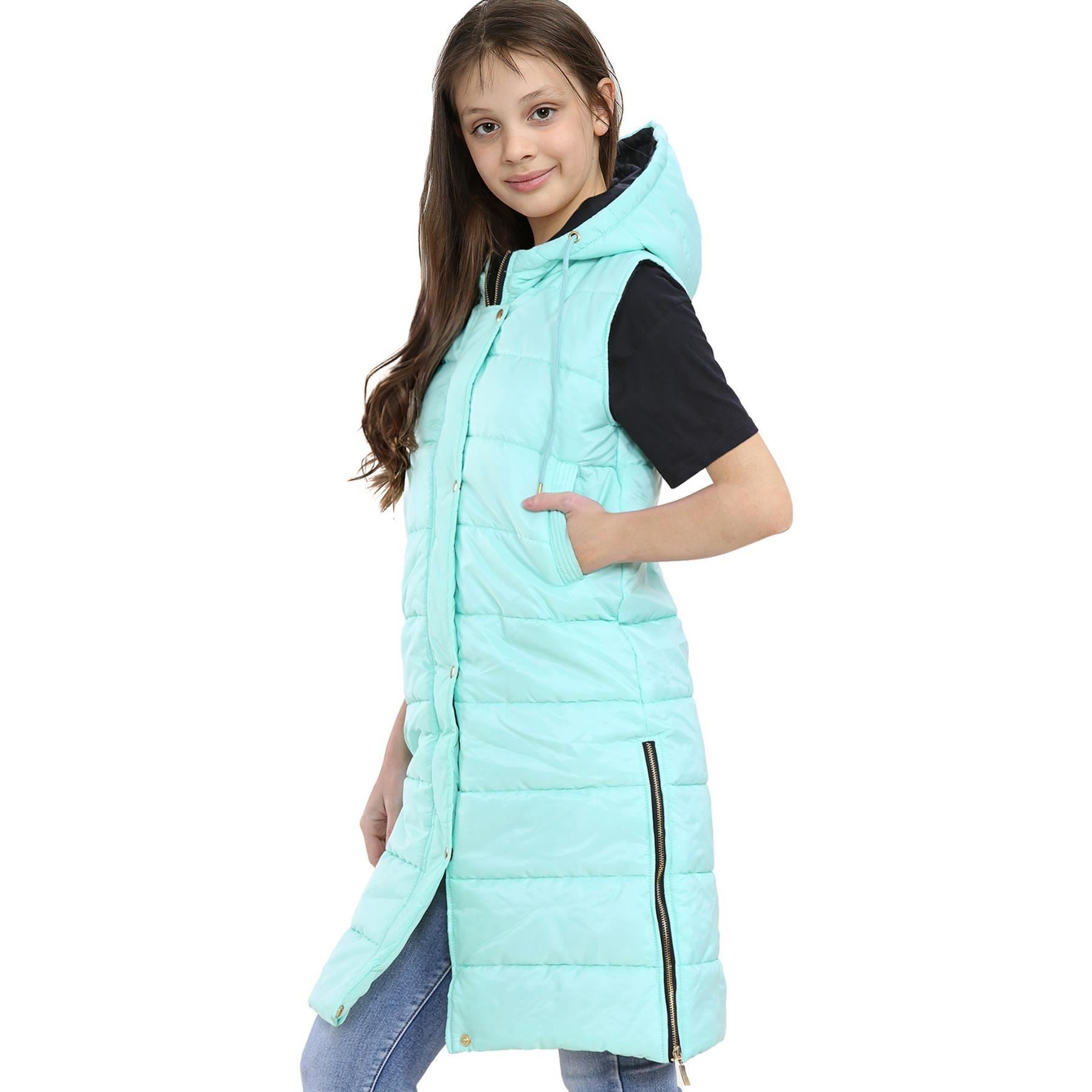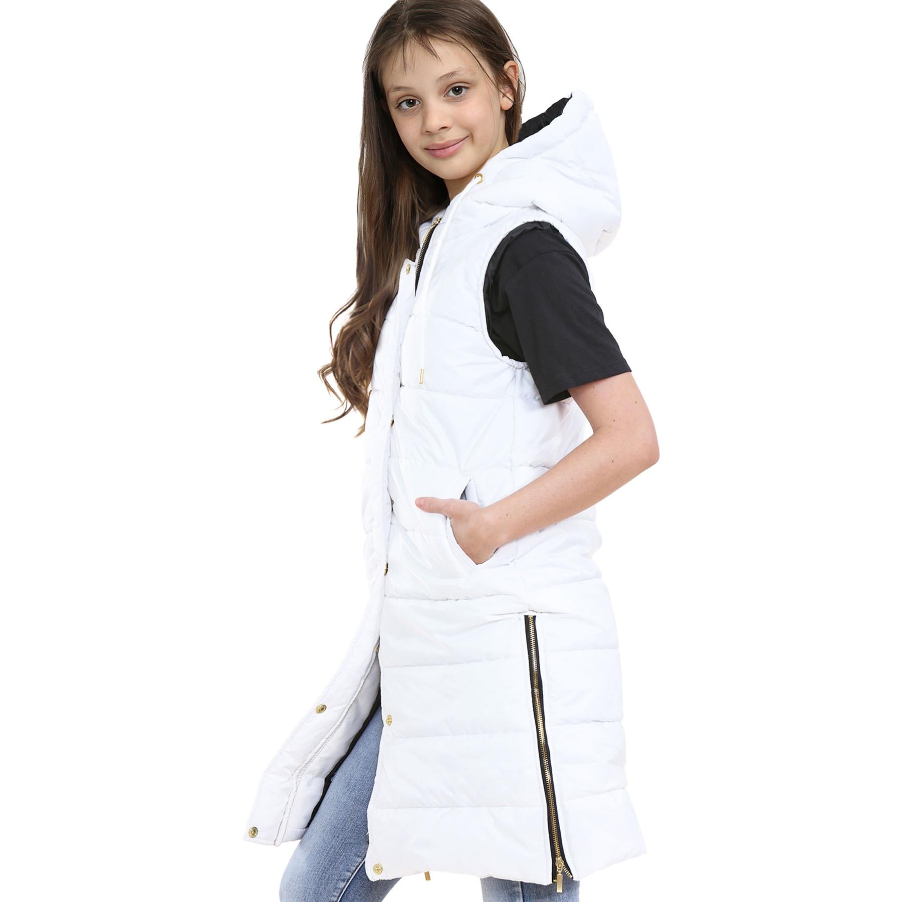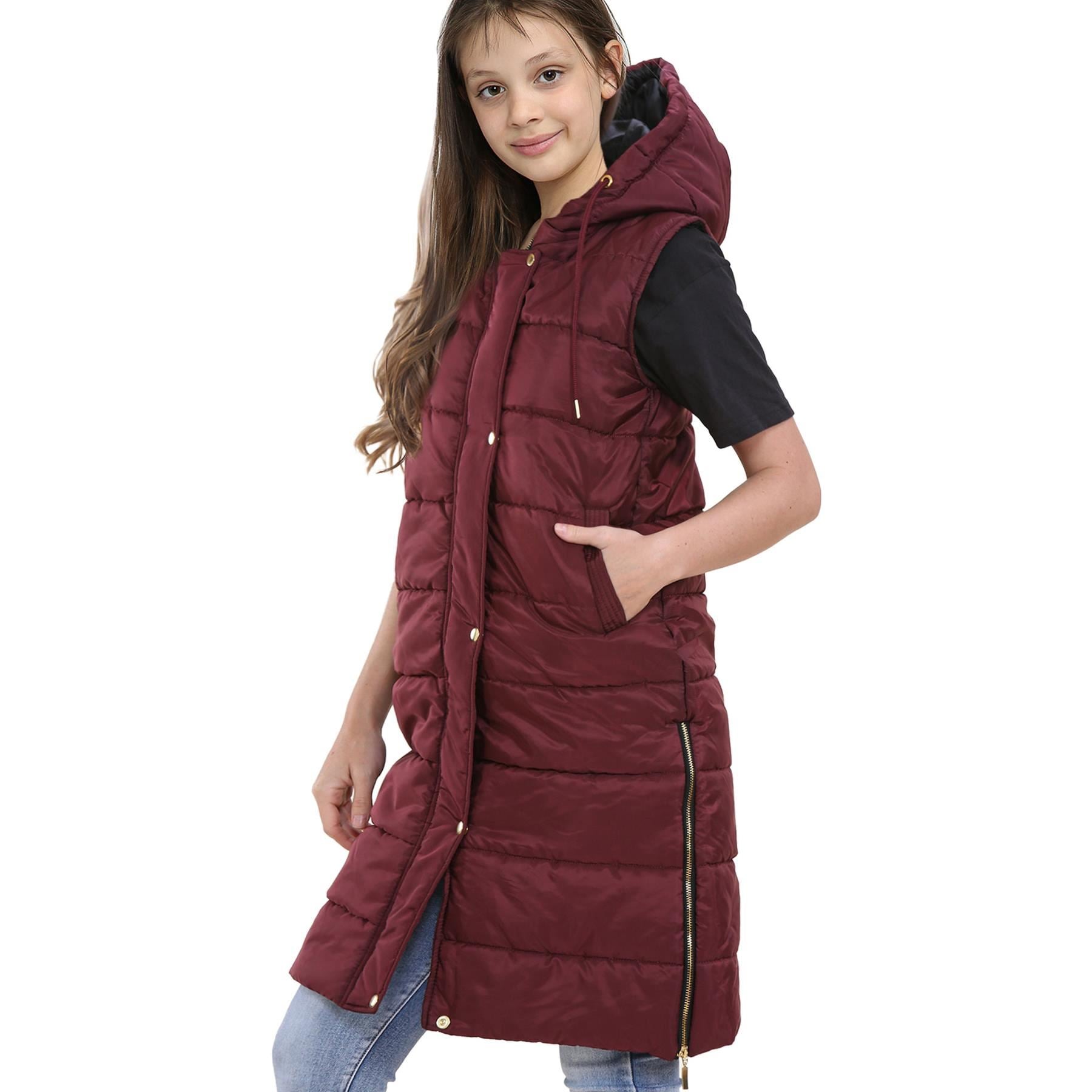 Kids Girls Oversized Gilet Long Line Hooded Quilted Jacket Long Sleeveless Coat