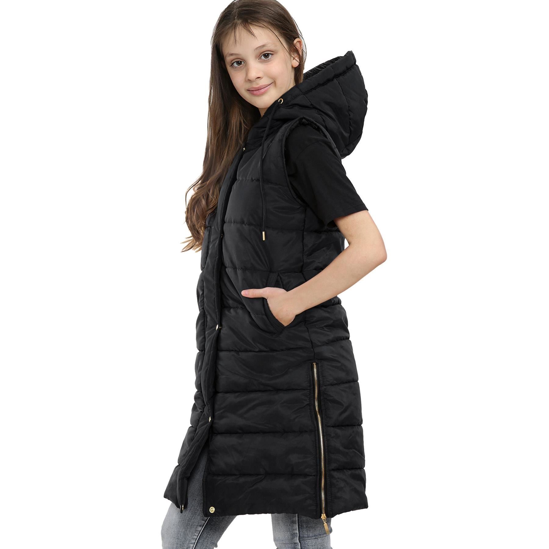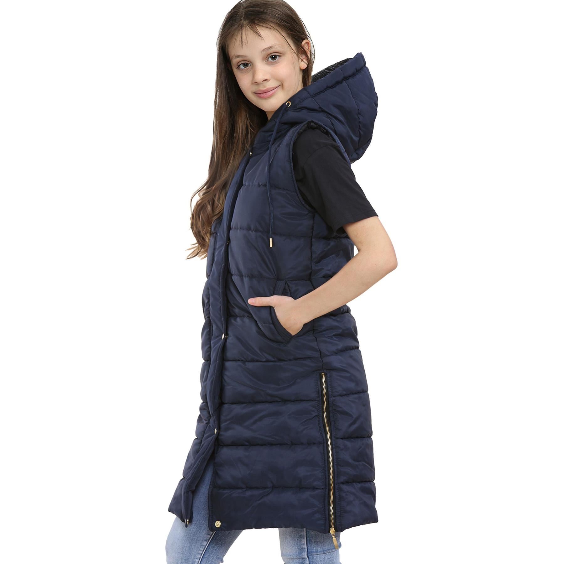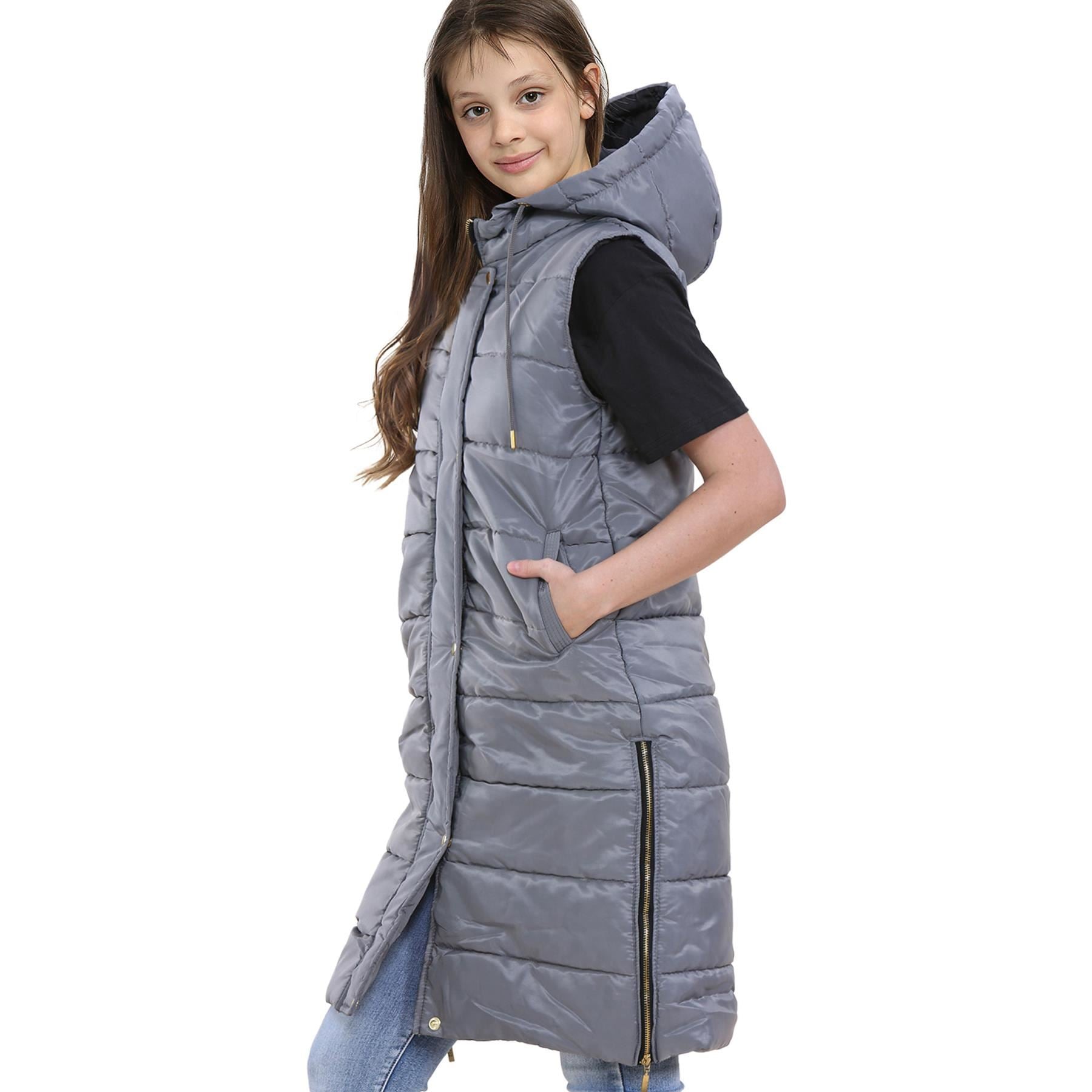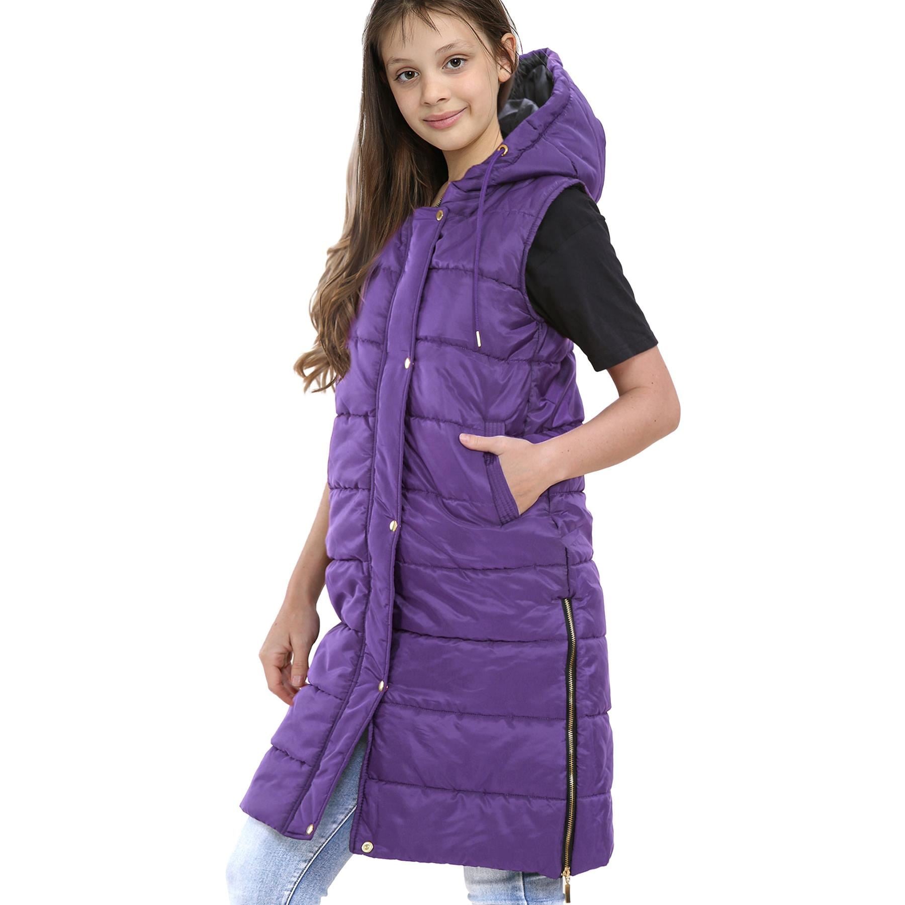 Kids Girls Oversized Gilet Long Line Hooded Quilted Jacket Long Sleeveless Coat