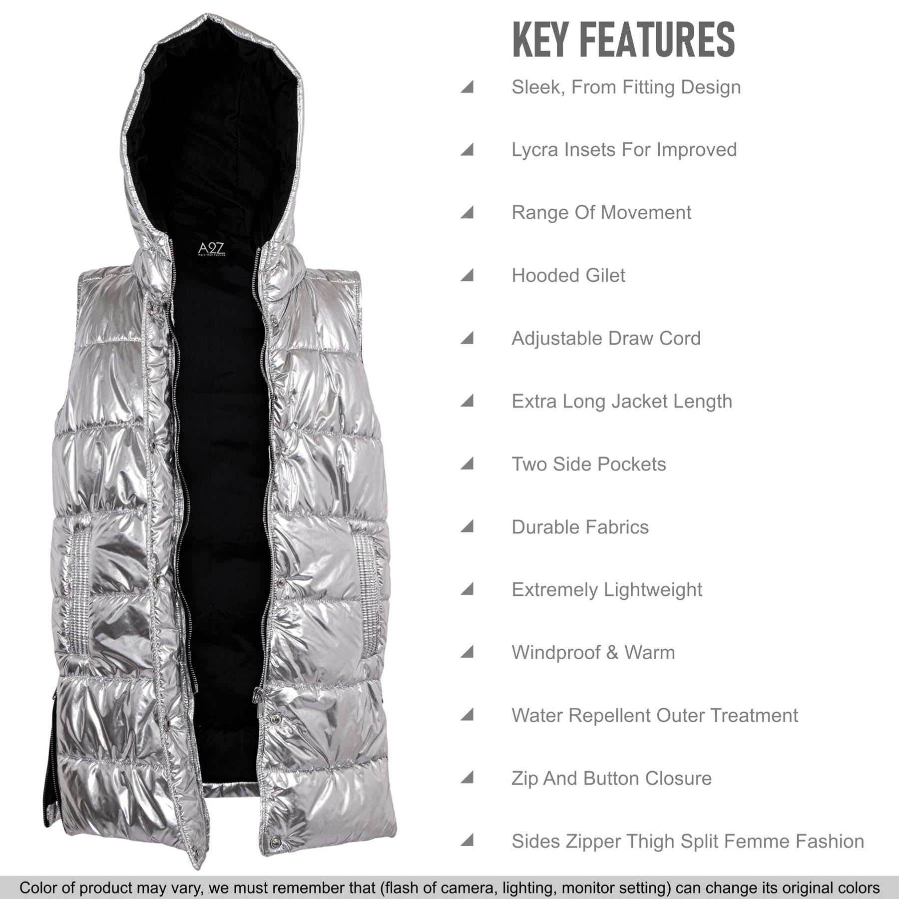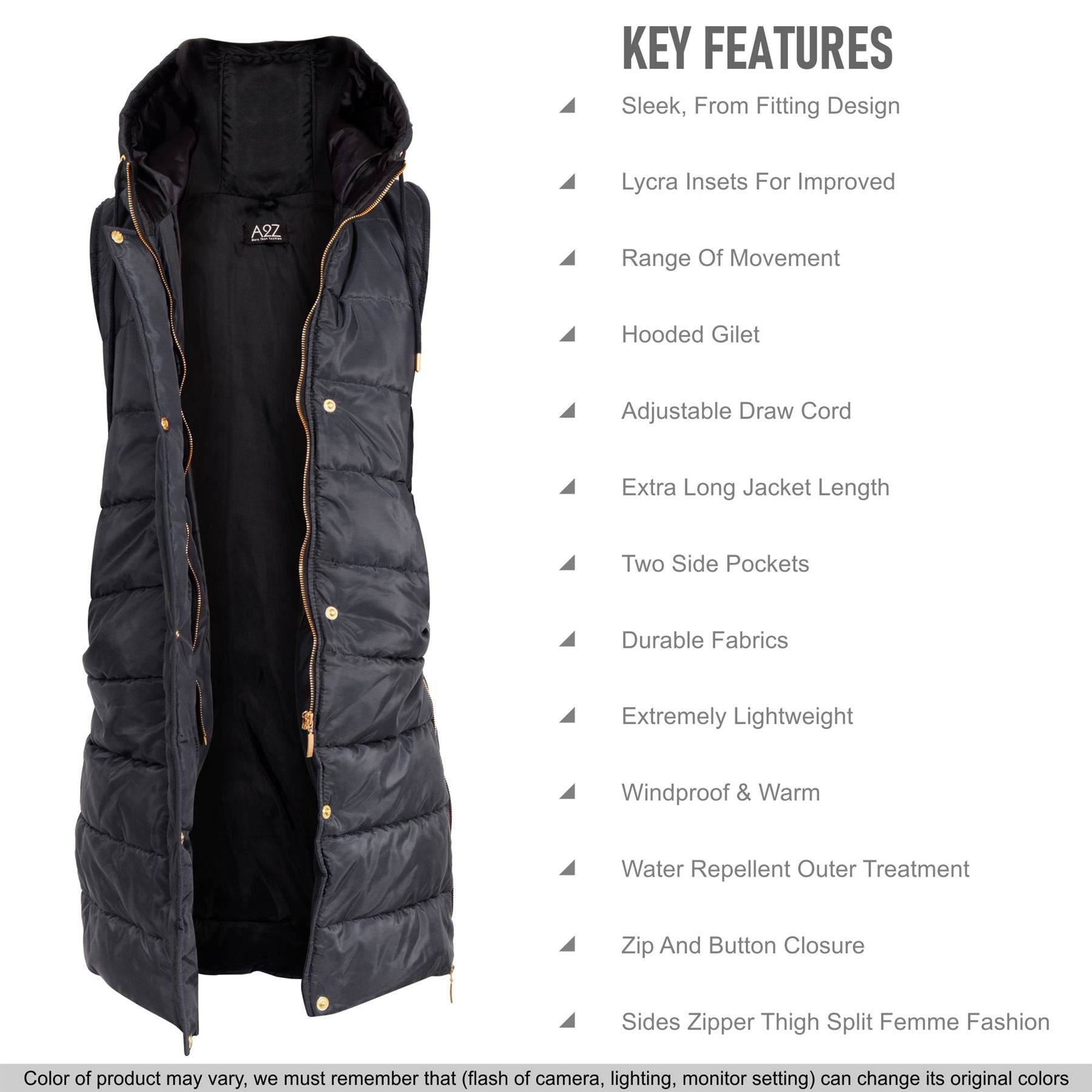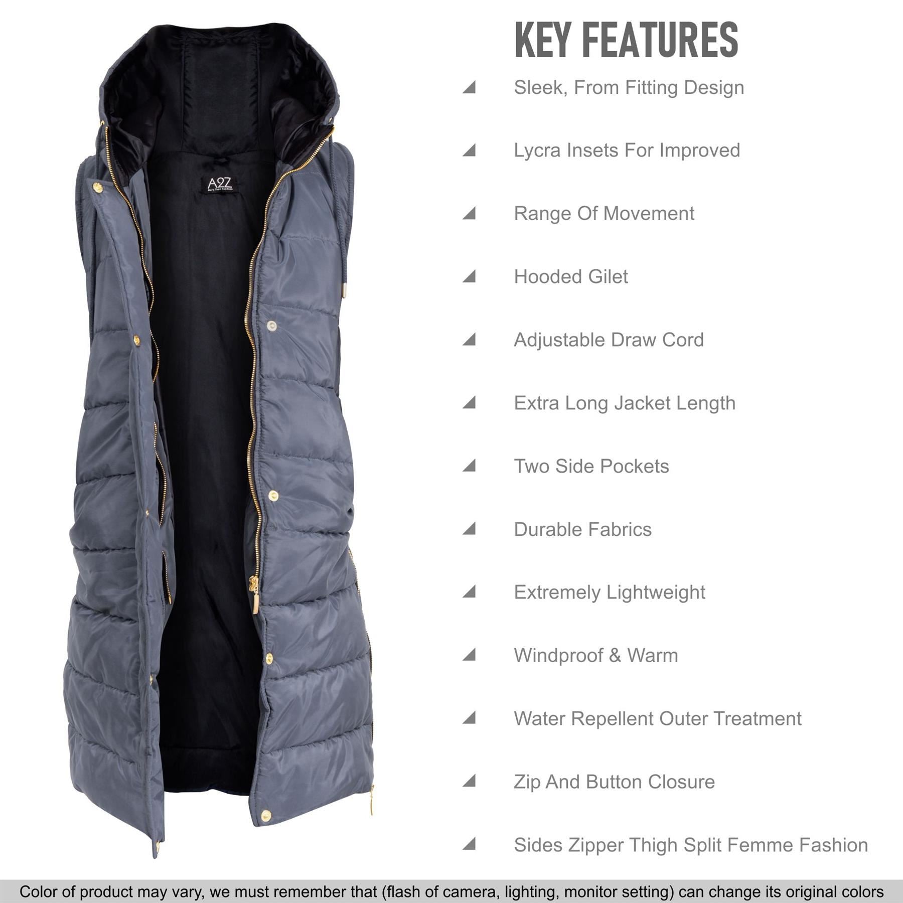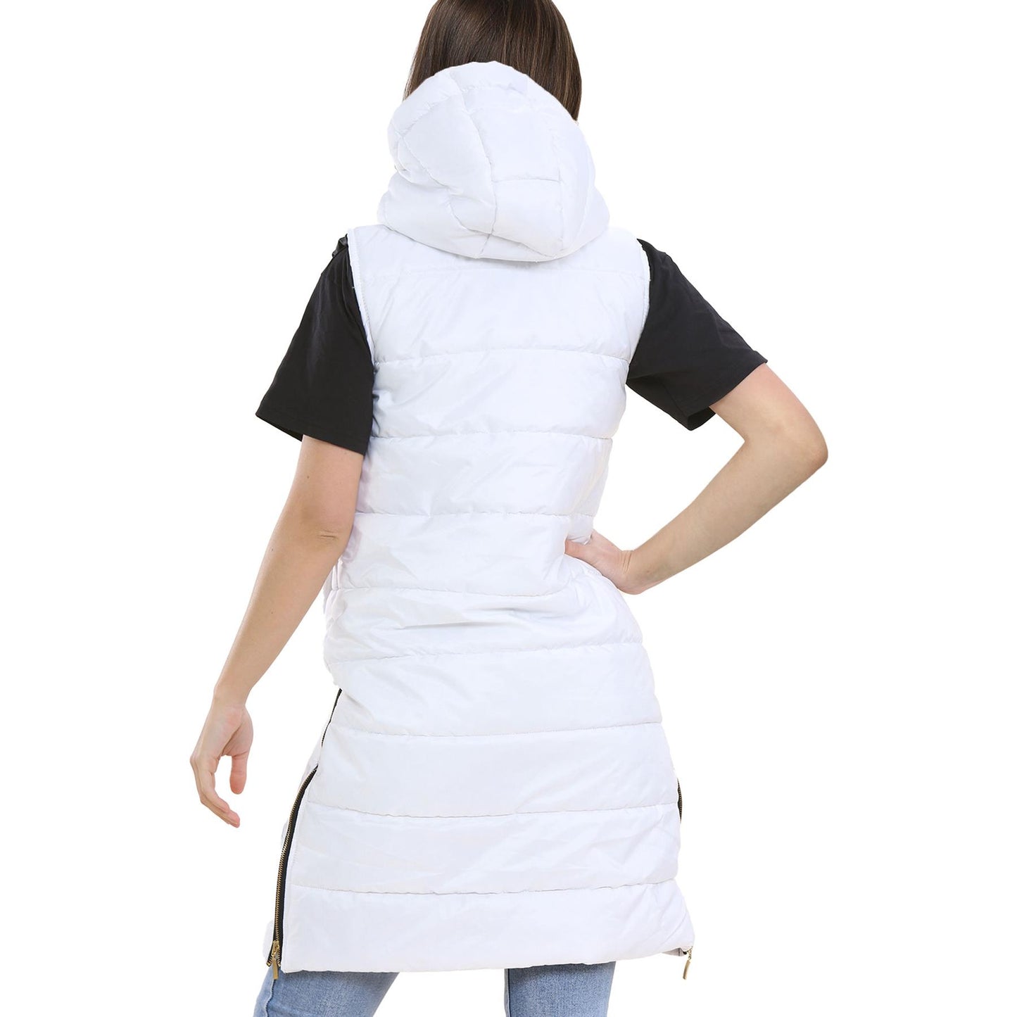This beautiful long gilet design combines a cool urban streetwear look with the functionality of a padded jacket, creating a fantastic piece for any outdoor activity. It is perfect for spring, autumn, and winter wear and can be styled with any outfit, from jogging trousers and leggings to jeans, skinny pants, shirts, or tank tops. The go-to jacket for shopping, school, or even camping and trekking.