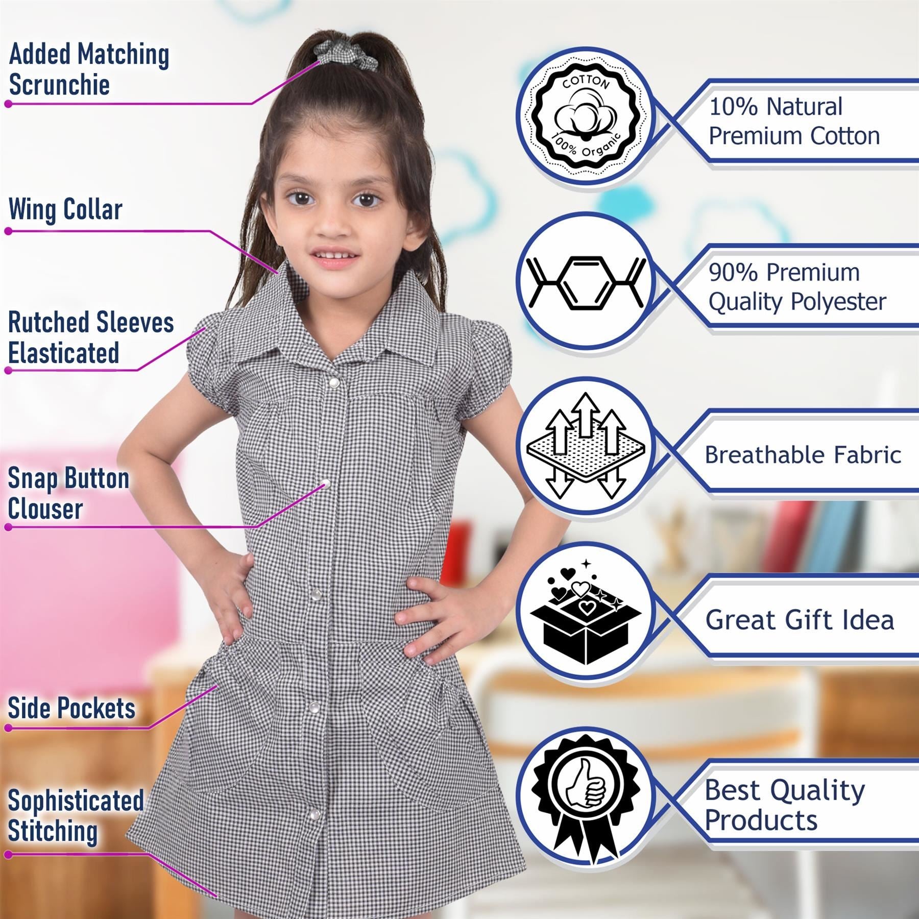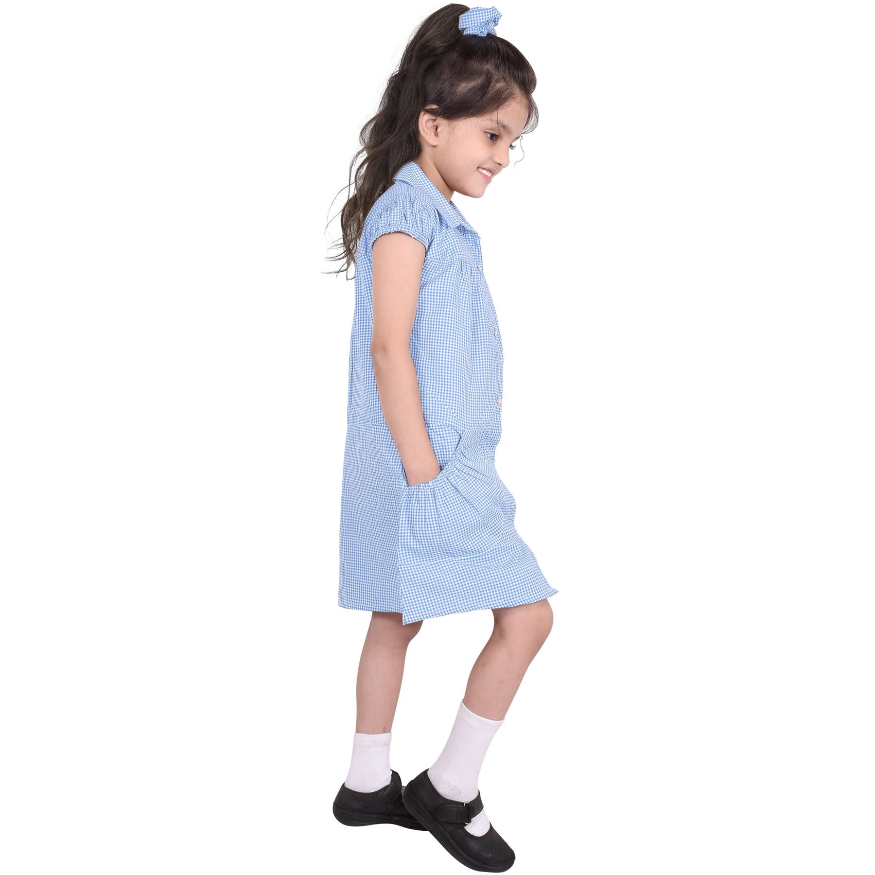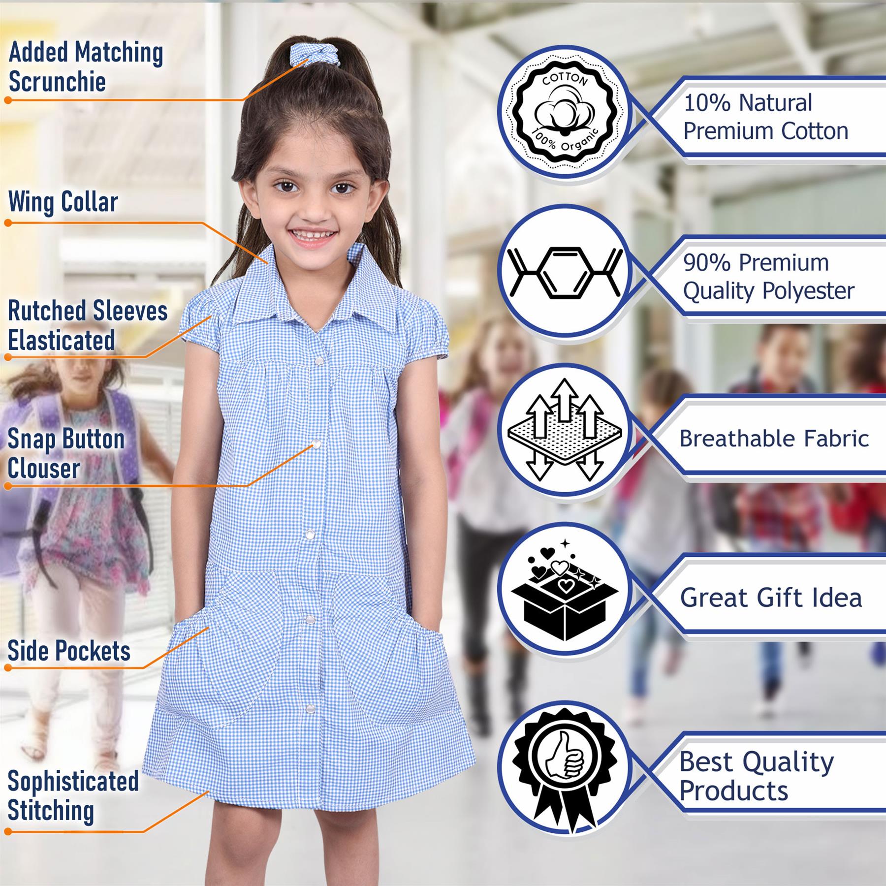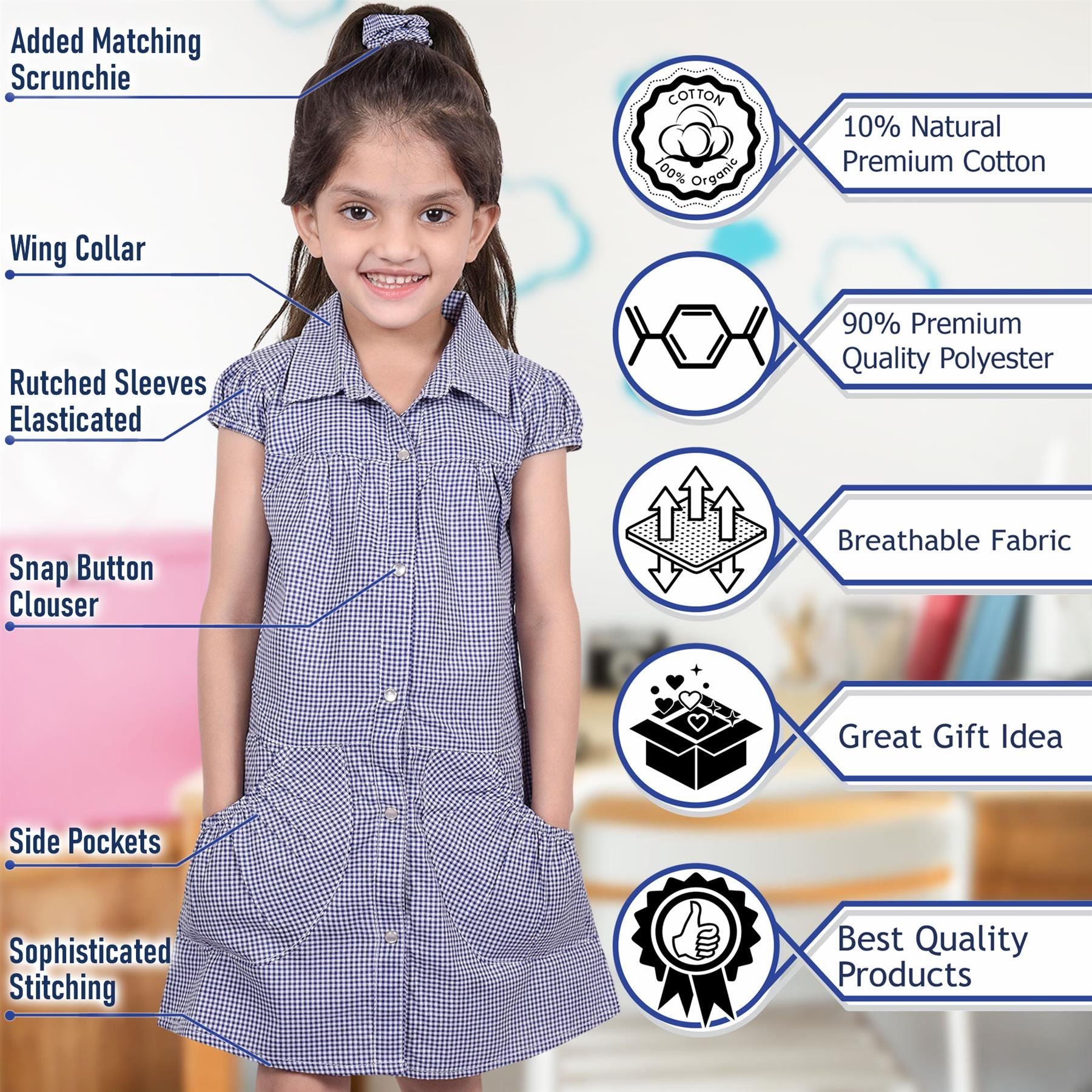 Kids Girls Pack Of 2 Uniform School Dress Gingham Dress With Matching Scrunchies