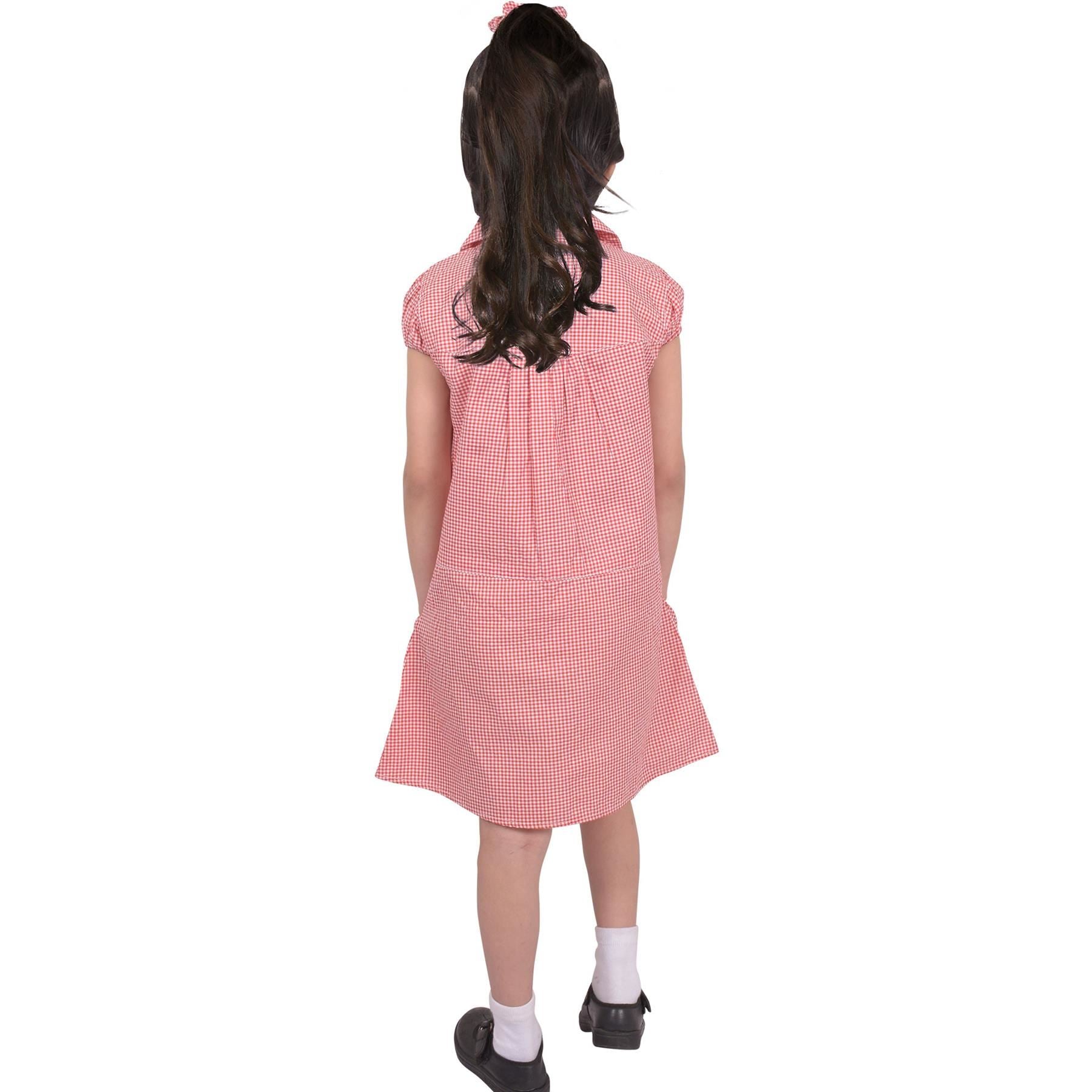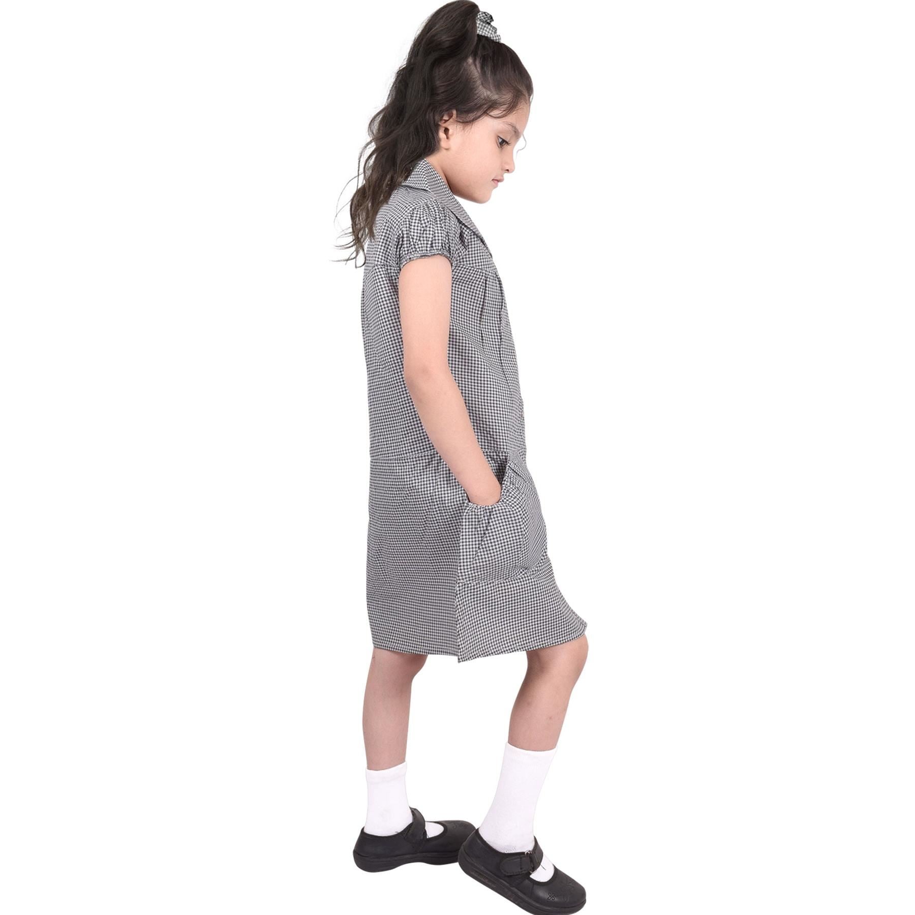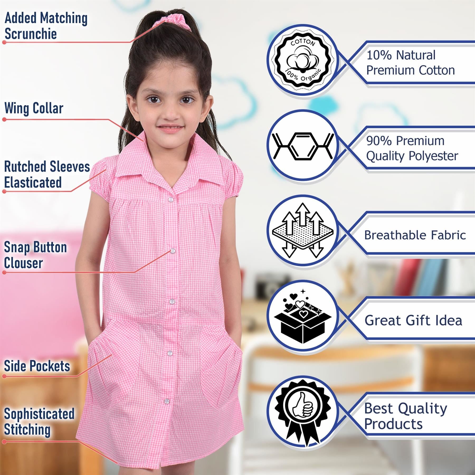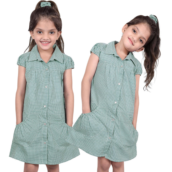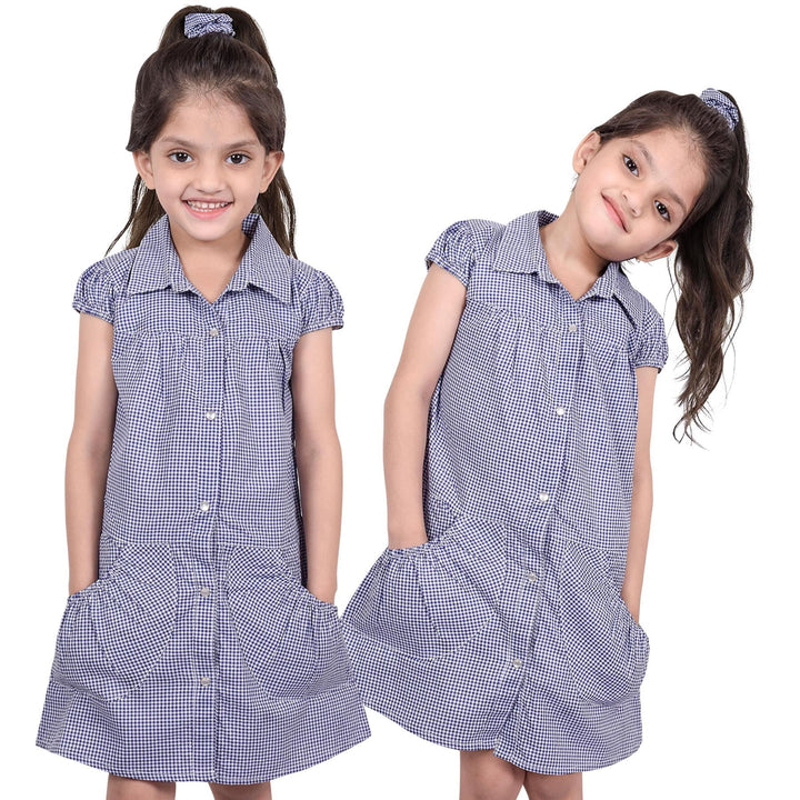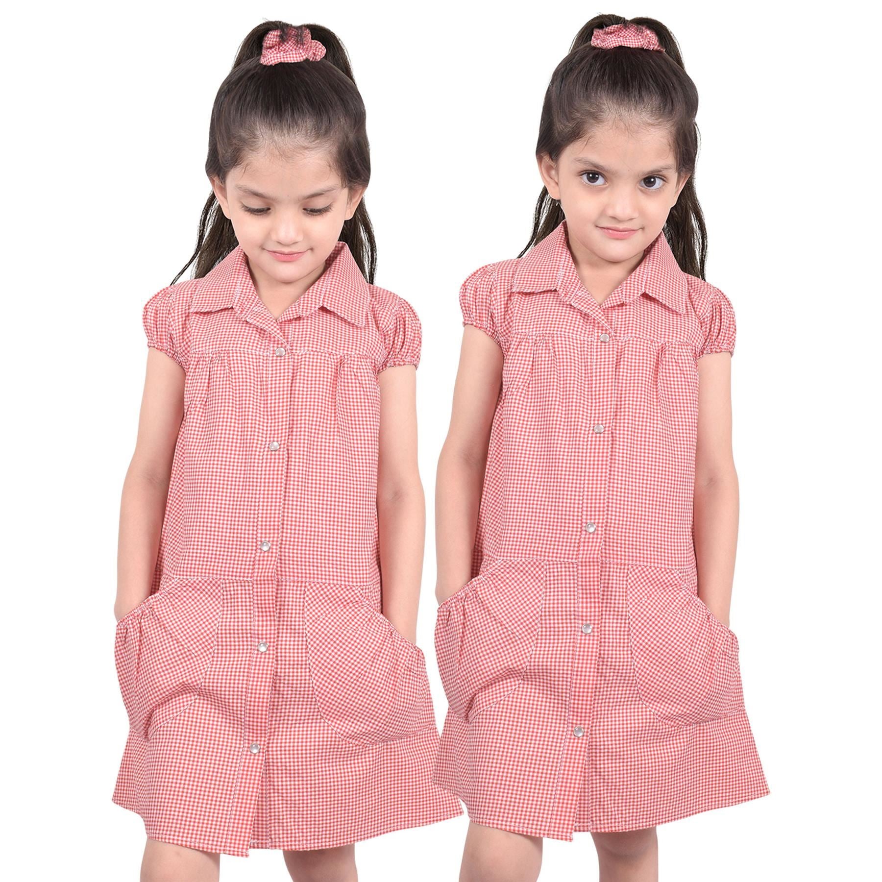 Kids Girls Pack Of 2 Uniform School Dress Gingham Dress With Matching Scrunchies