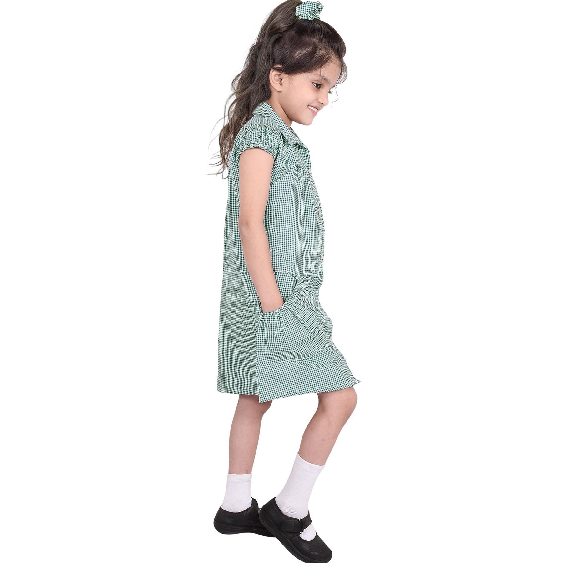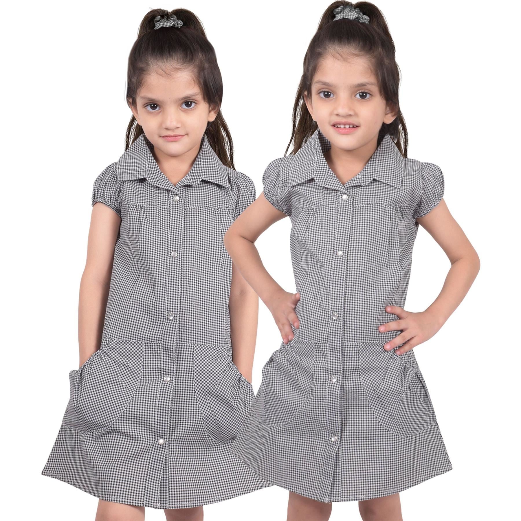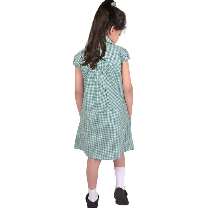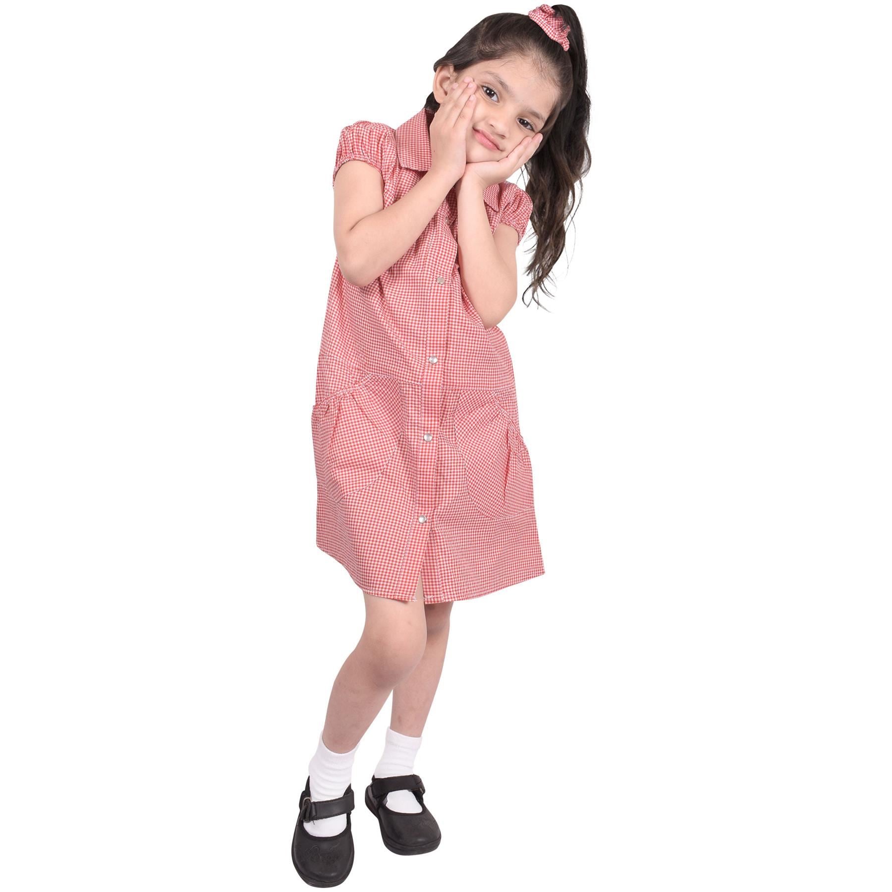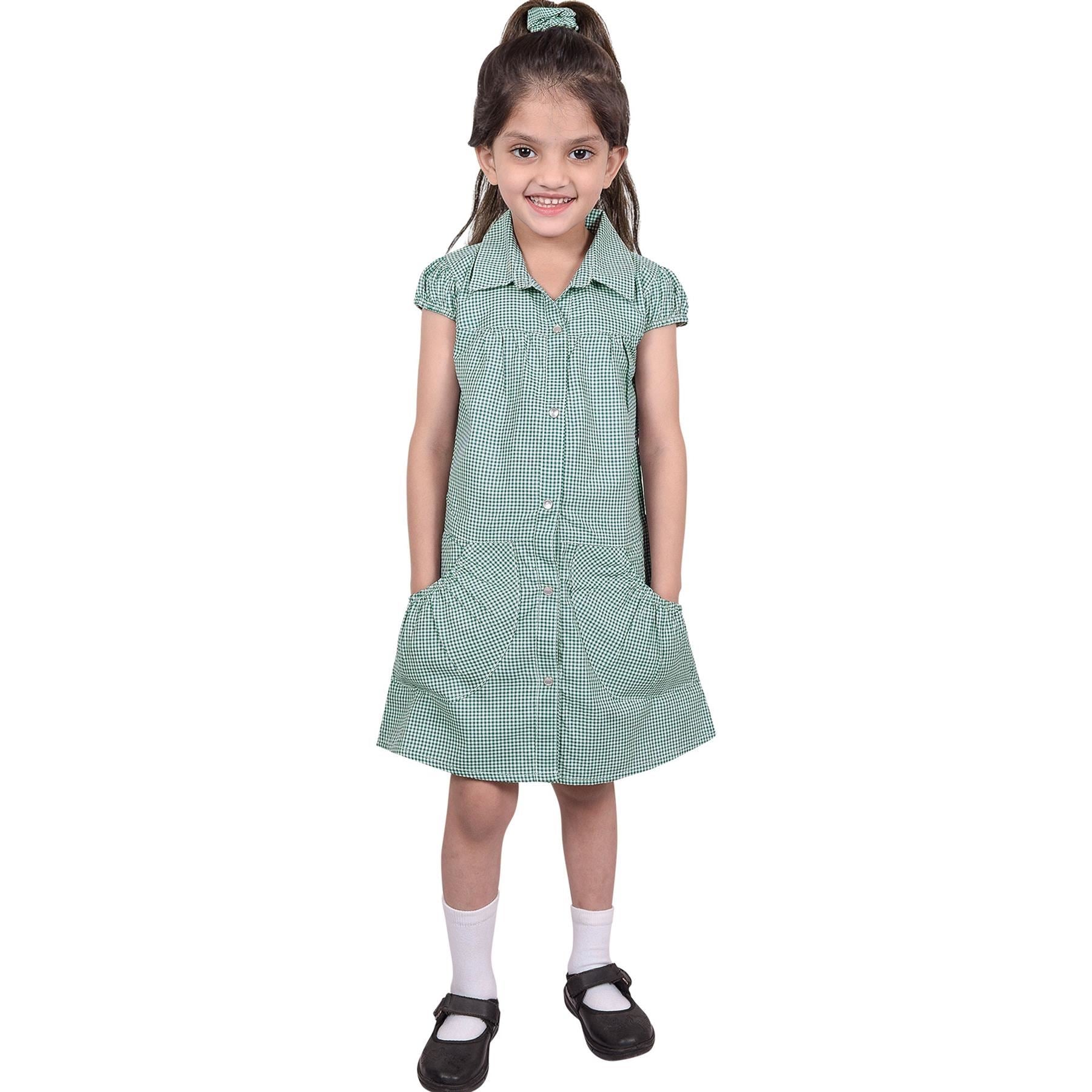 Kids Girls Pack Of 2 Uniform School Dress Gingham Dress With Matching Scrunchies