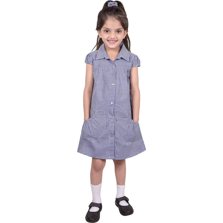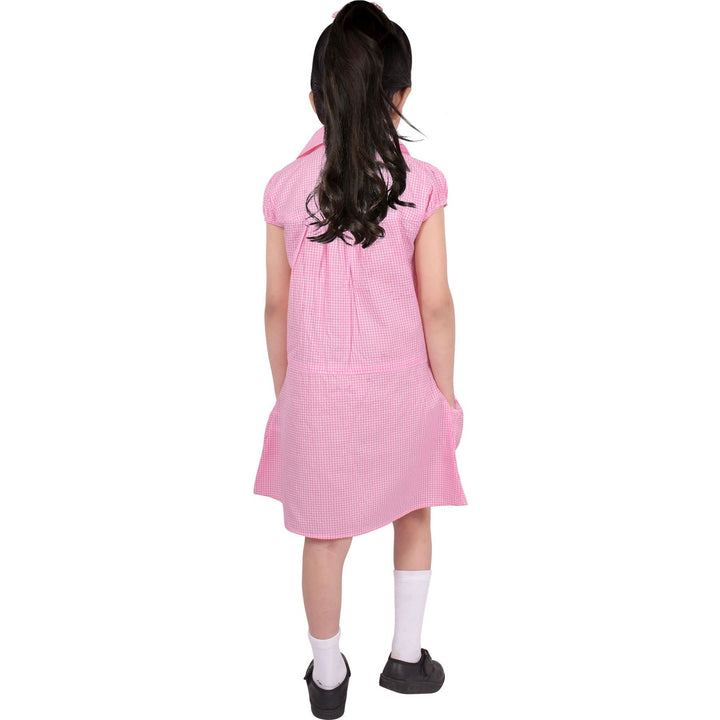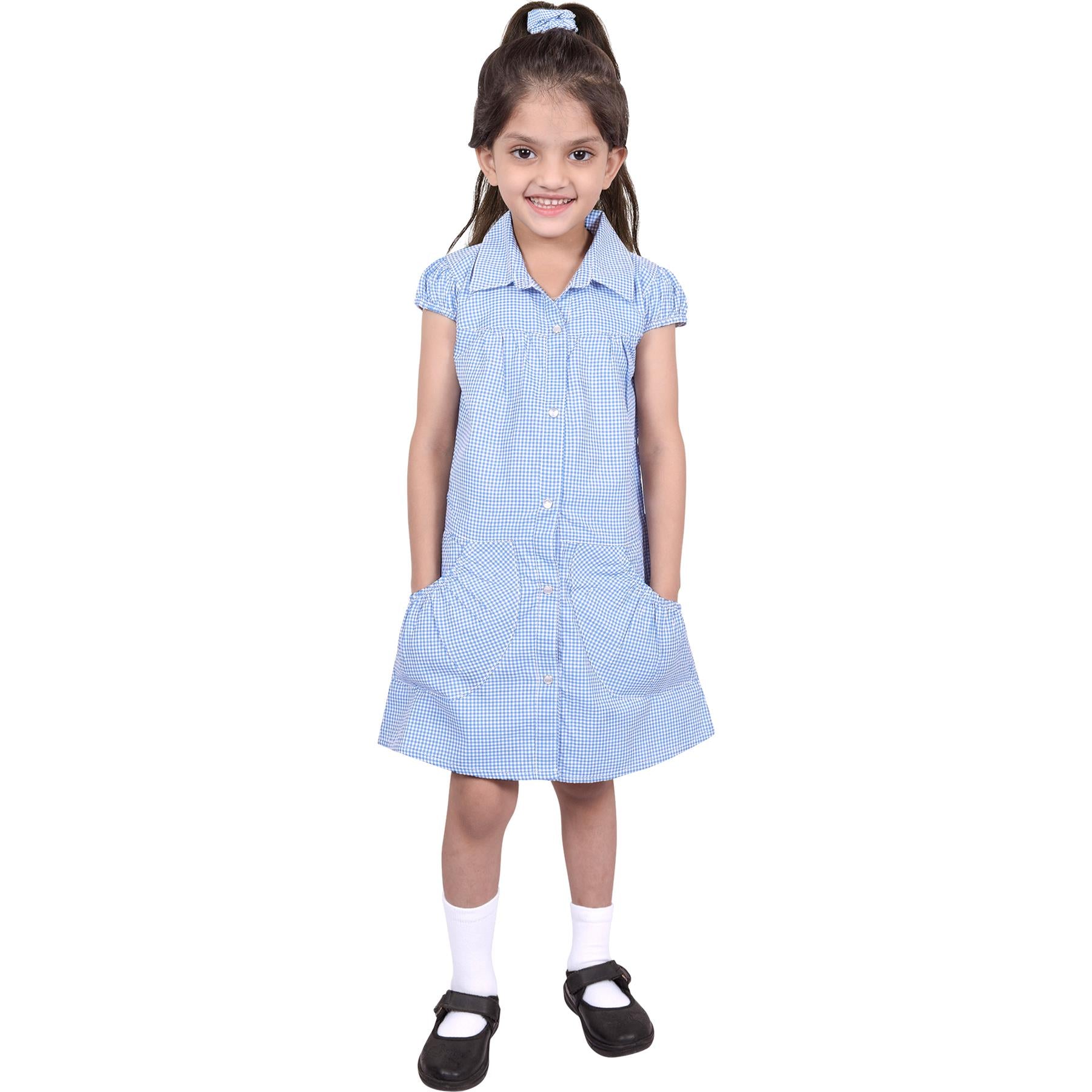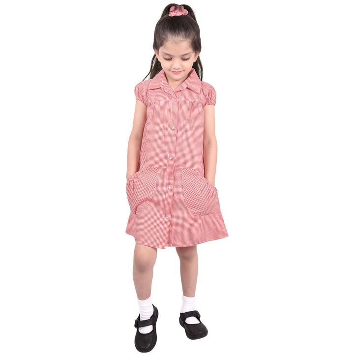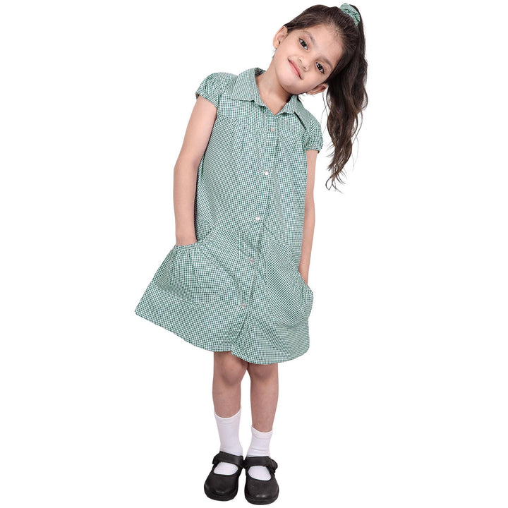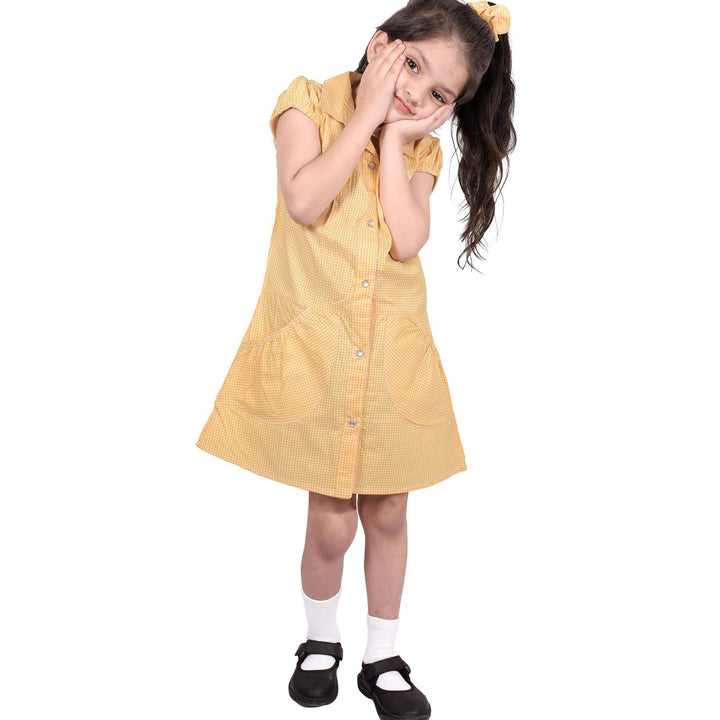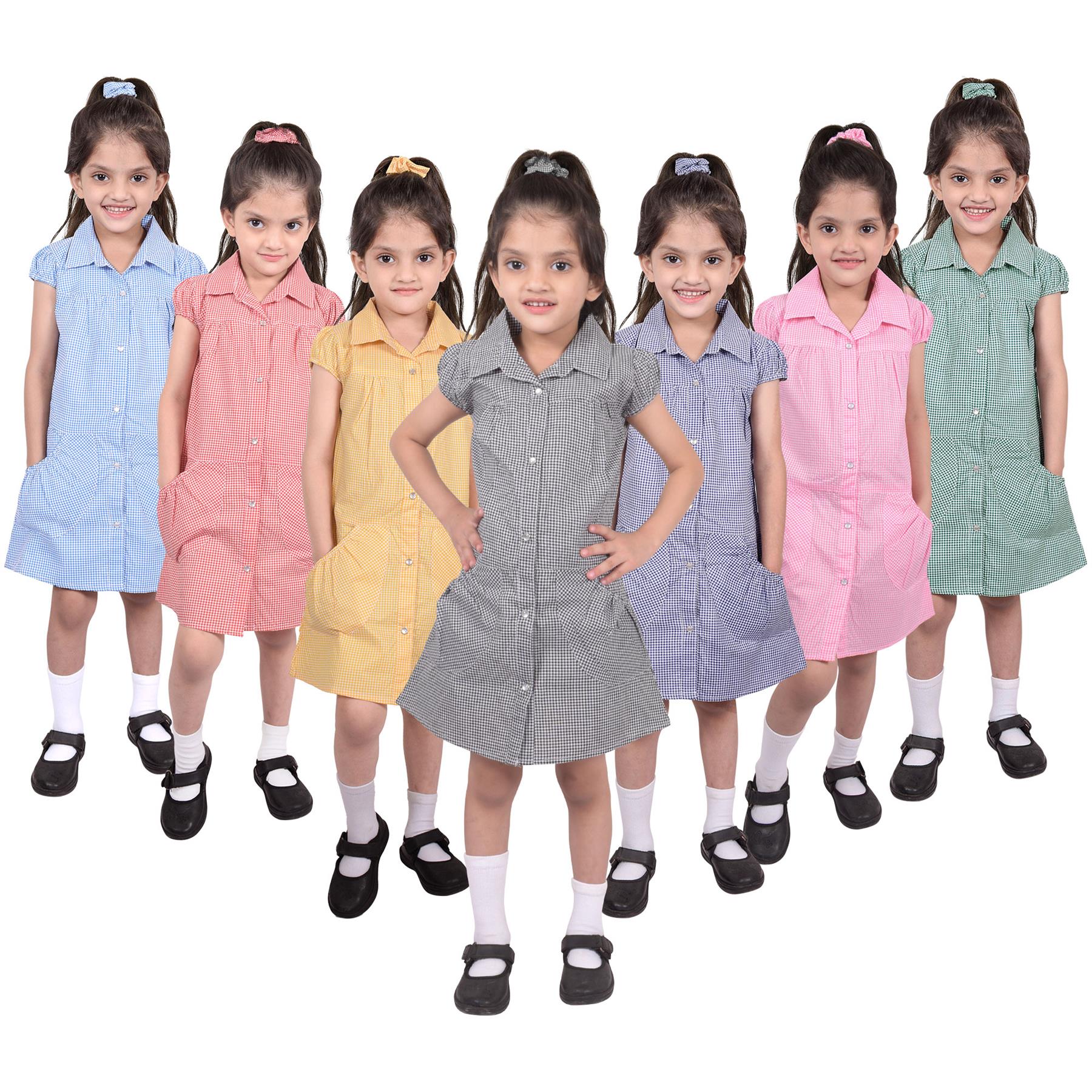 Kids Girls Pack Of 2 Uniform School Dress Gingham Dress With Matching Scrunchies