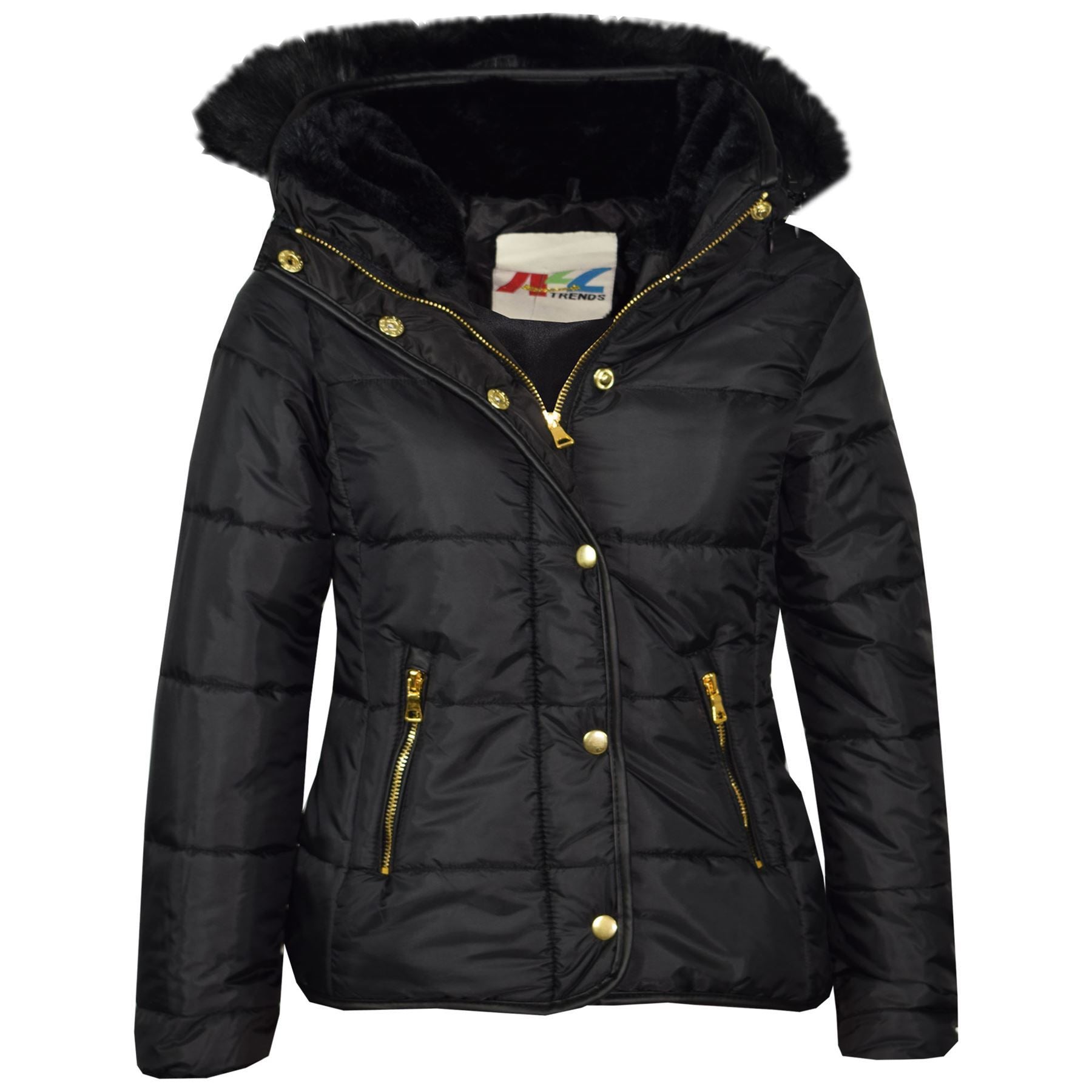 Kids Girls Padded Puffer Quilted Coat Faux Fur Collar For Girls Age 3-13 Years