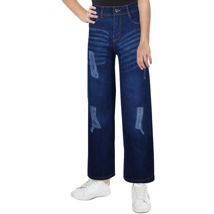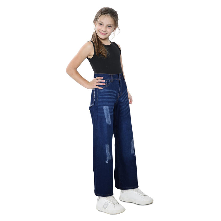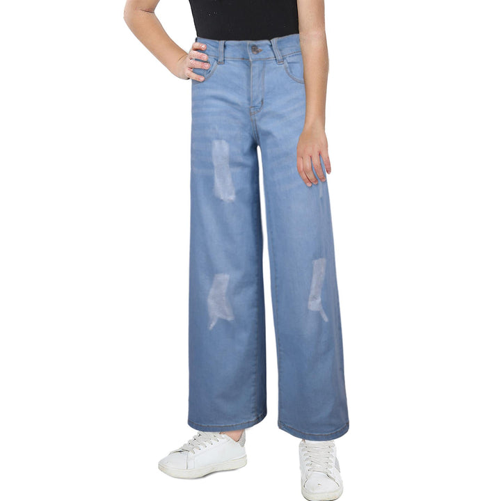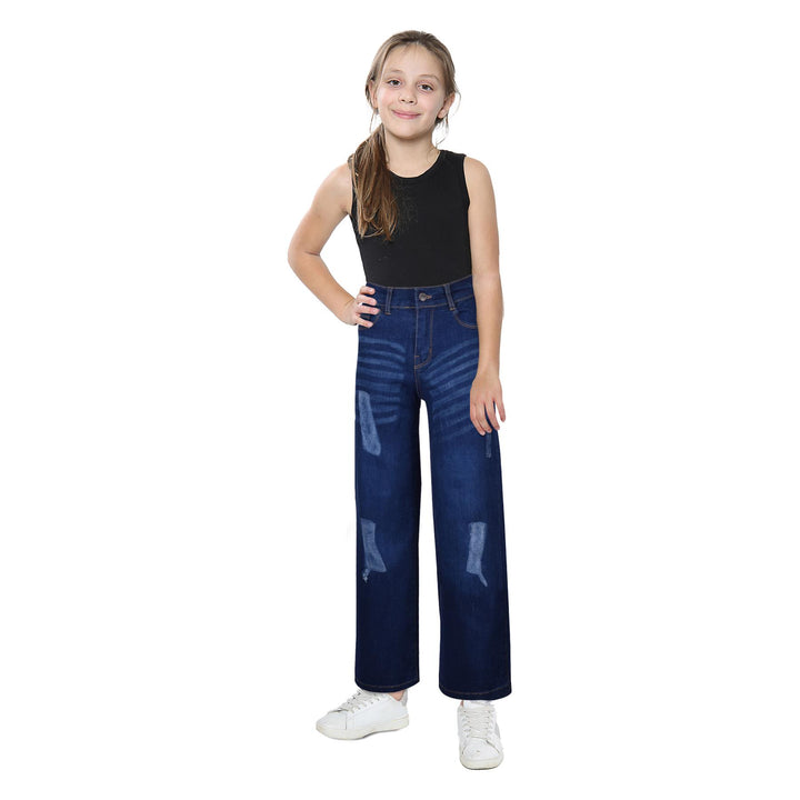 Kids Girls Palazzo Jeans Wide Leg Stretchy Denim Flared Fashion Baggy Pants 5-14