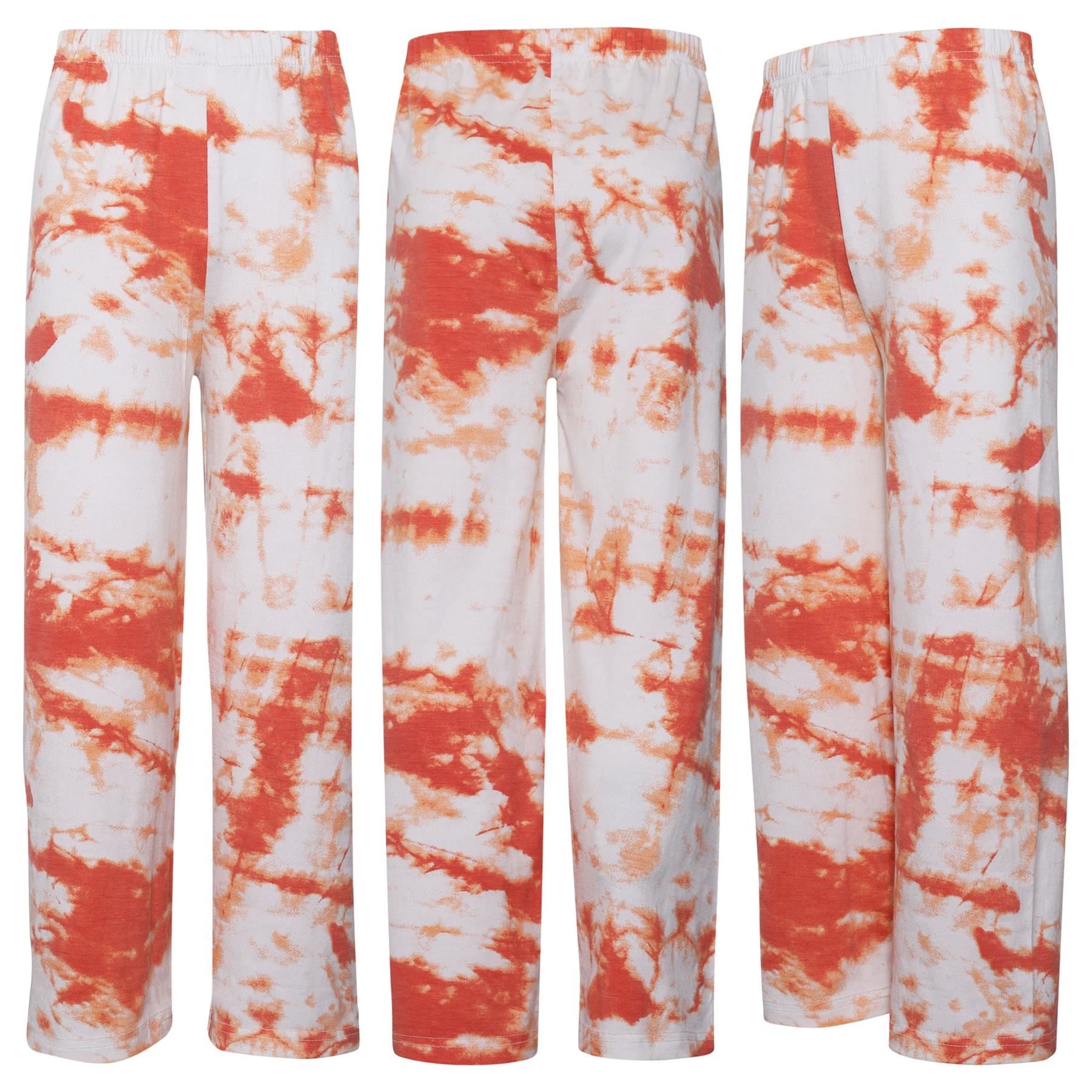 Kids Girls Palazzo Orange Flared Wide Leg Tie Dye Print Baggy Summer Trousers