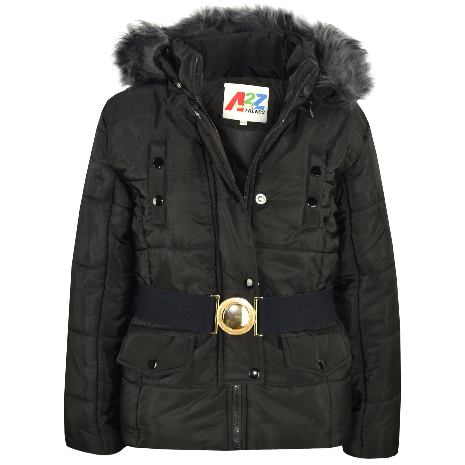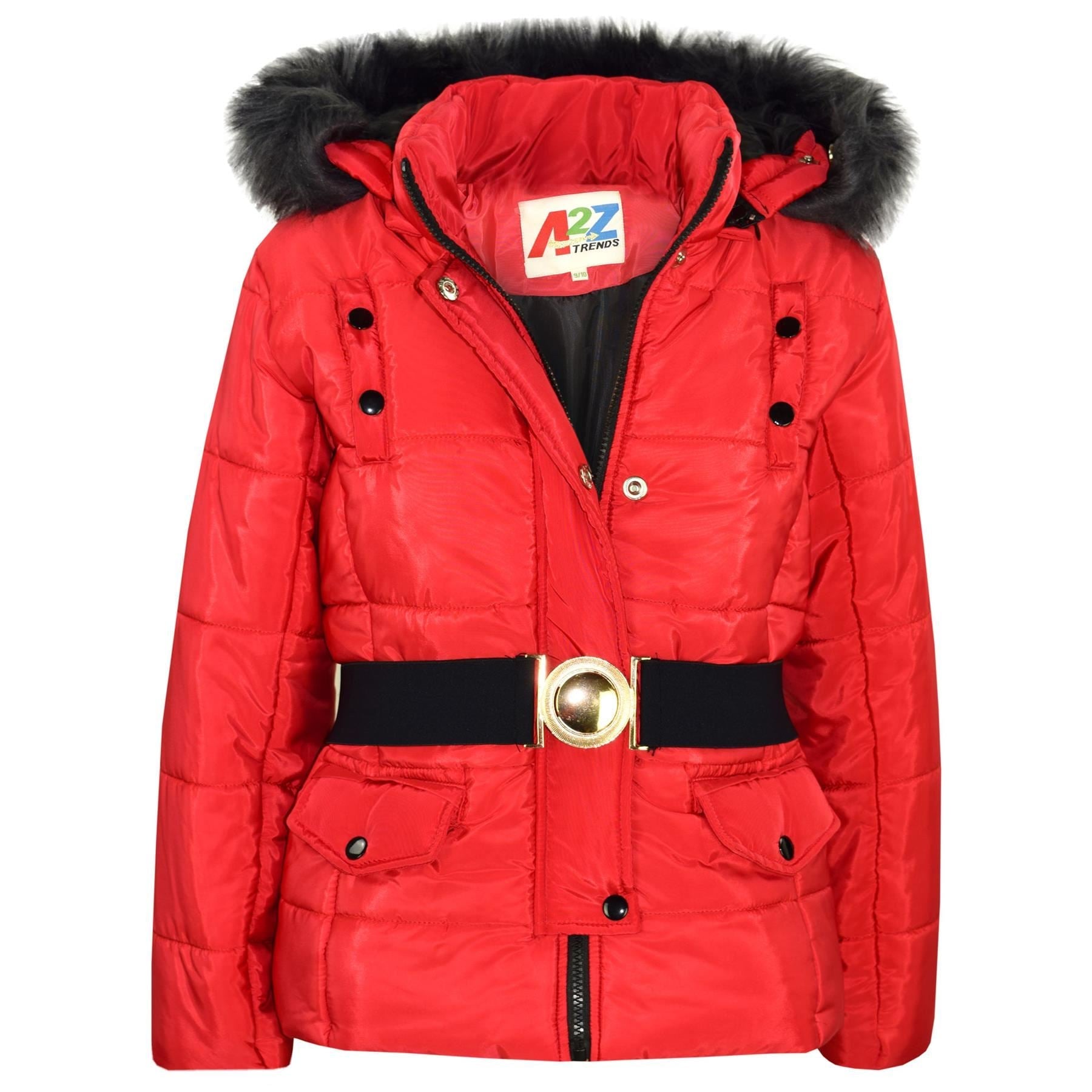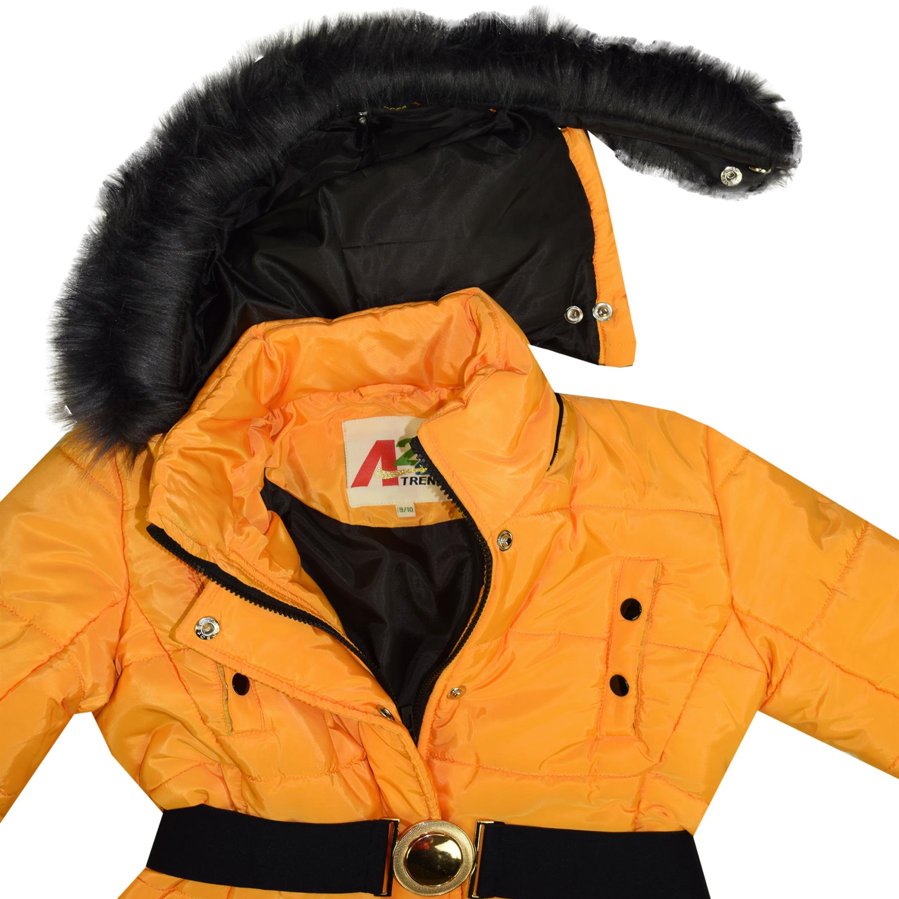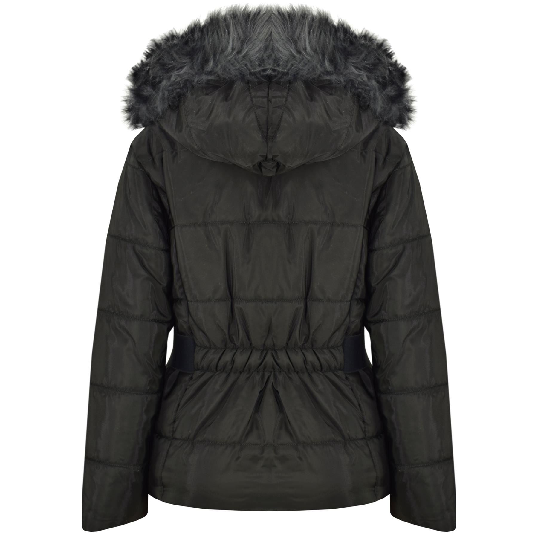 Kids Girls Puffer Jackets Faux Fur Hooded Zipped Belted Coats Age 5-13 Years