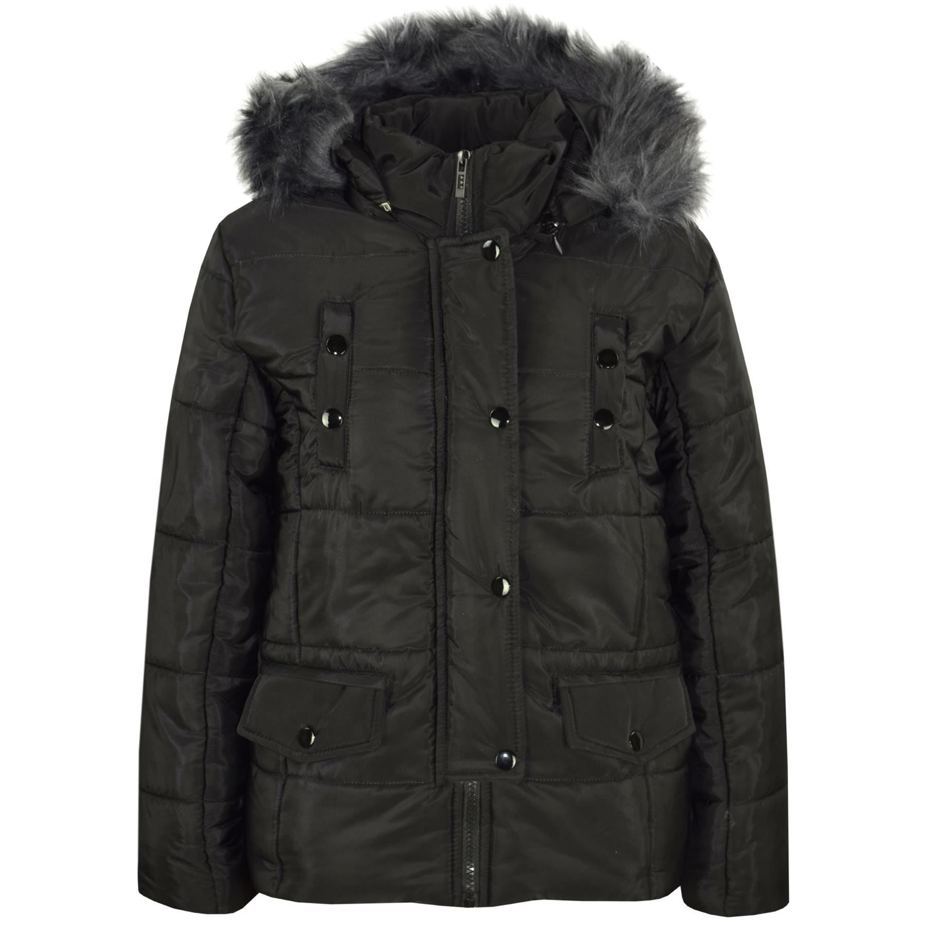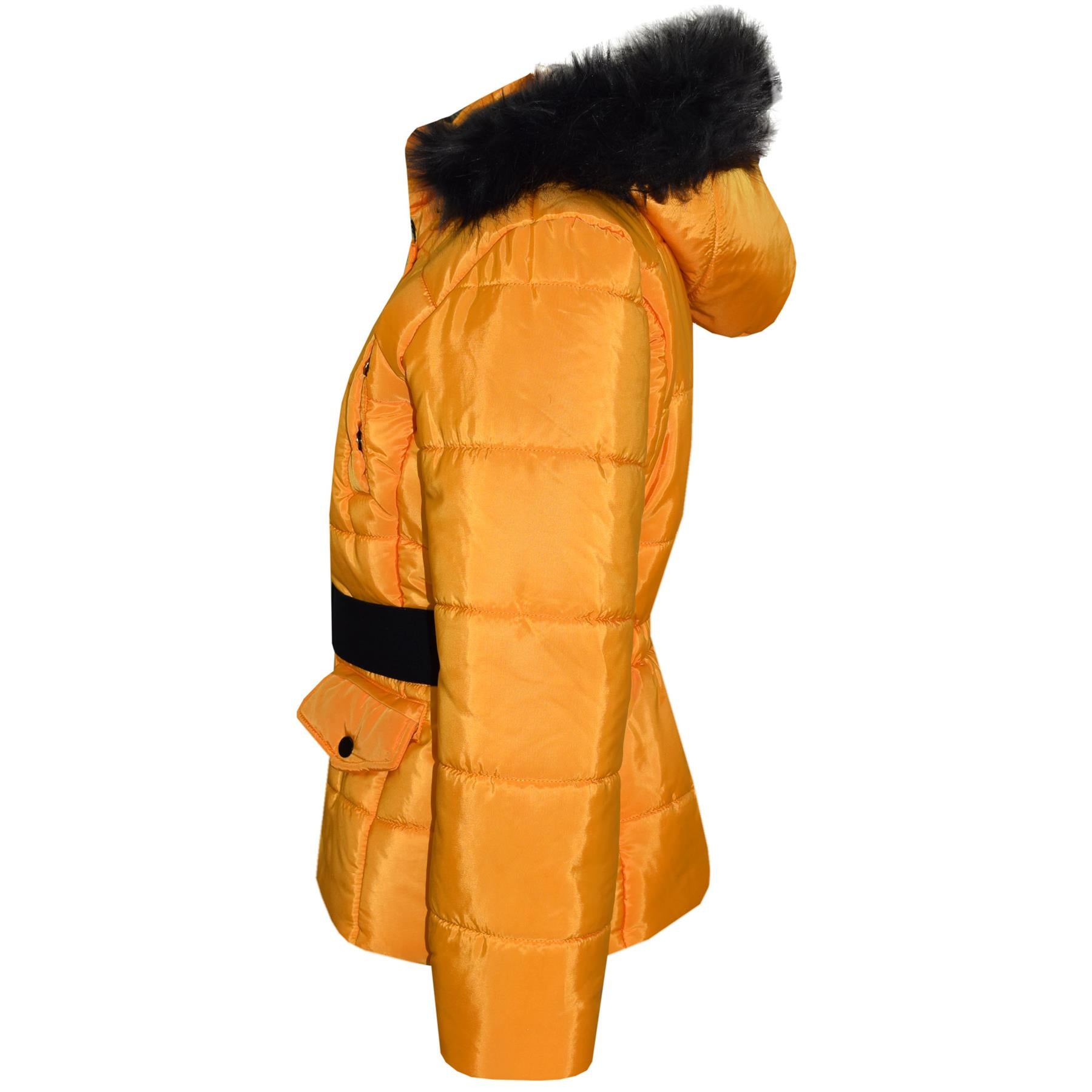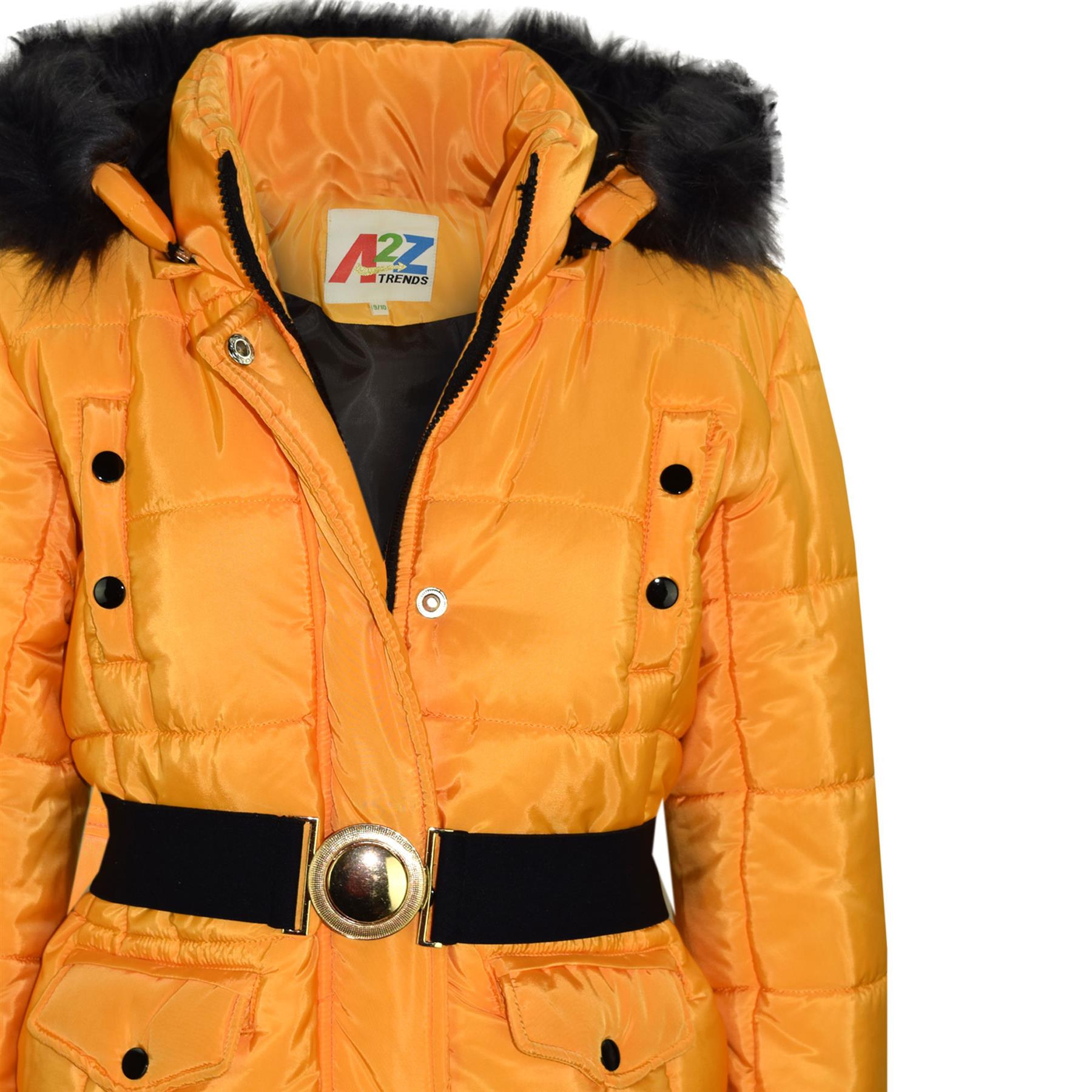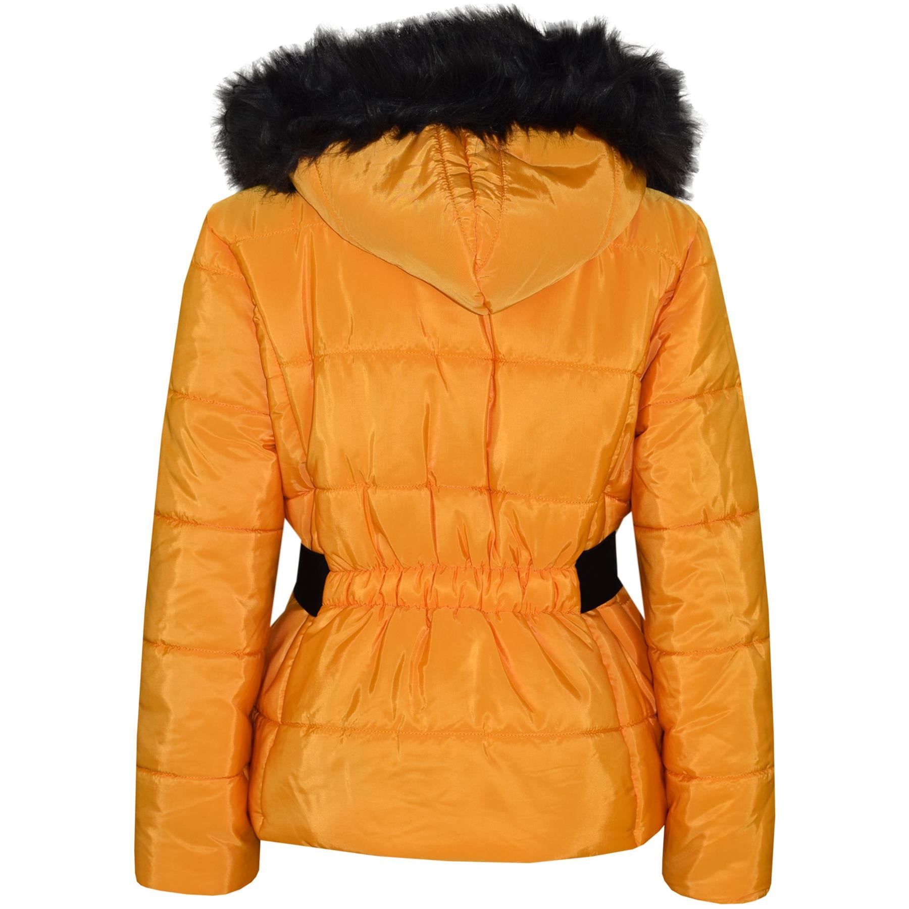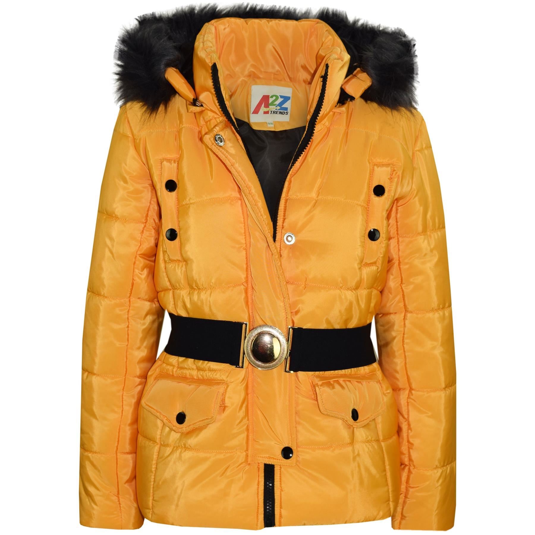 Kids Girls Puffer Jackets Faux Fur Hooded Zipped Belted Coats Age 5-13 Years