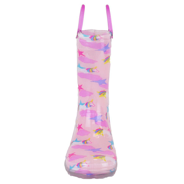 These colourful wellies are perfect for kids who love unicorns and rainbows. Featuring cute pink decorations, they're perfect for fun-loving little ones who enjoy exploring. Unleash your child's imagination with these fantasy unicorn rainbow Wellington boots. They're perfect for games in the garden, a unicorn princess fancy dress party, or even as a unique gift for your child's birthday. -