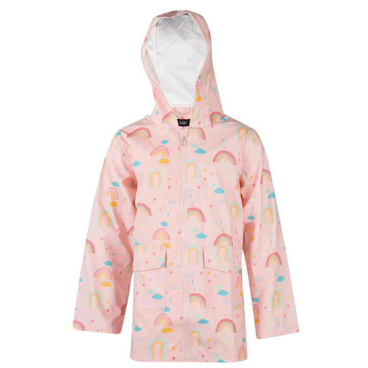 Kids Girls Rainbow Raincoat Wind Resistant Lightweight Hooded Waterproof Jackets