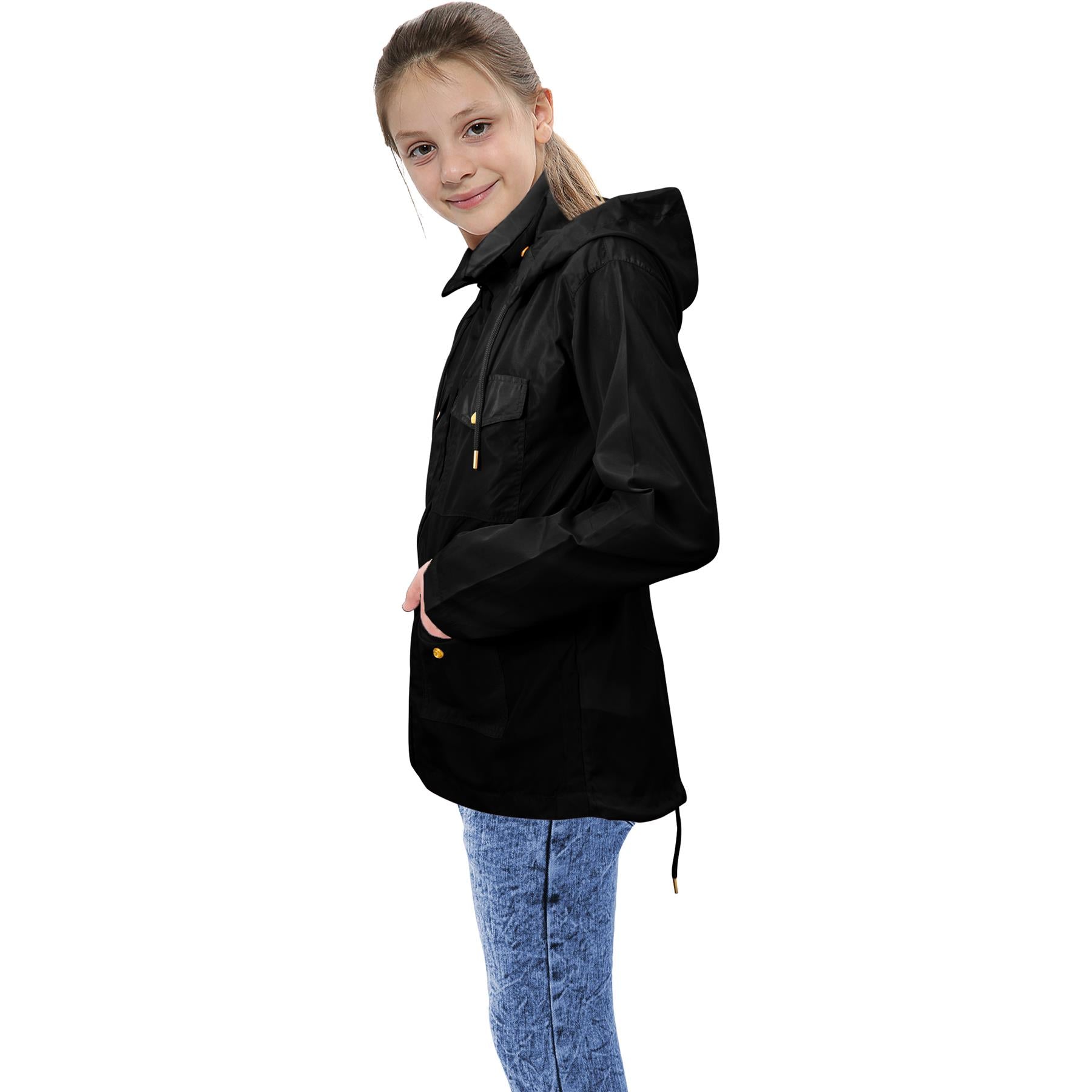 Kids Girls Raincoat Jackets Wind Resistant Lightweight Hooded Waterproof Rainmac