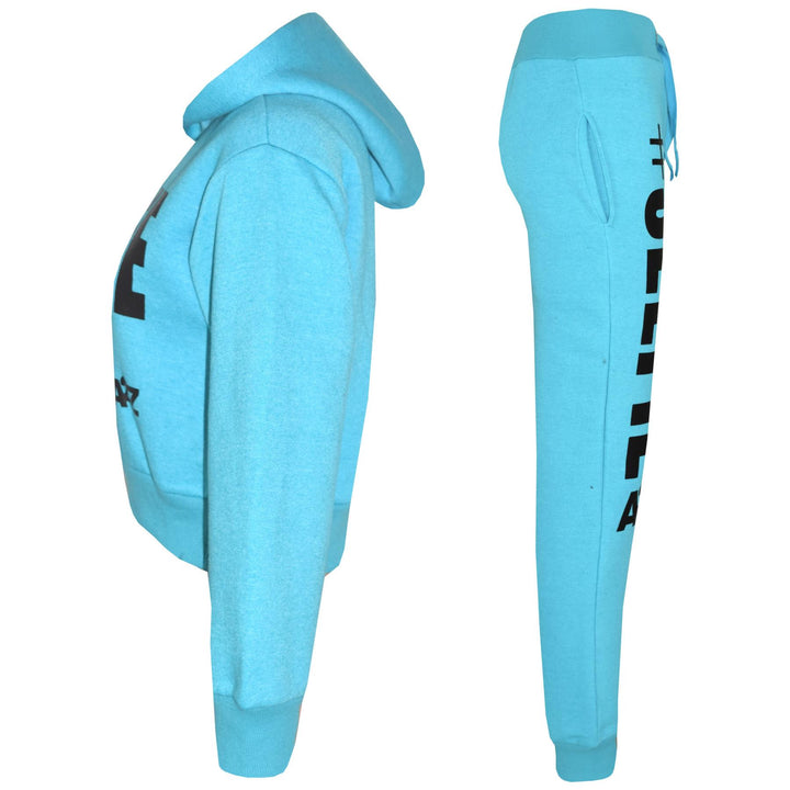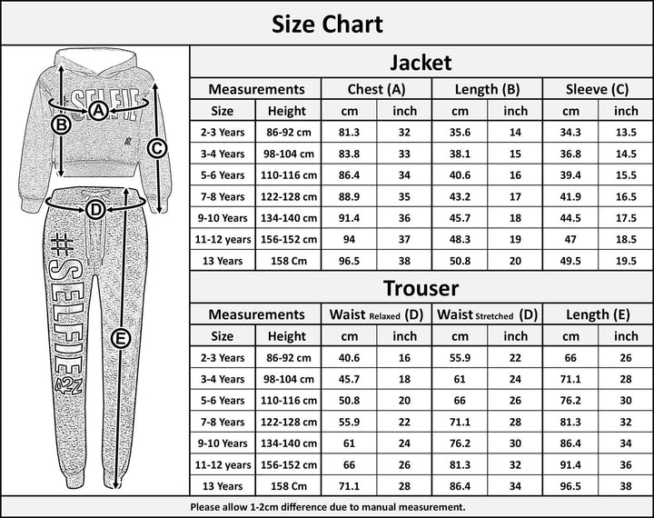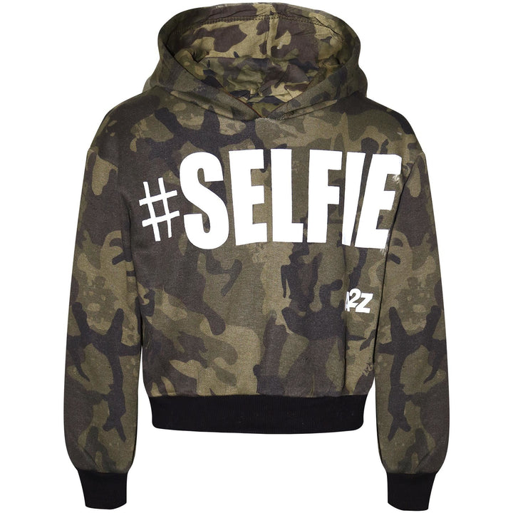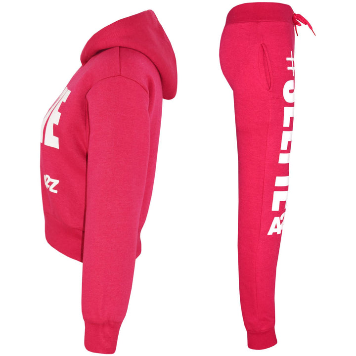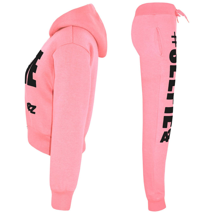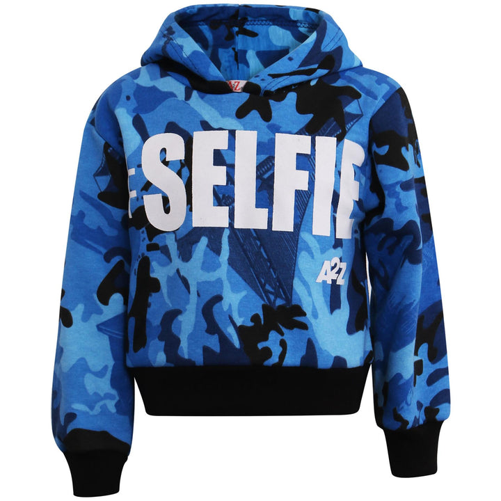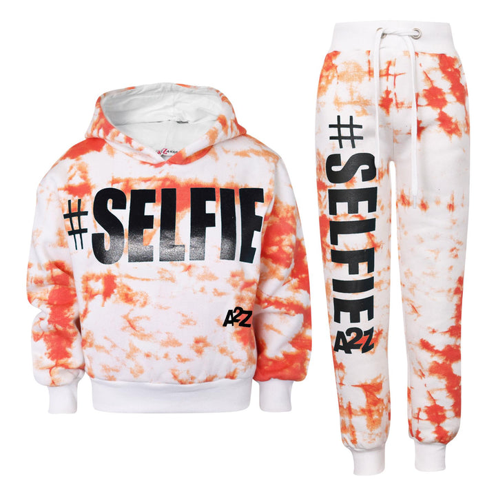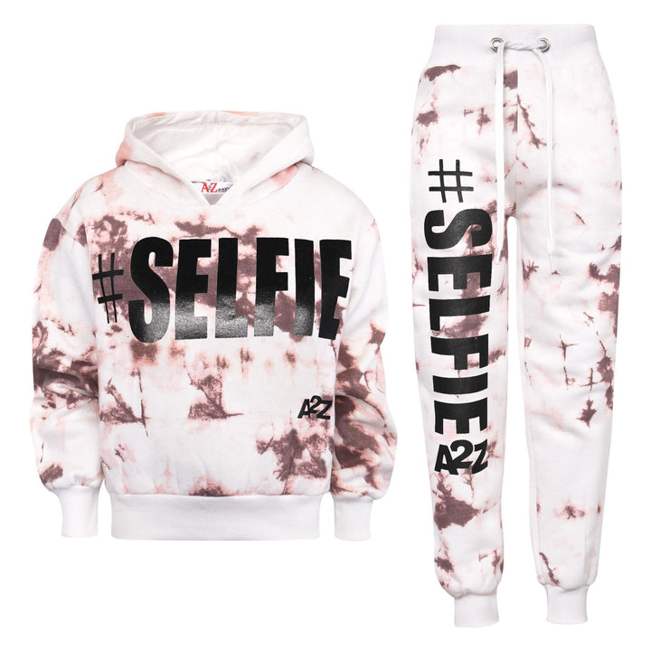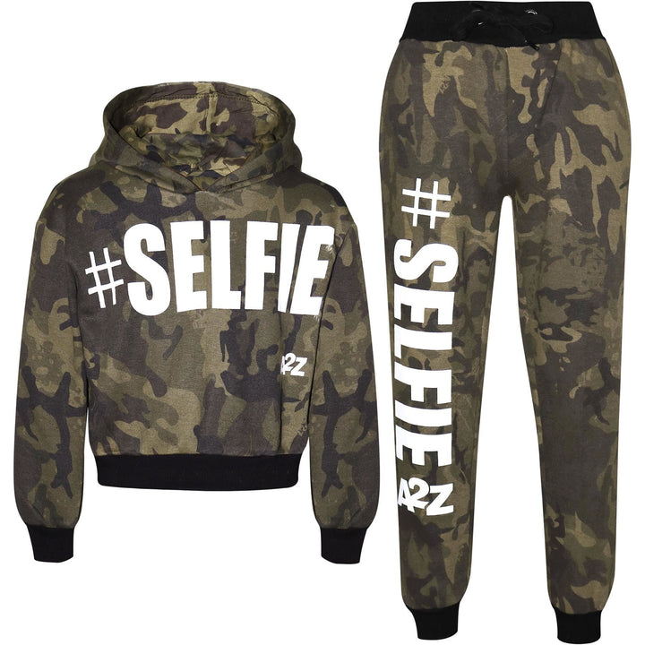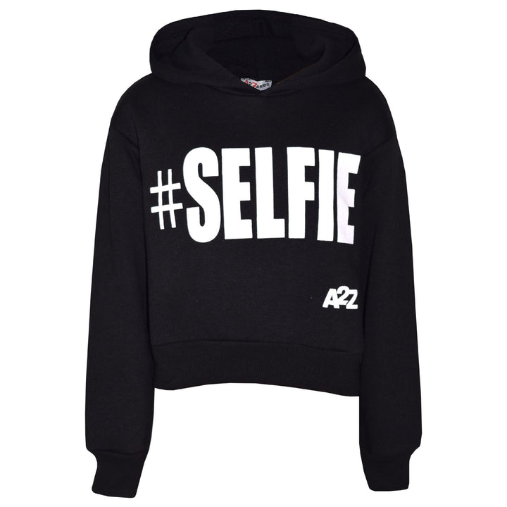 Kids Girls #Selfie Printed Hooded Crop Top & Bottom Jogging Suit