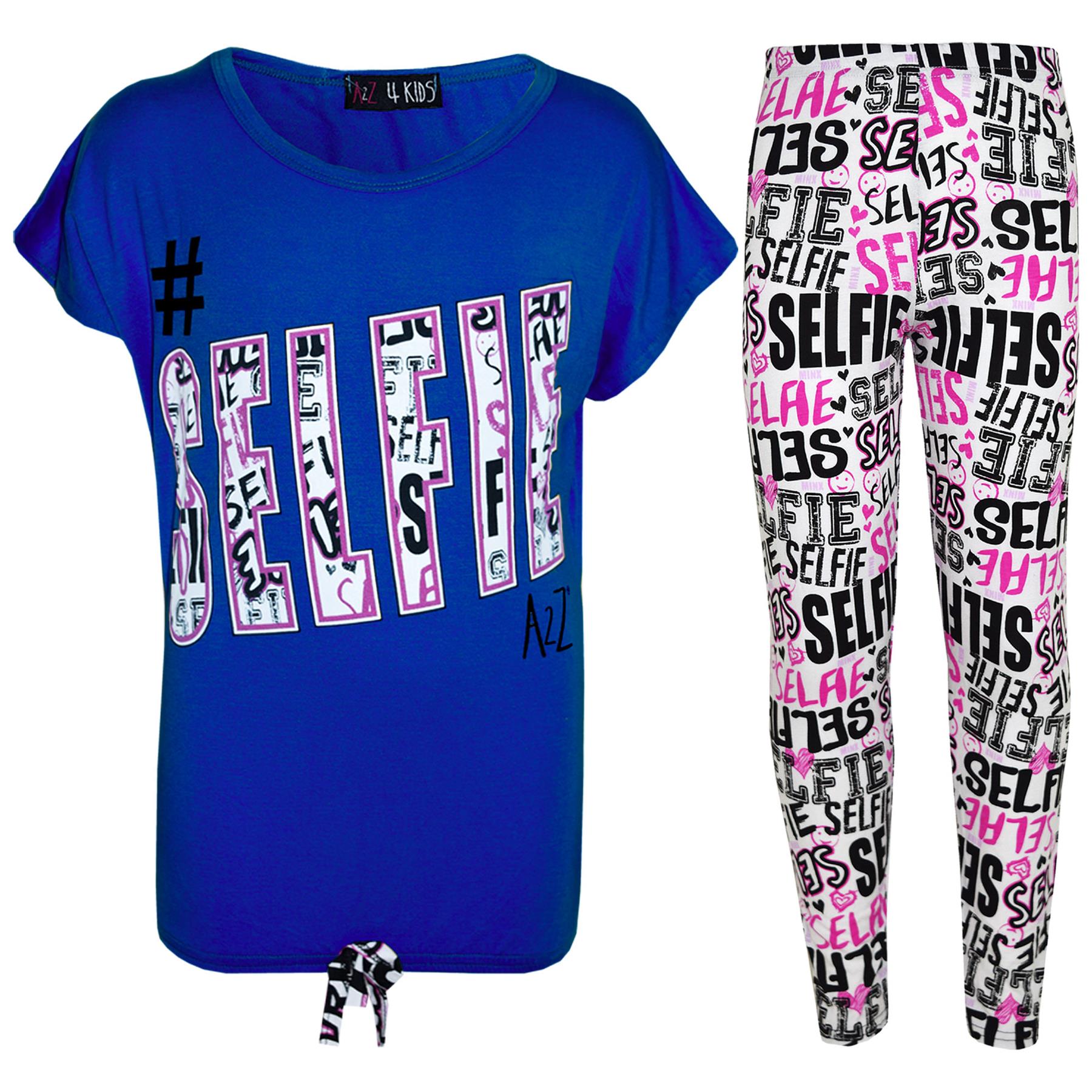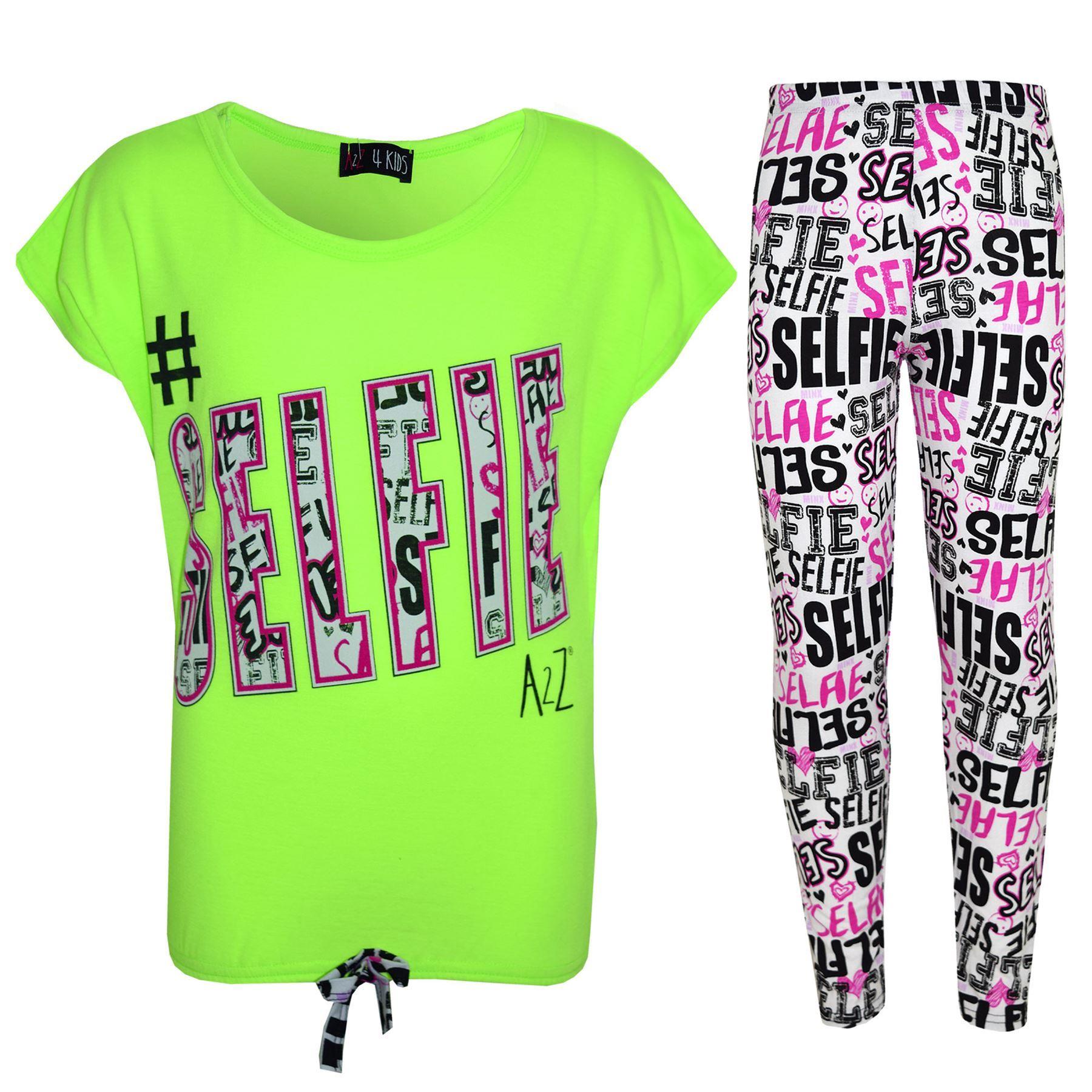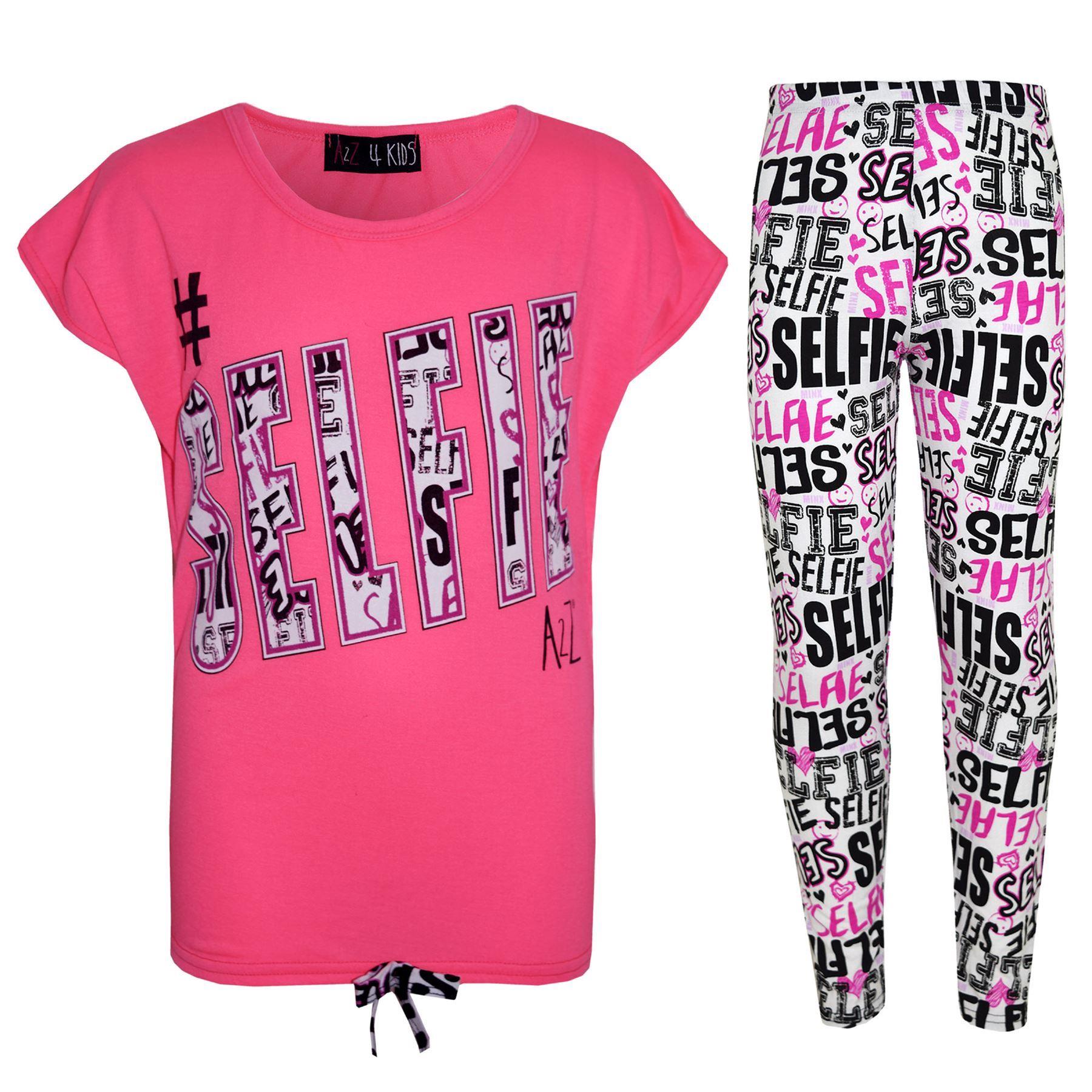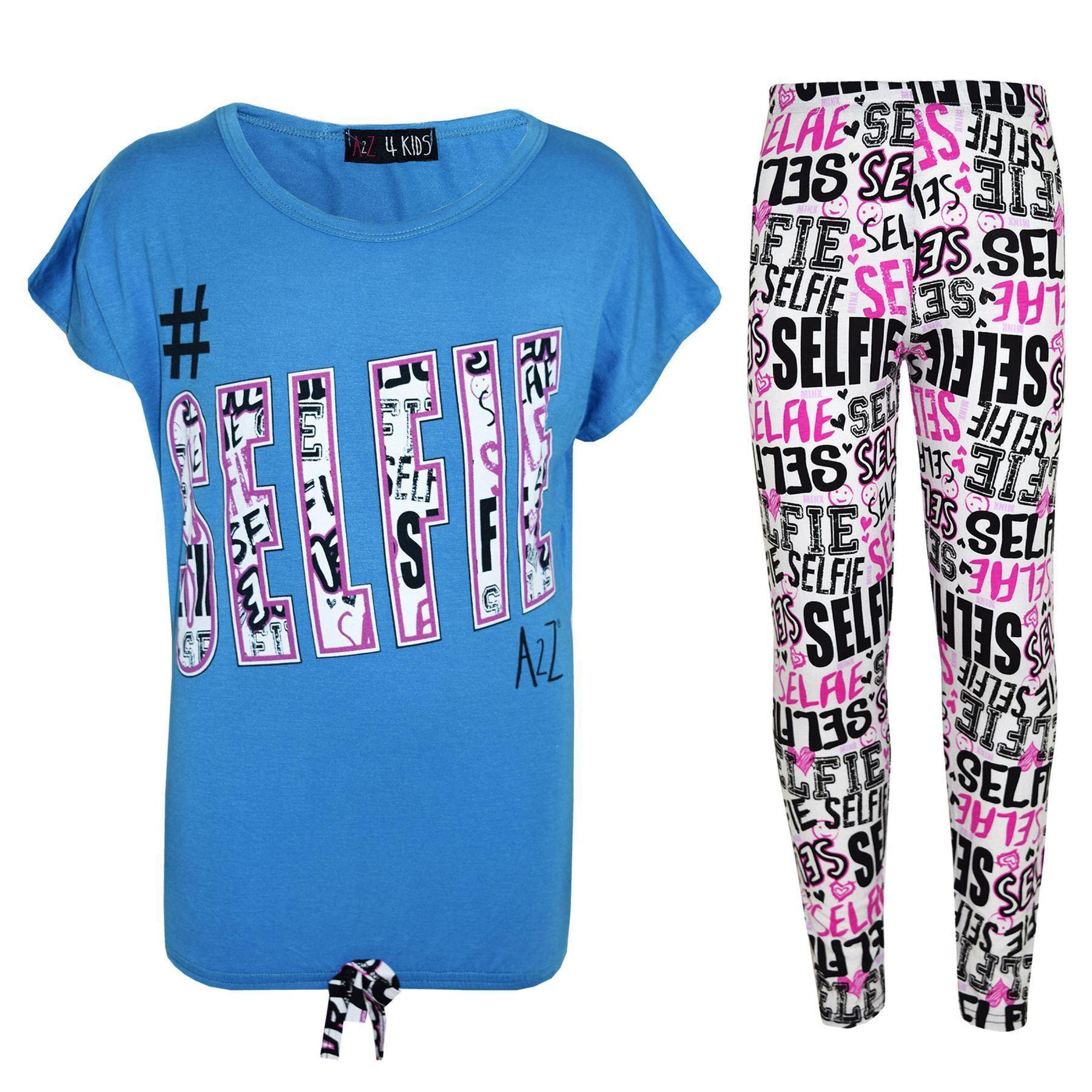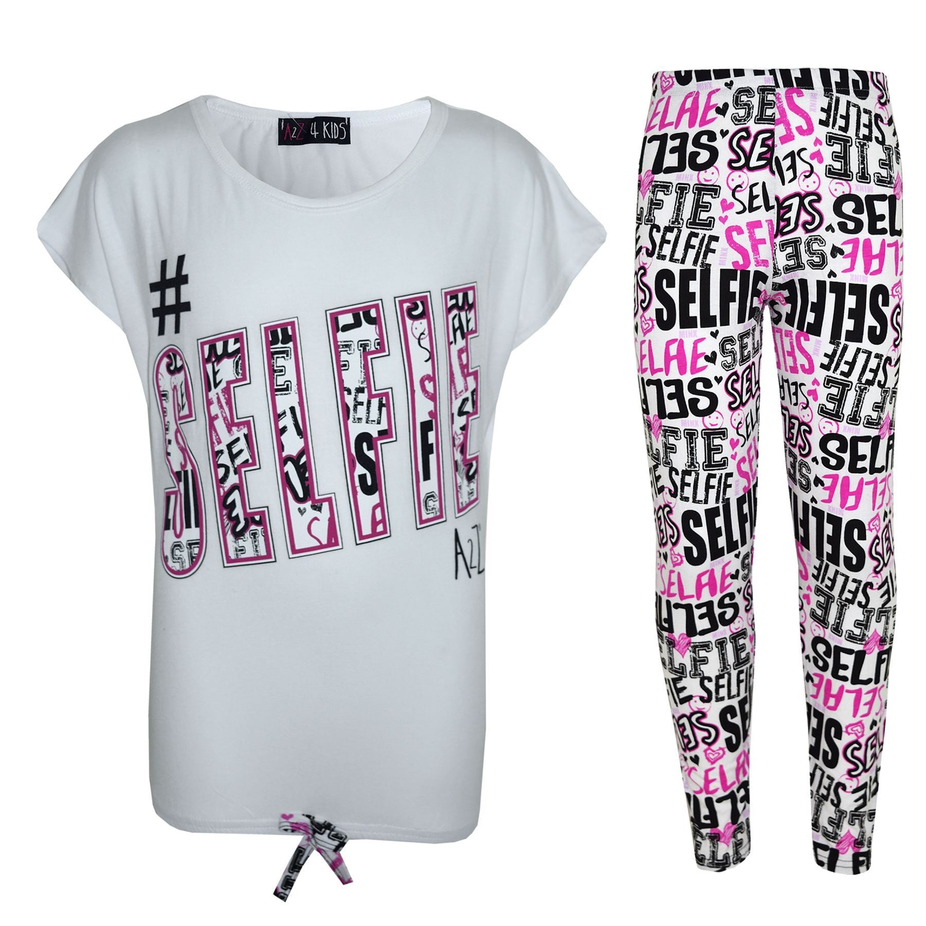 Kids Girls #Selfie T Shirt Top & Fashion Selfie Graffiti Legging Set 7-13 Years