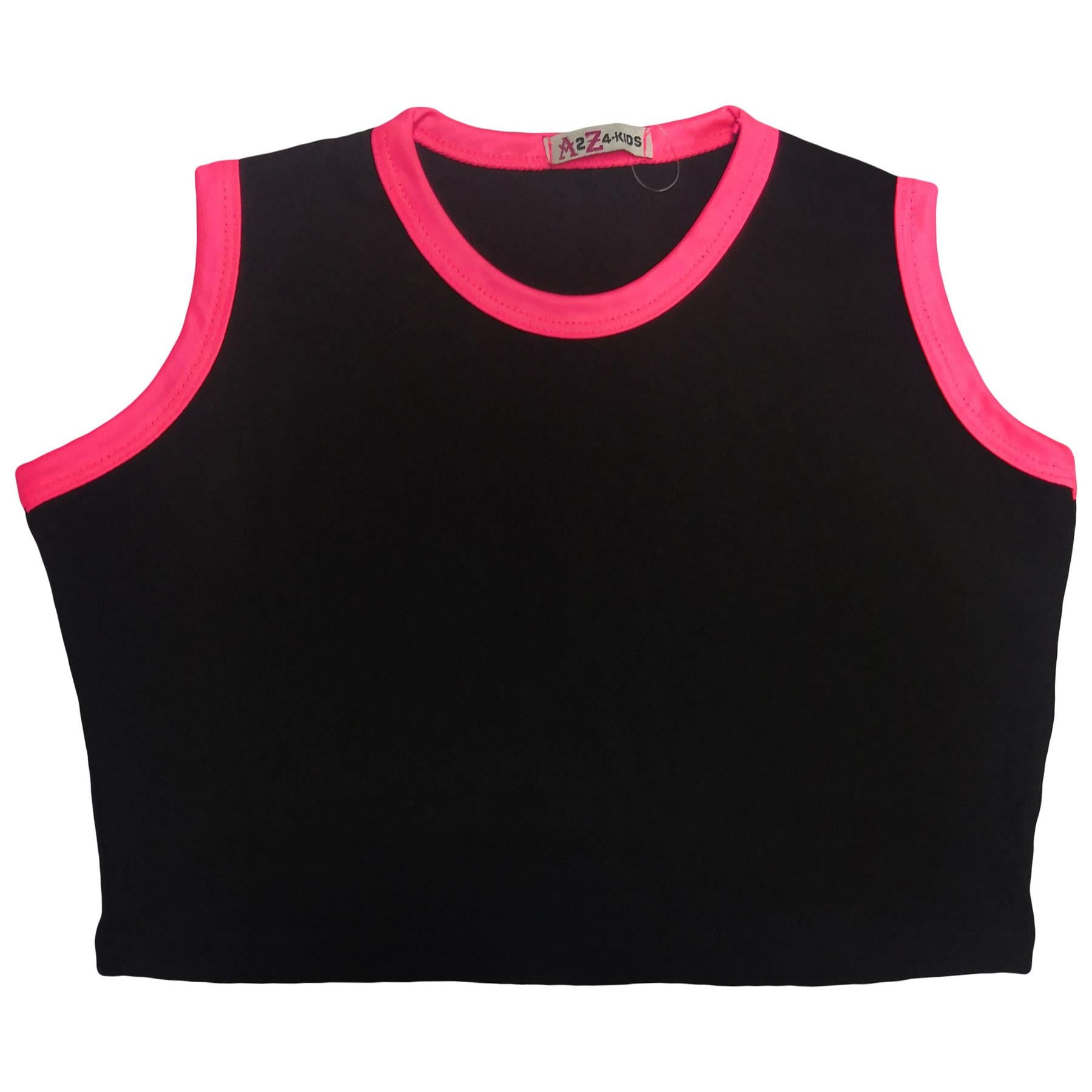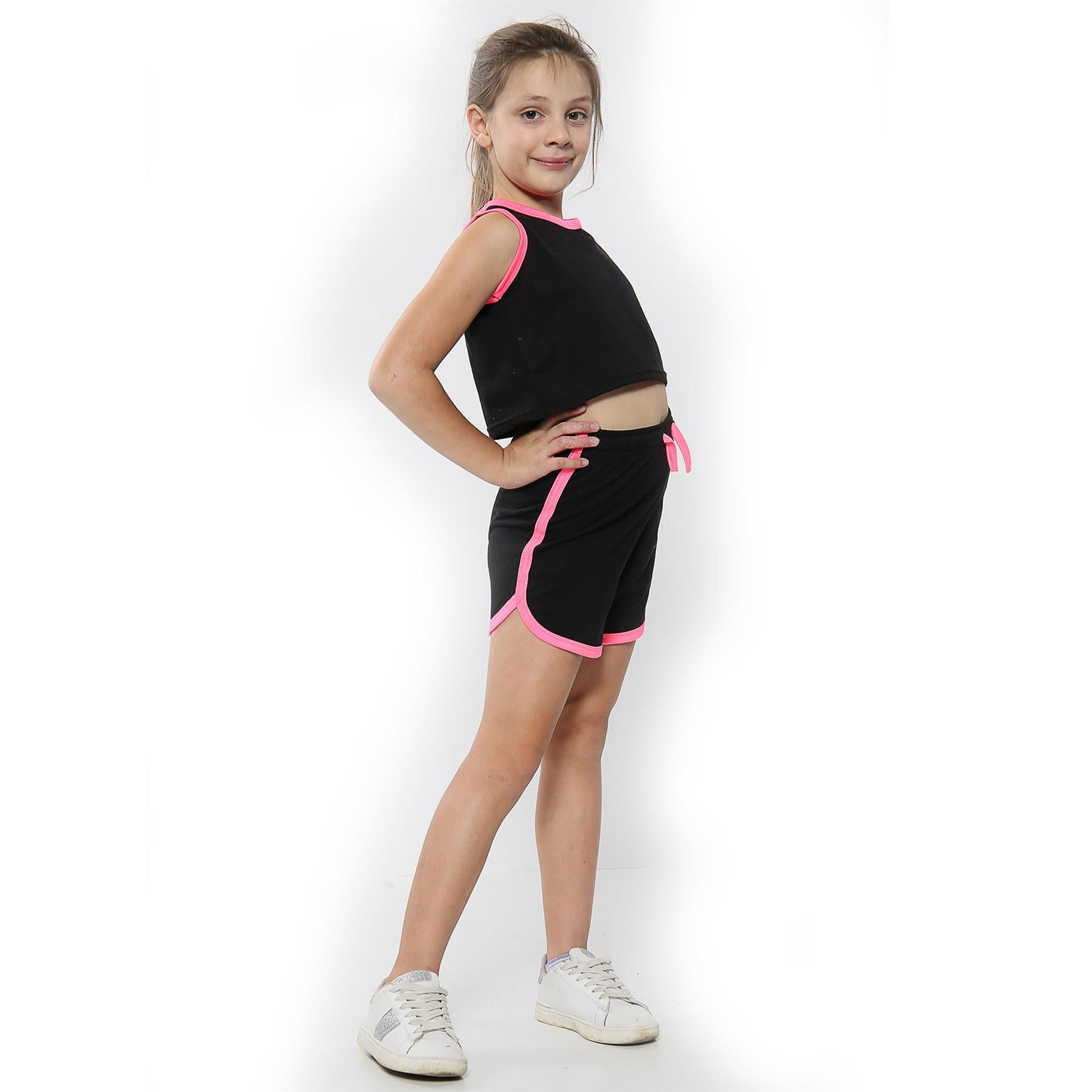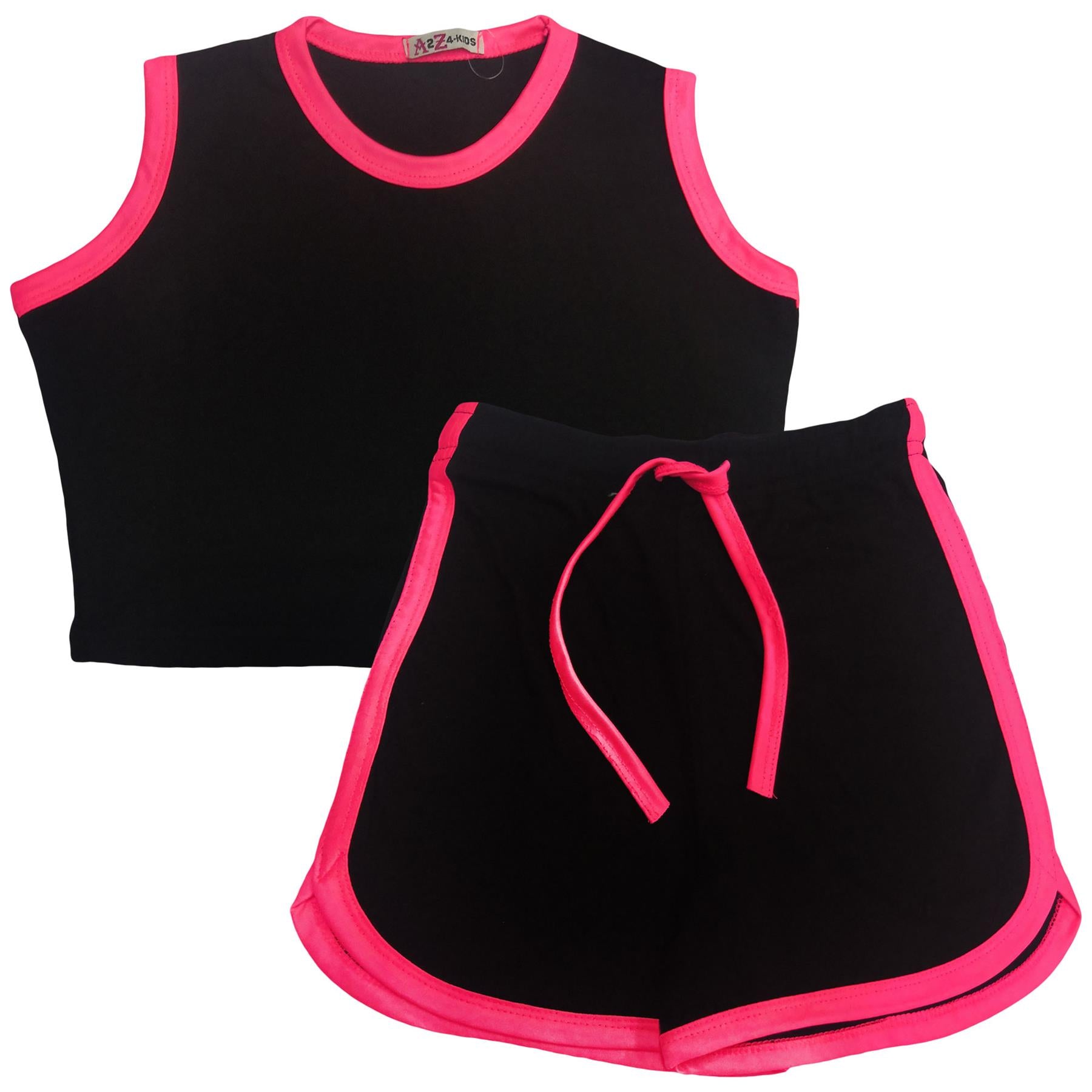 Kids Girls Shorts 100% Cotton Contrast Taped Summer Black Top & Hot Shorts Outfit Set New Age 5 6 7 8 9 10 11 12 13 Years