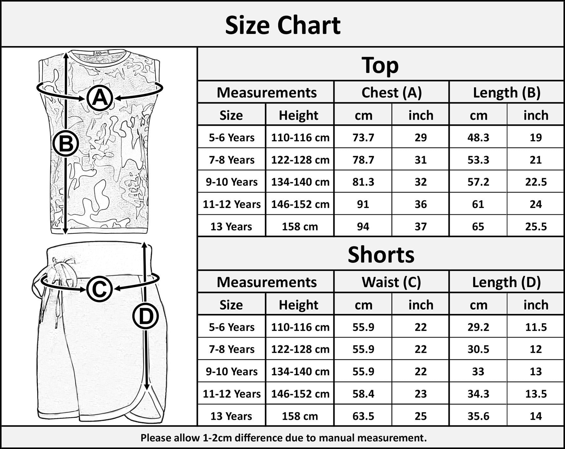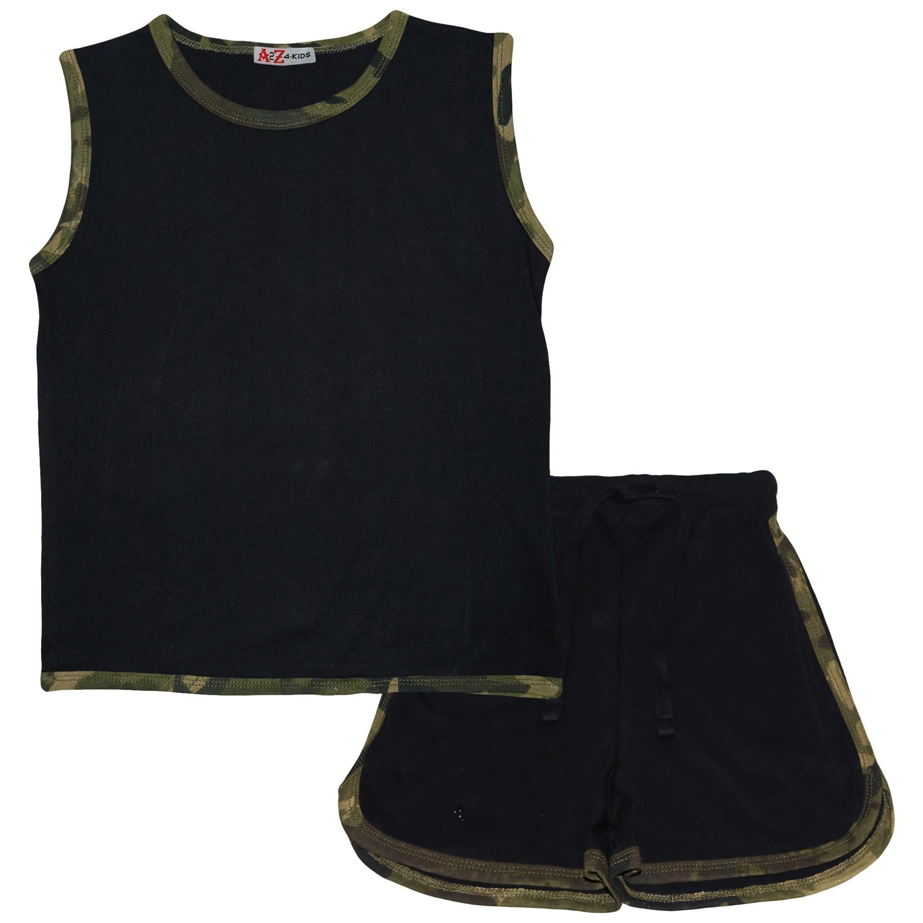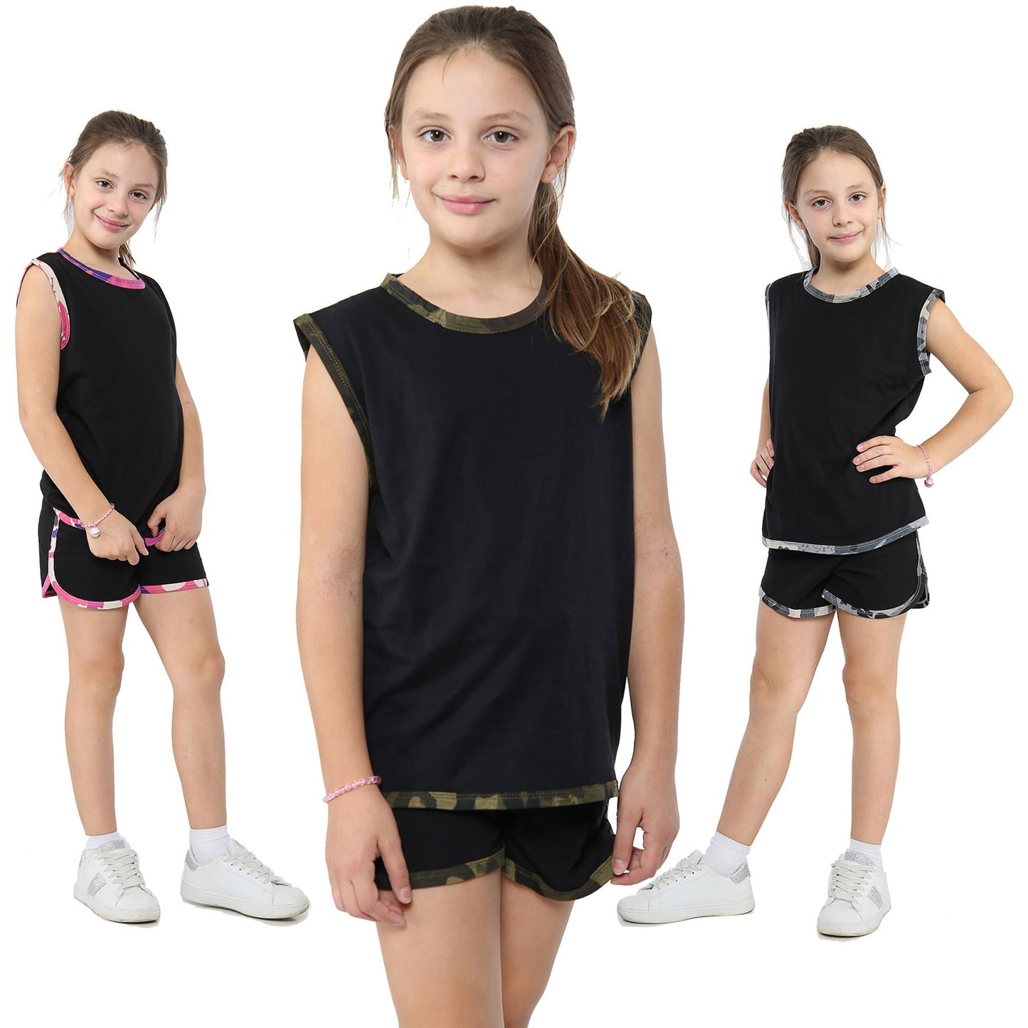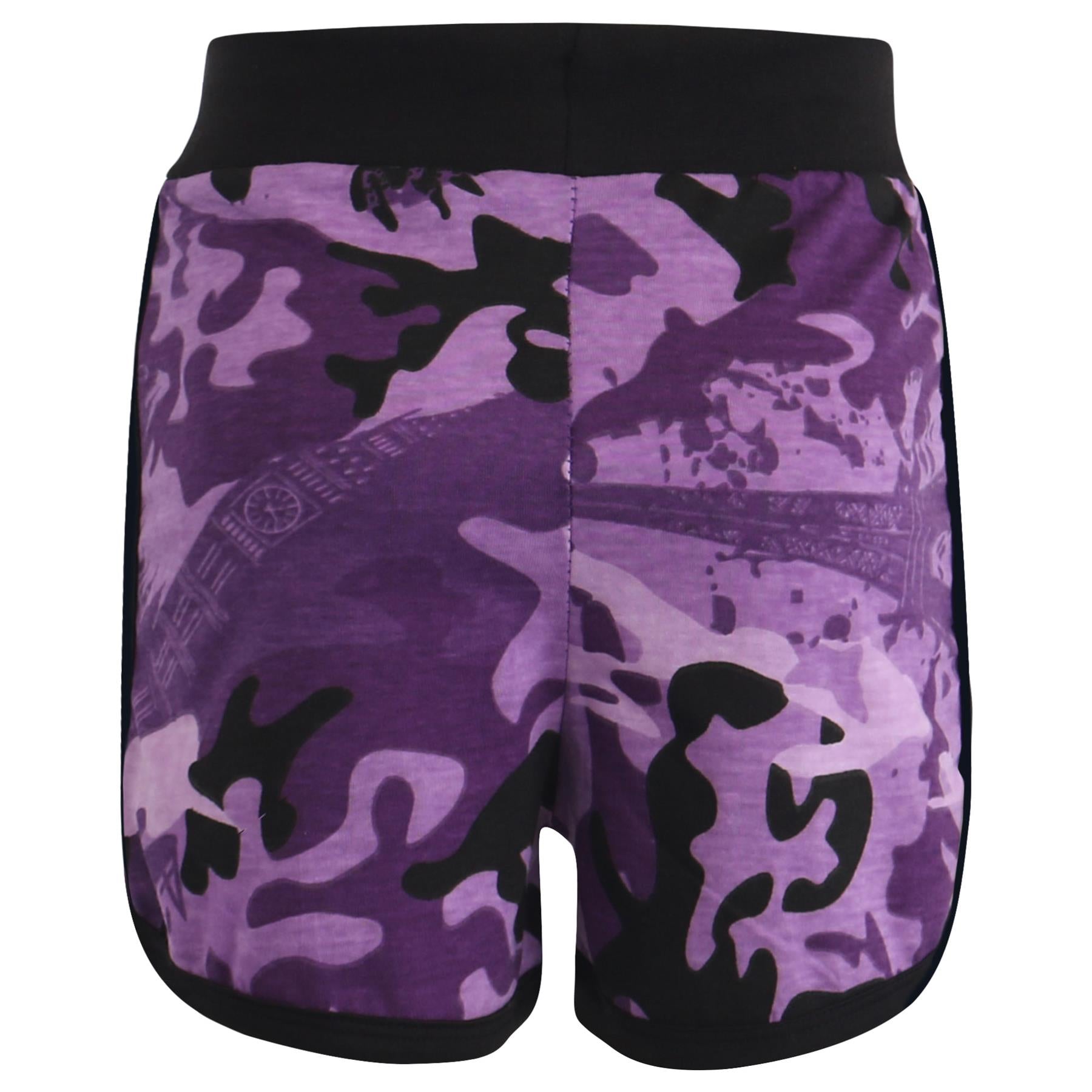 Kids Girls Shorts Set 100% Cotton Camouflage Taped Summer Vest Top Short 5-13 Yr