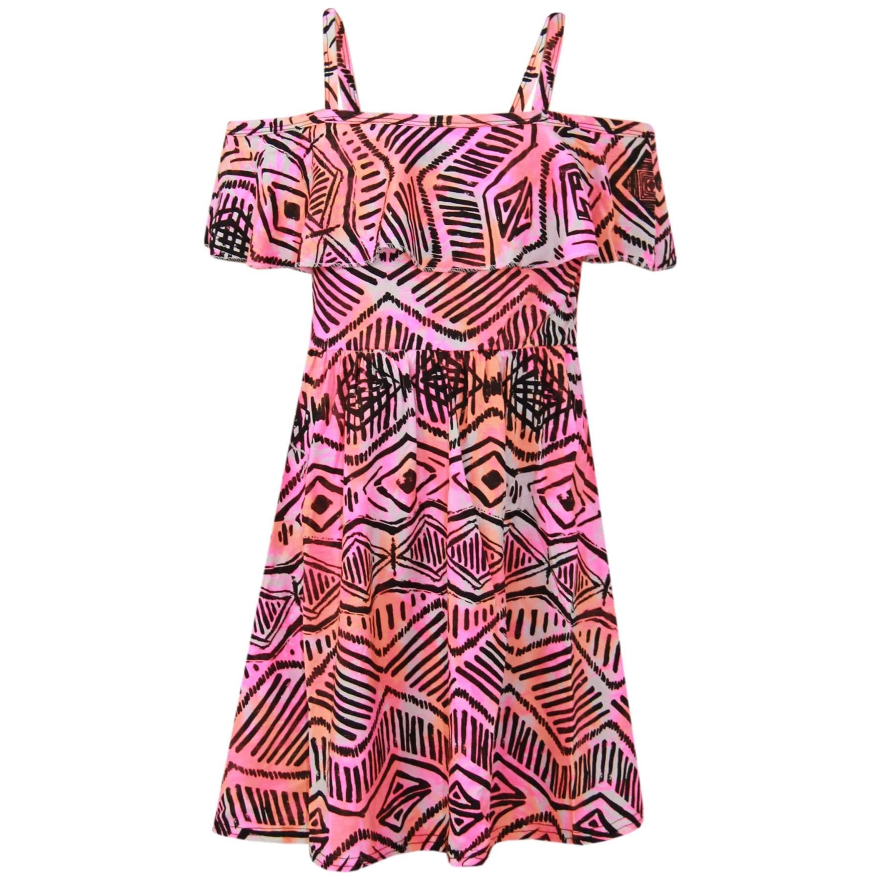 Kids Girls Skater Dress Aztec Print Summer Party Off Shoulder Dresses 7-13 Years