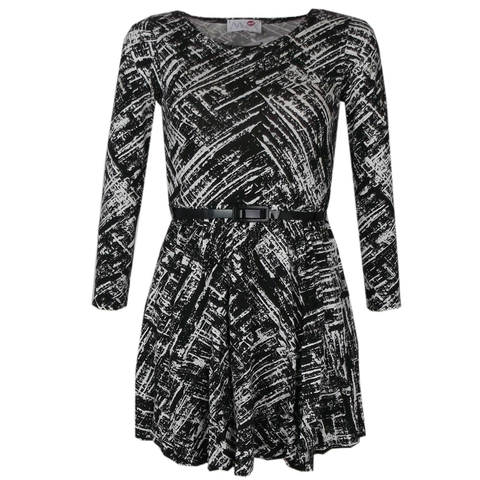 Kids Girls Skater Dress Distressed Print Party Dresses With Free Belt 7-13 Years