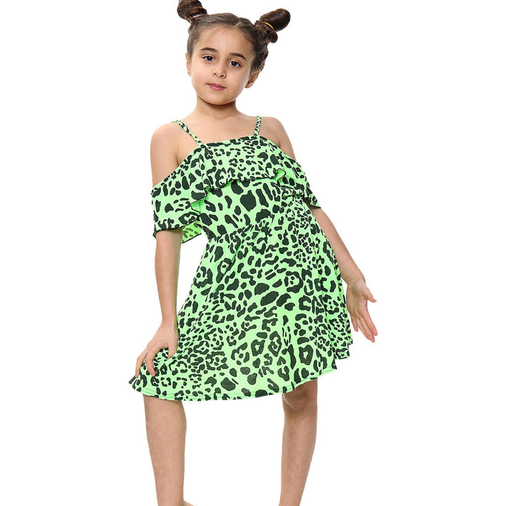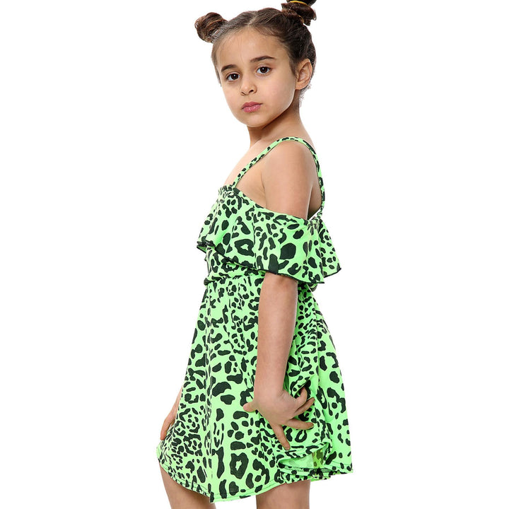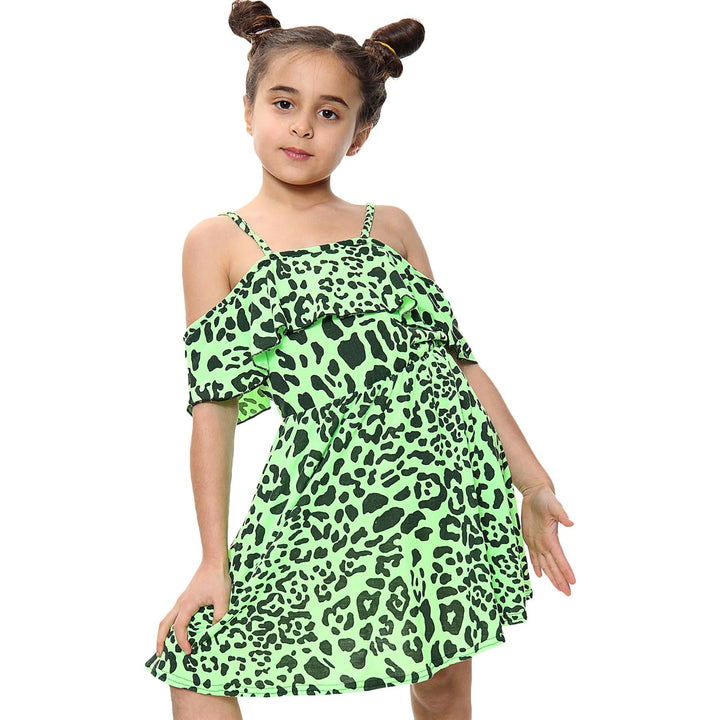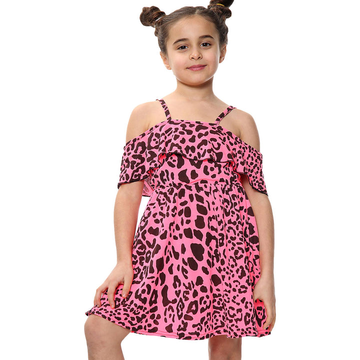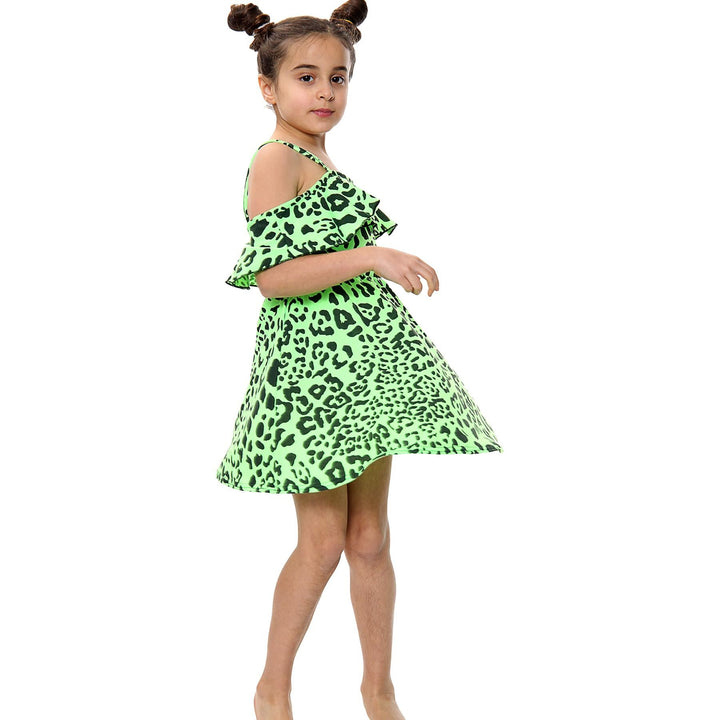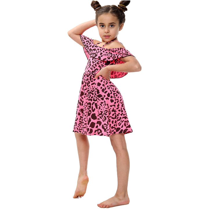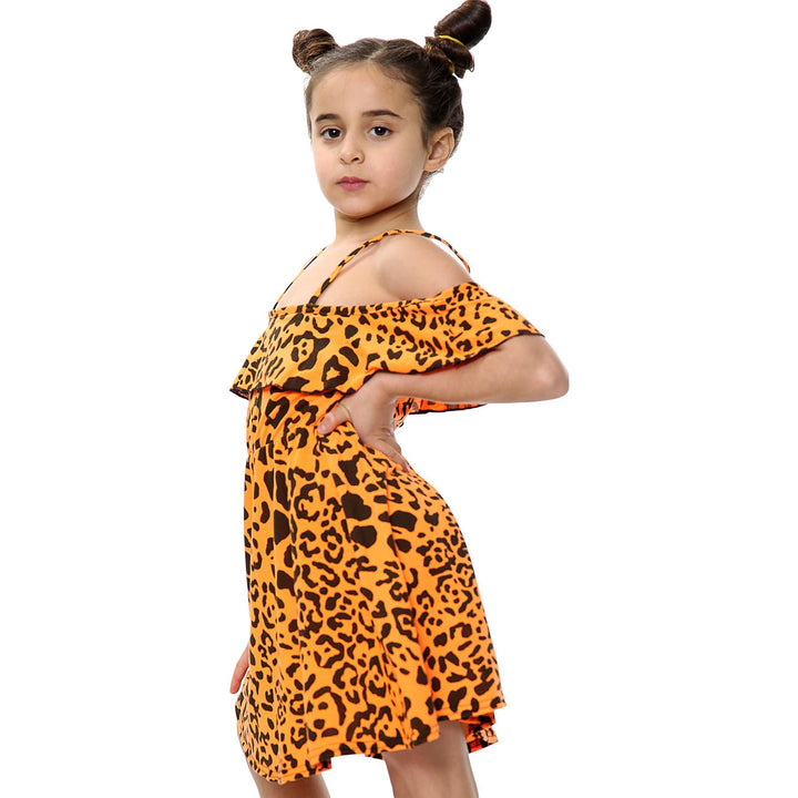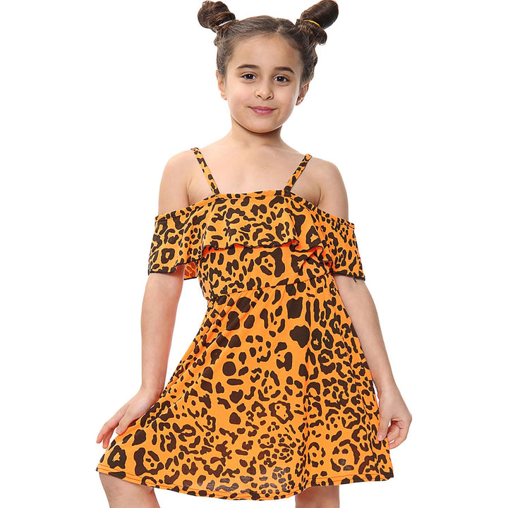 Kids Girls Skater Dress Leopard Print Summer Party Off Shoulder Dress 5-13 Years