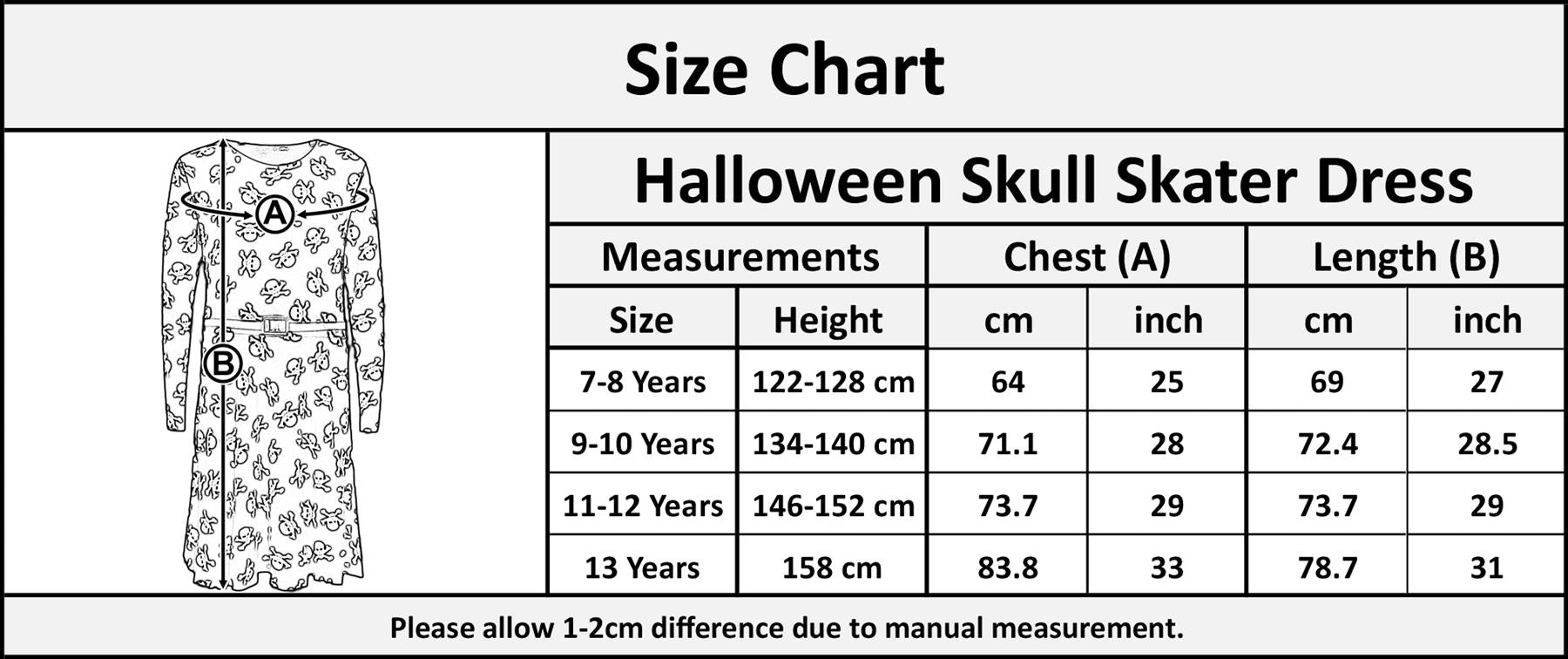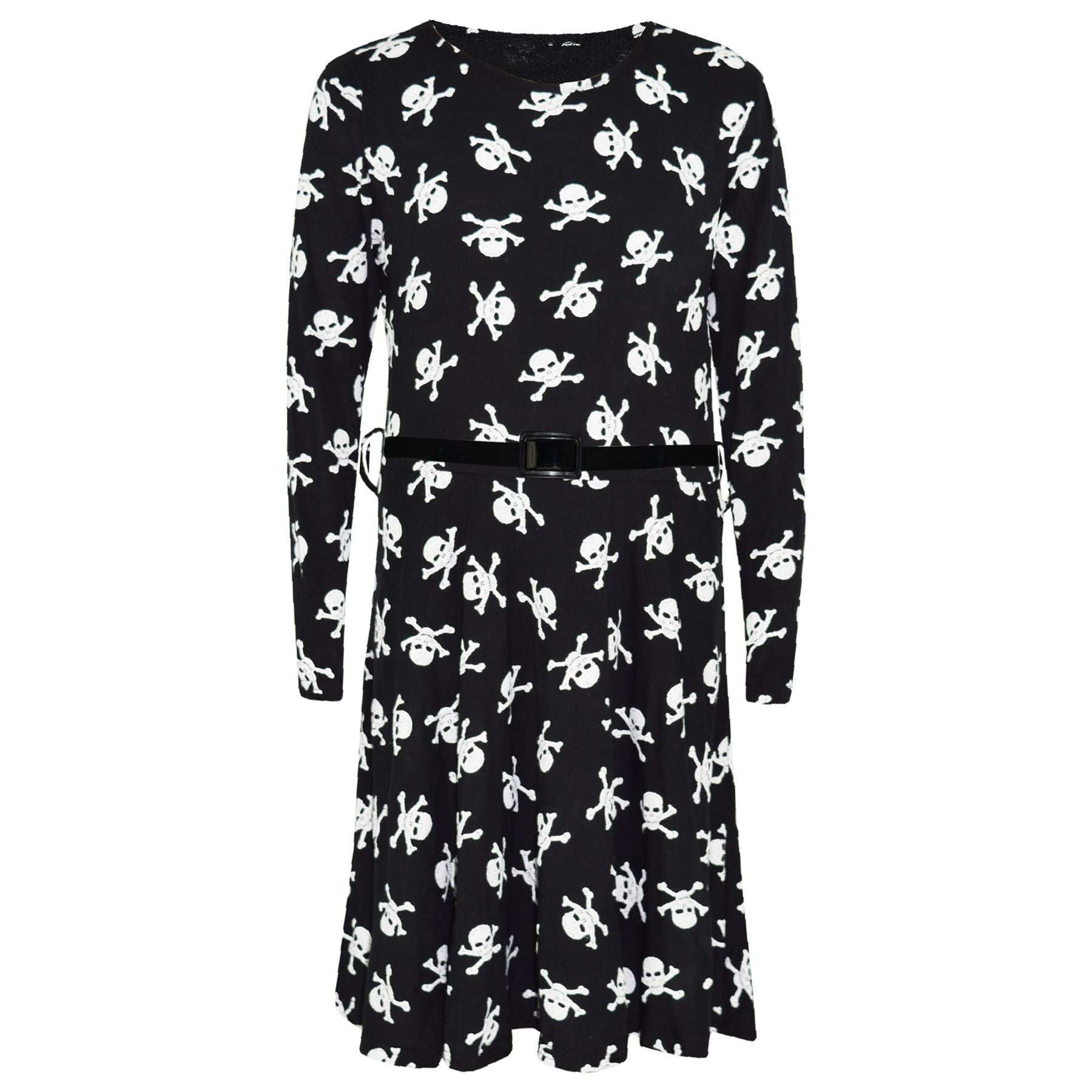 Kids Girls Skater Dress Skull & Cross Bones Dresses Halloween Costume 7-13 Years