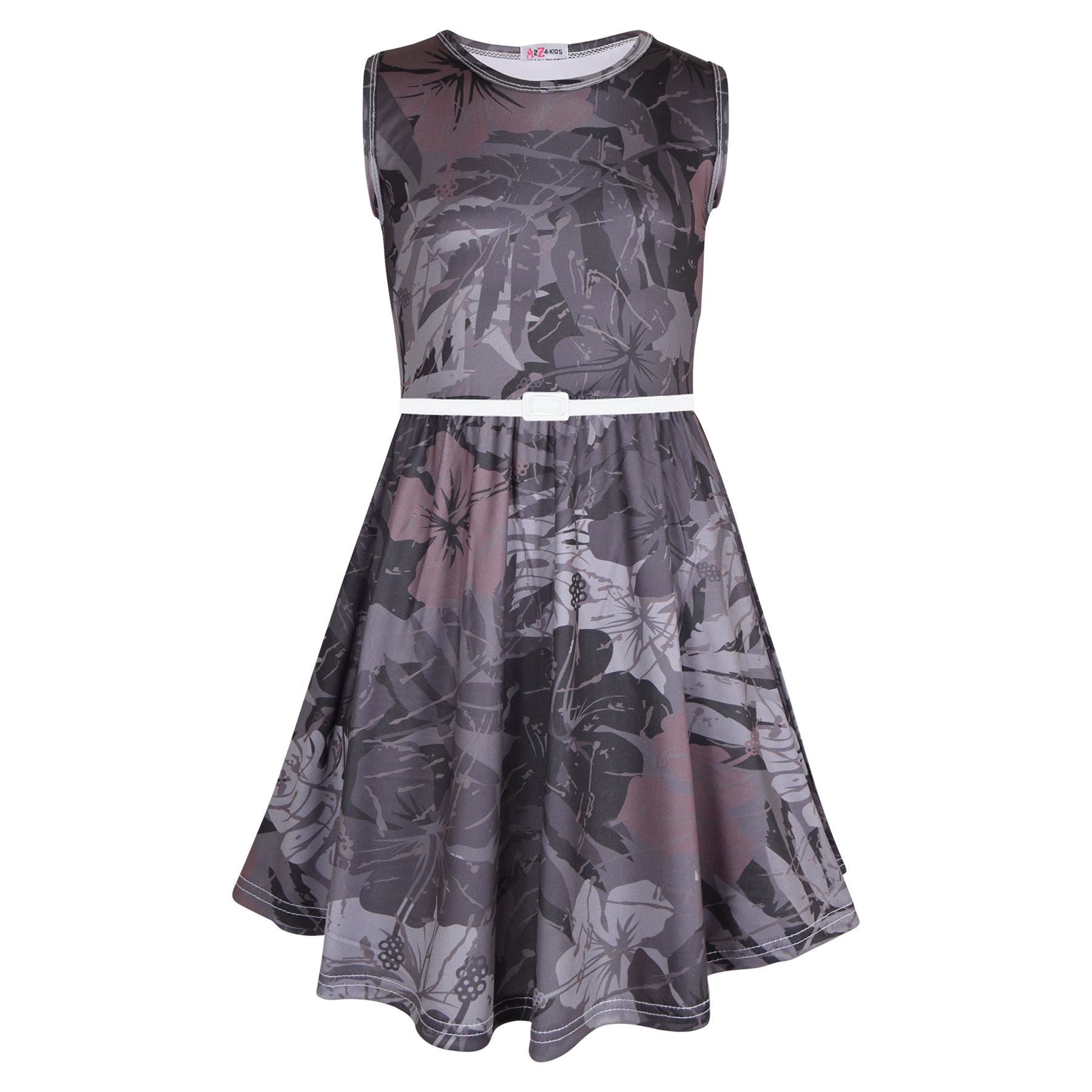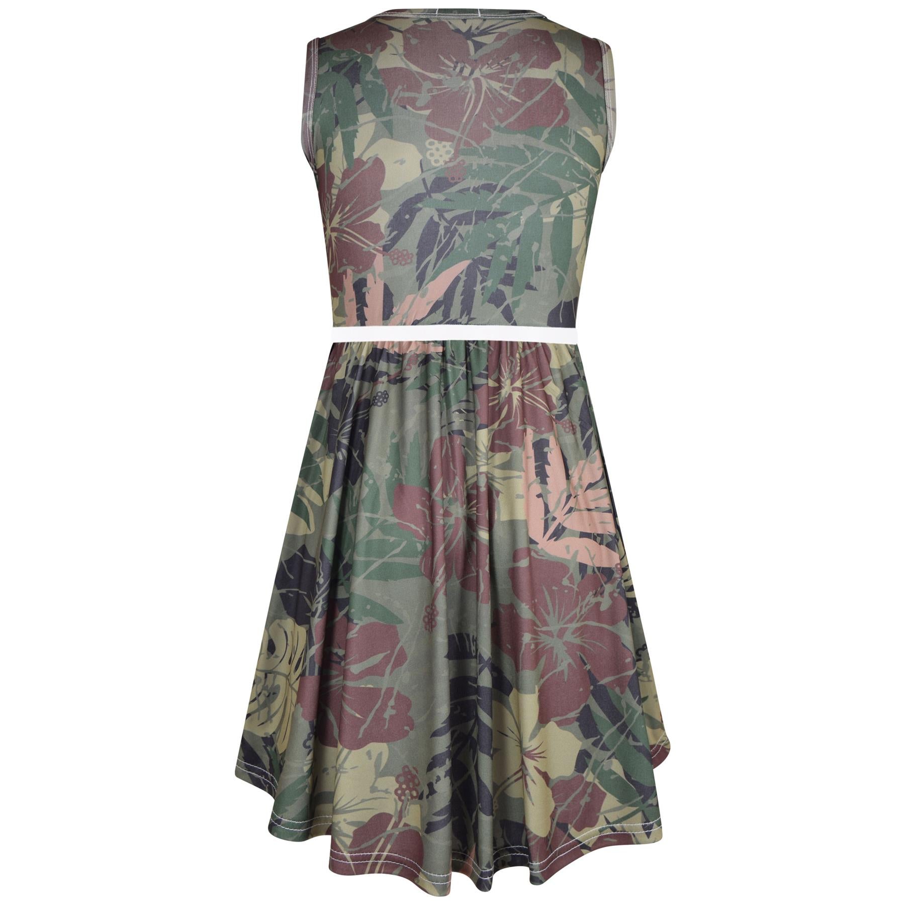 Kids Girls Skater Dress Sleeveless Camo Leaf Print Party Fashion Summer Dresses