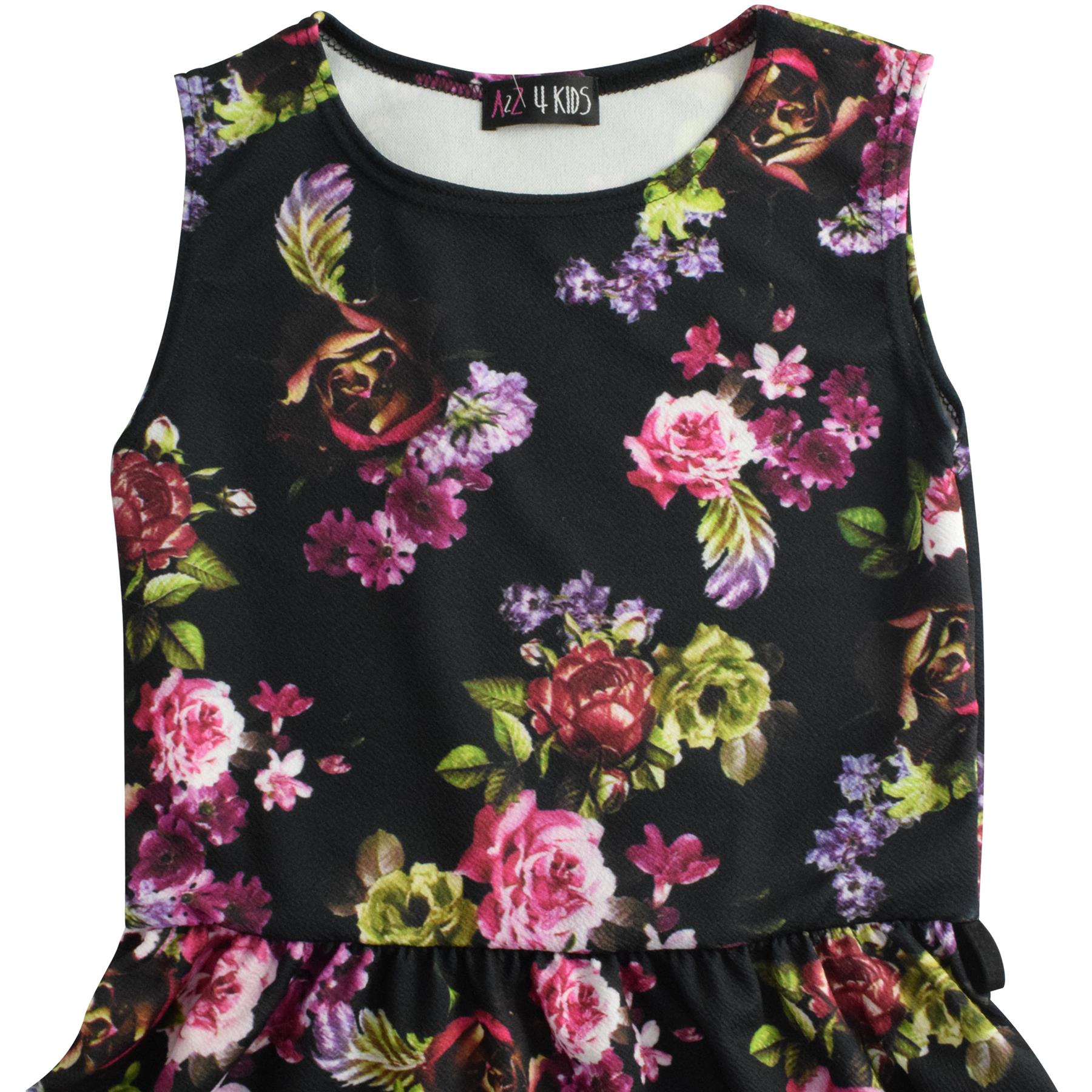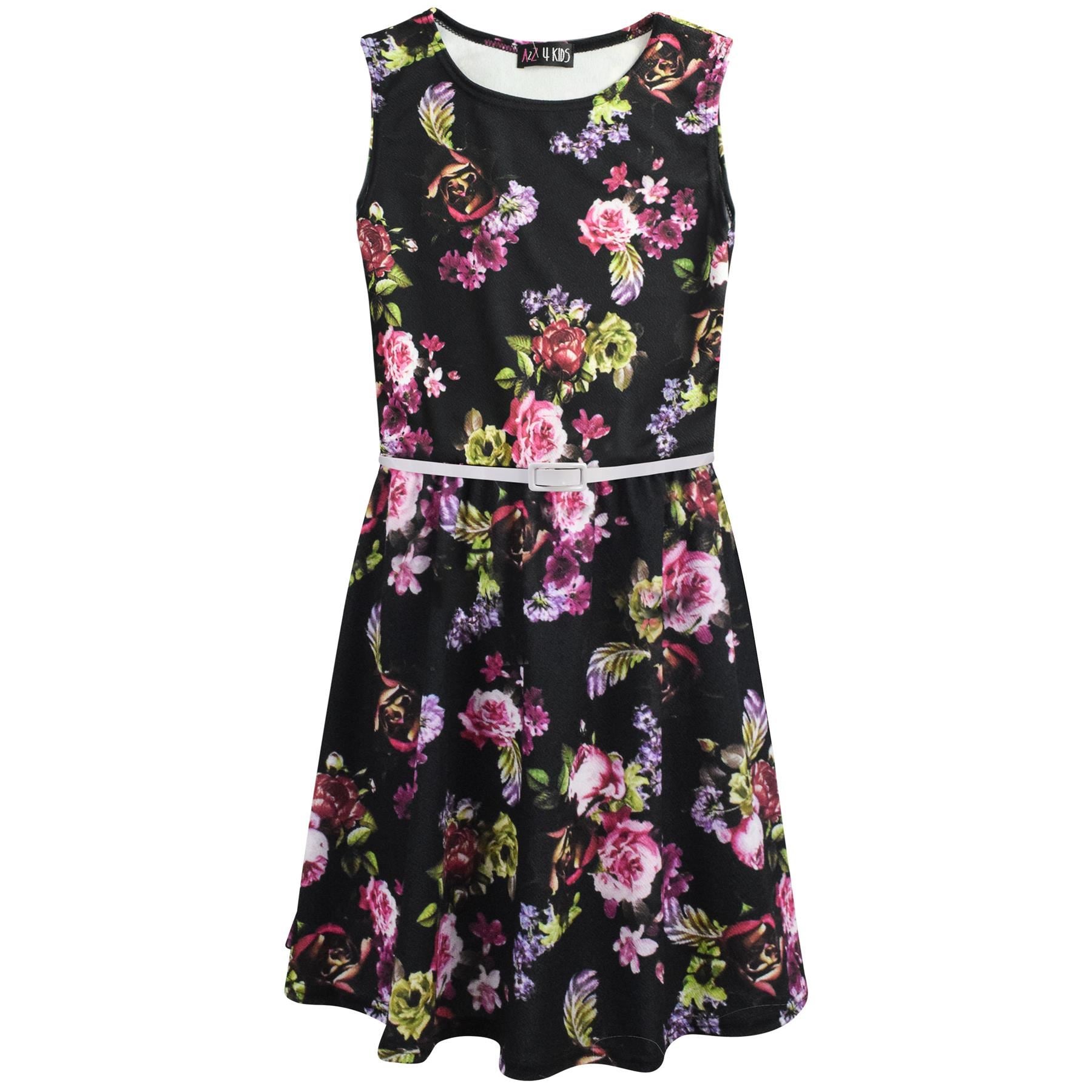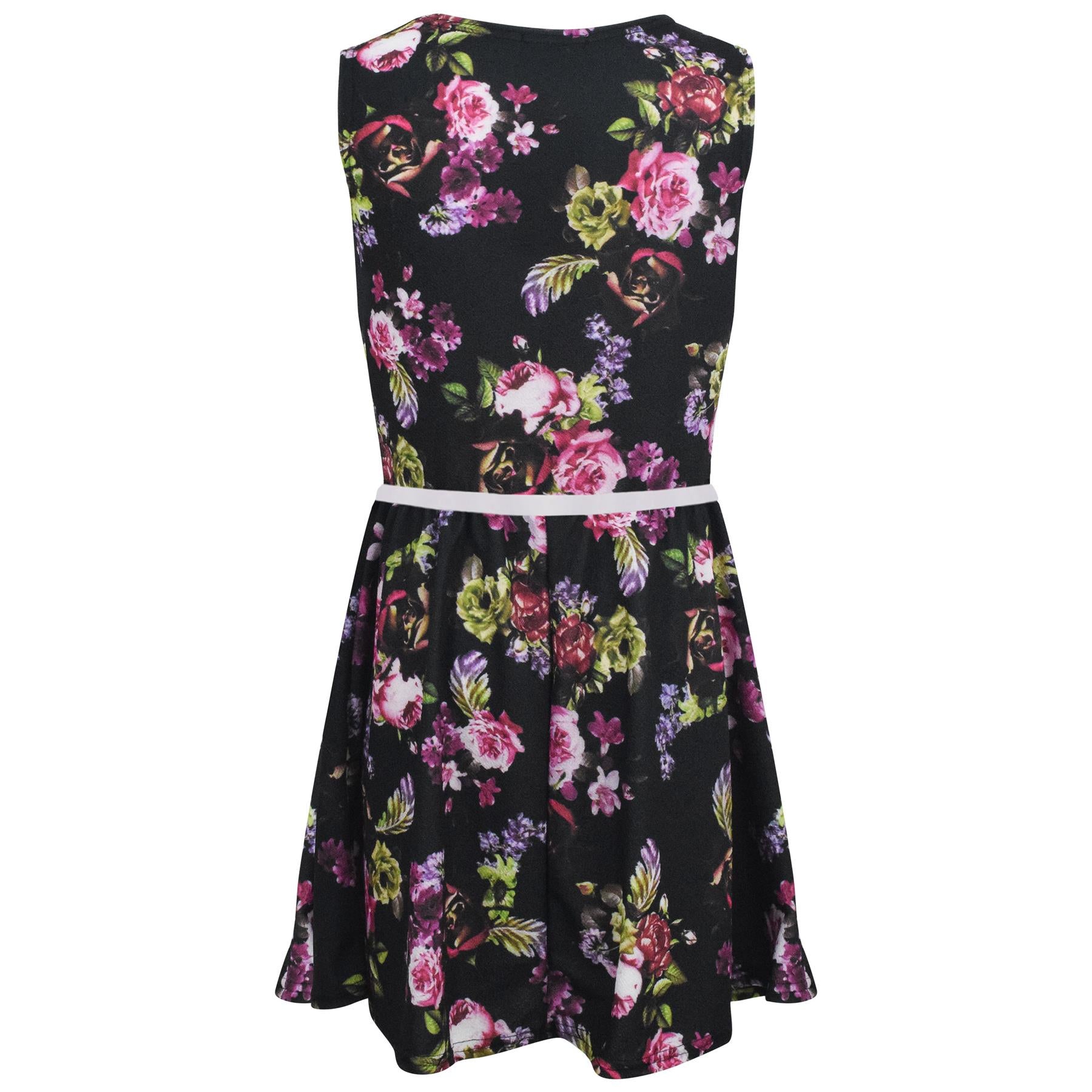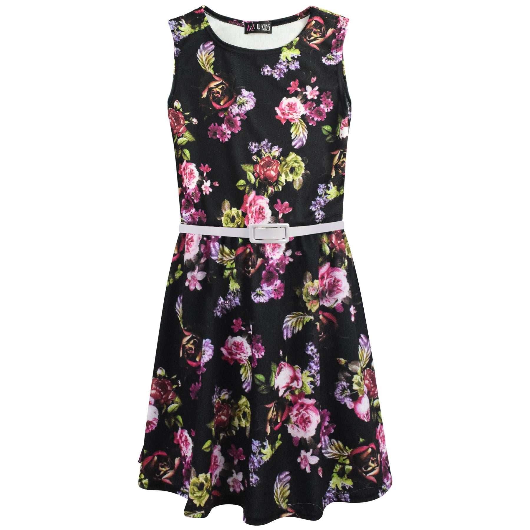 Kids Girls Skater Dress Sleeveless Floral Style Wear Age 5-13 Years