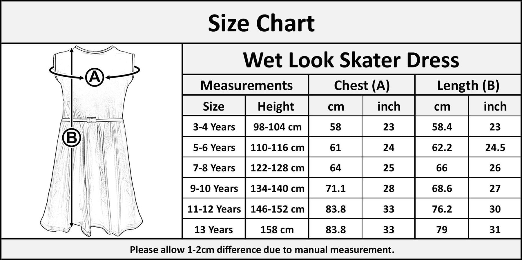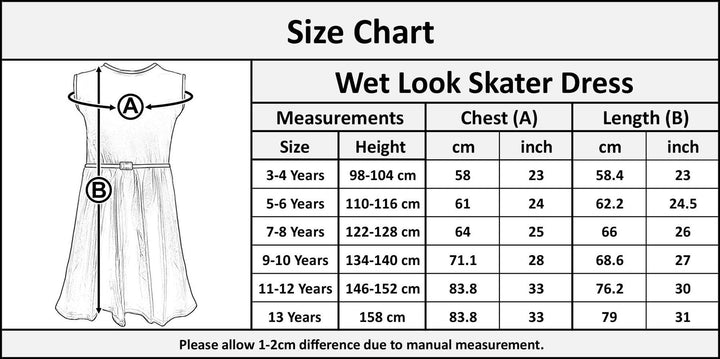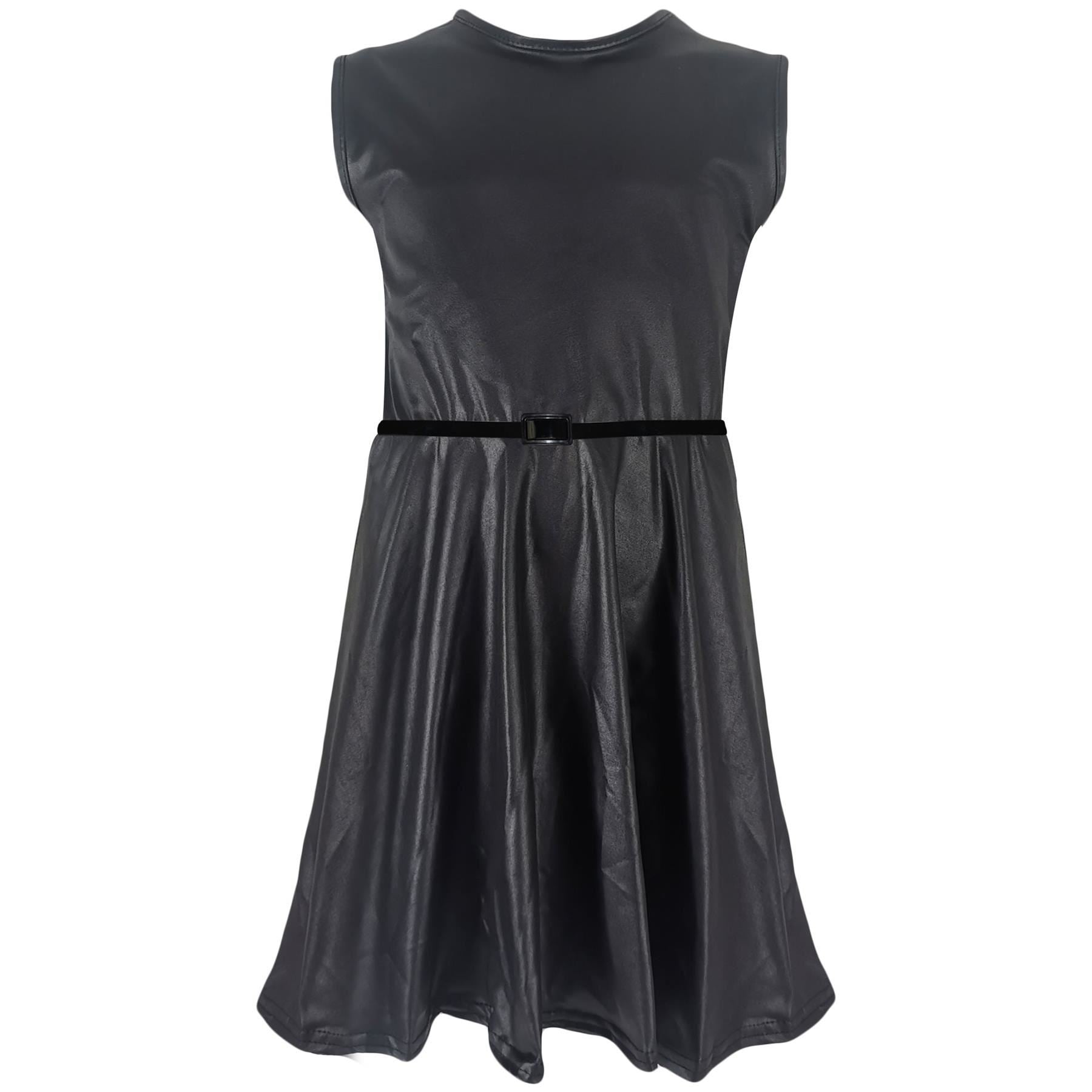 Kids Girls Skater Dress Wet Look Summer Party Fashion Top Outfit Dresses 5-13 Yr