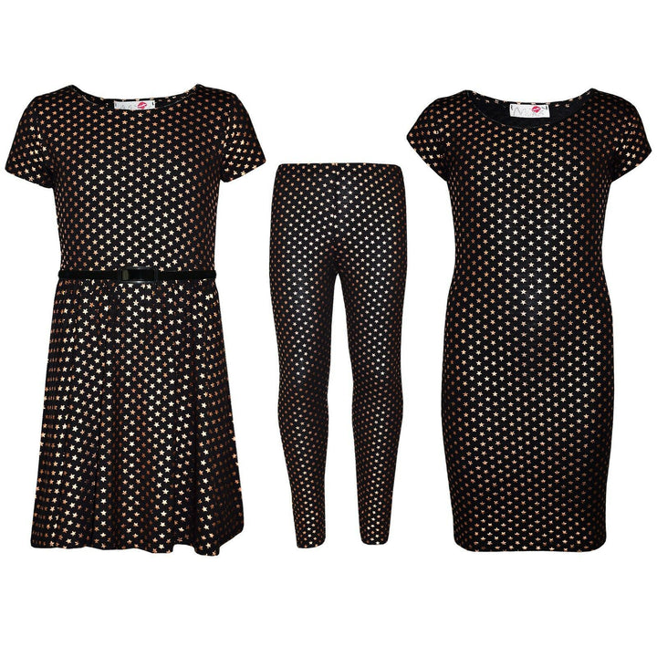 Kids Girls Star Print Midi Dress, Skater Dress & Fashion Legging Age 7-13 Years