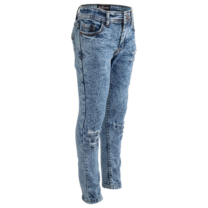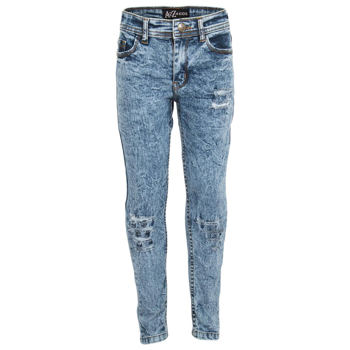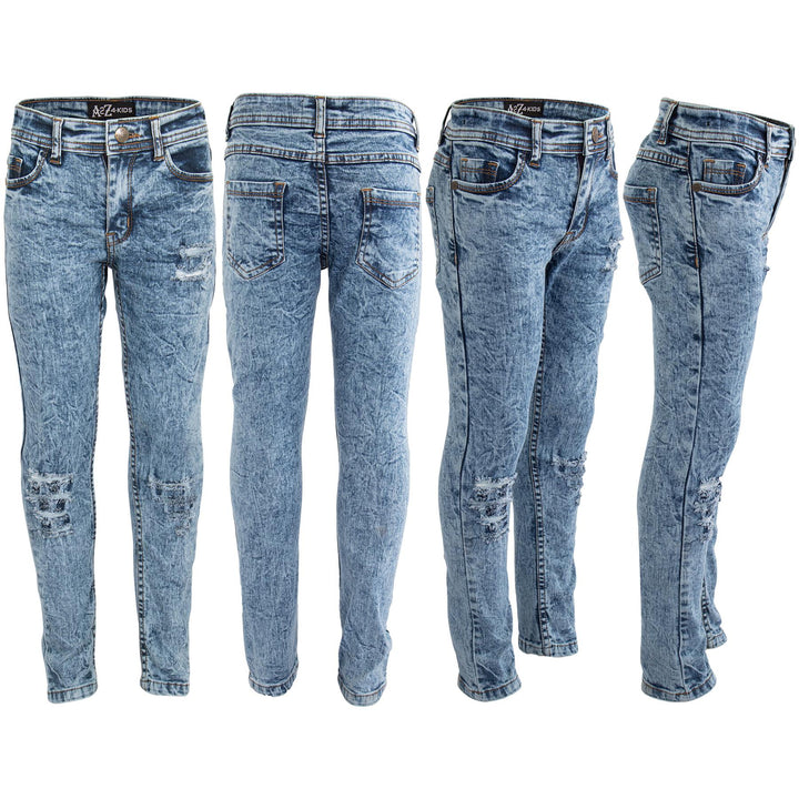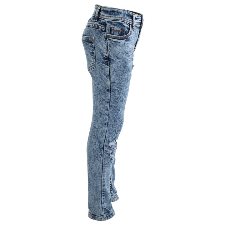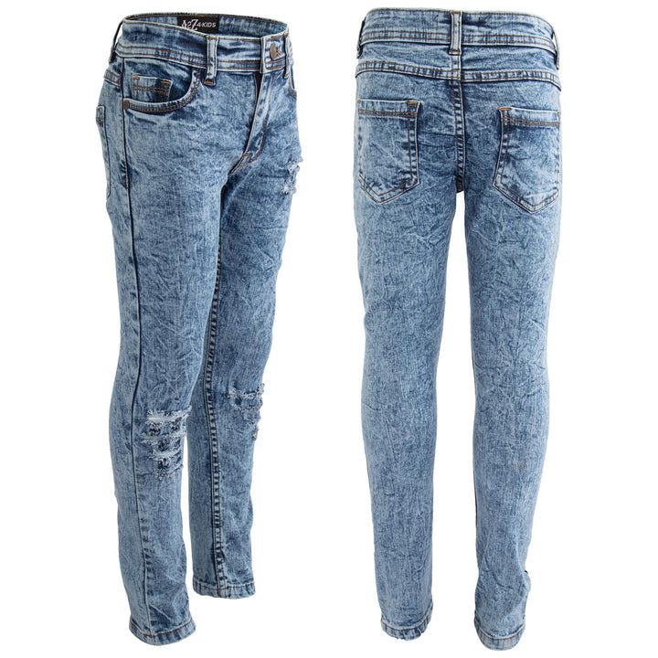 Kids Girls Stretchy Jeans Dark Blue Denim Ripped Tie Dye Print Skinny Jeggings