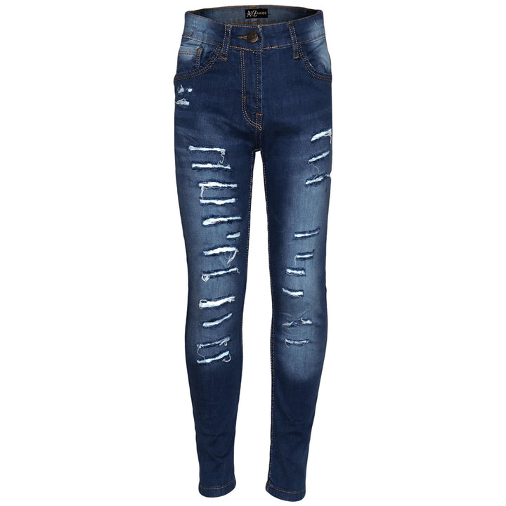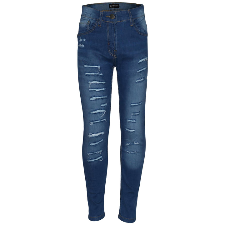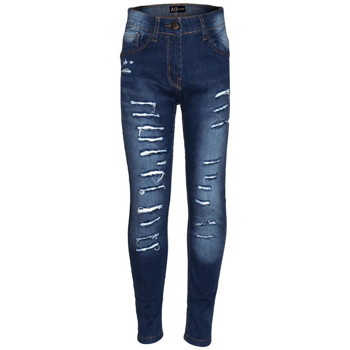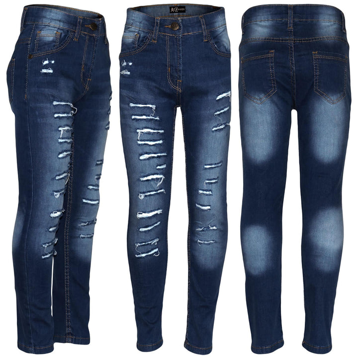 Kids Girls Stretchy Jeans Denim Ripped Faded Fashion Skinny Pants Jeggings 5-14