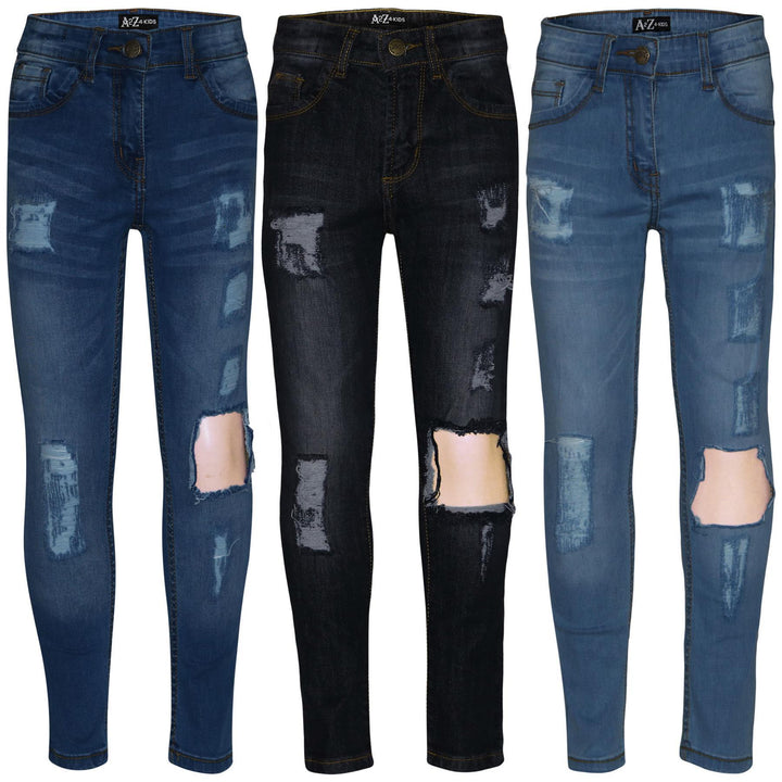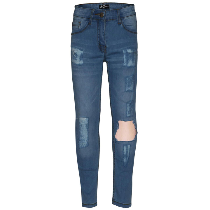 Kids Girls Stretchy Jeans Denim Ripped Faded Skinny Fashion Frayed Pant Jeggings