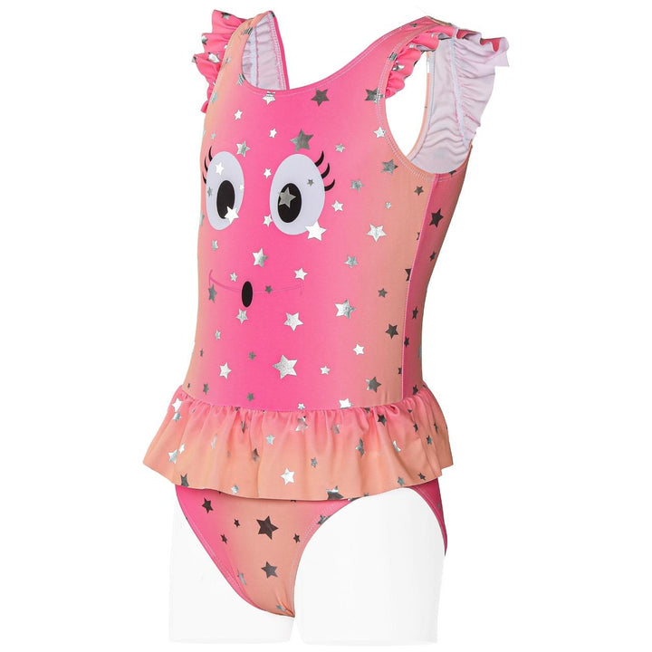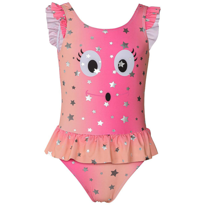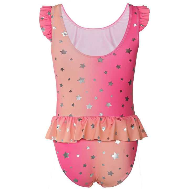 Kids Girls Swimsuit Foil Star Sleeveless One Piece Ruffle Quick Dry Swimwear