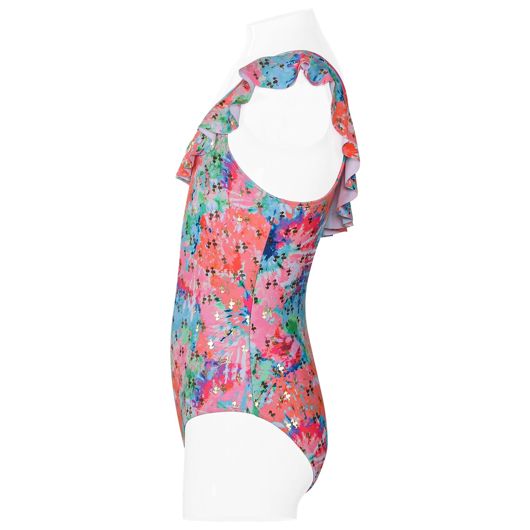 Kids Girls Swimsuit Ruffle Trim Long Sleeve Heart Pattern Swimming Costume 2-14