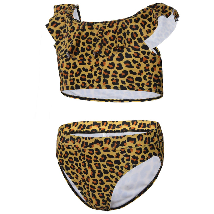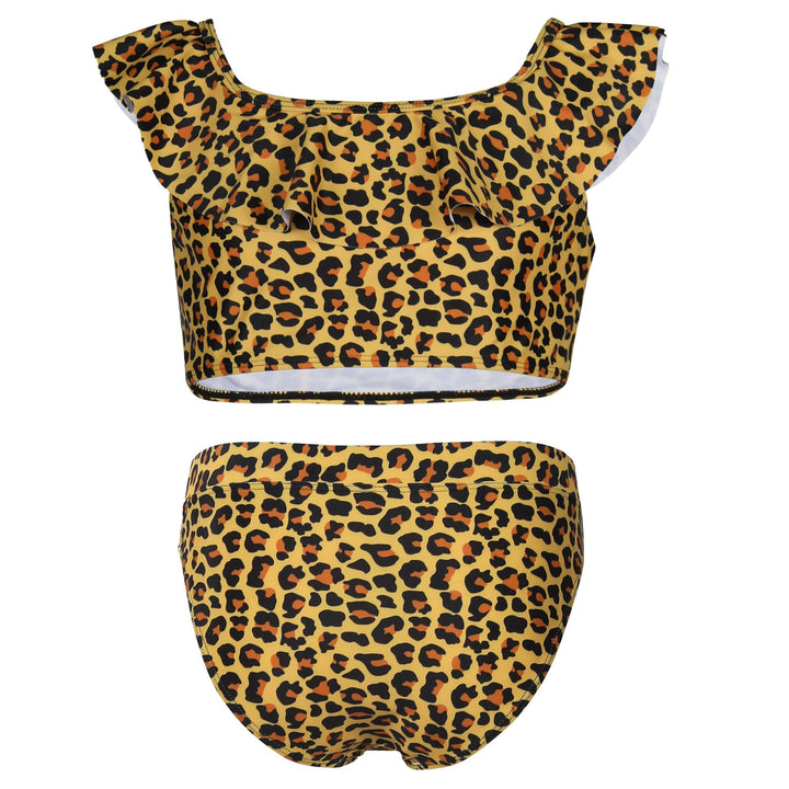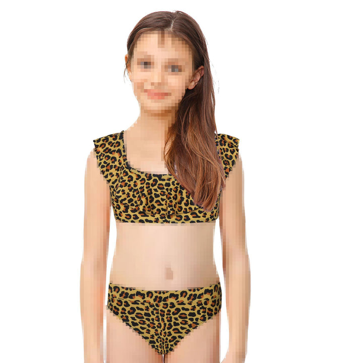 Kids Girls Swimwear Bikini Two Piece Leopard Swimming Suit Ruffle Plunge Outfit