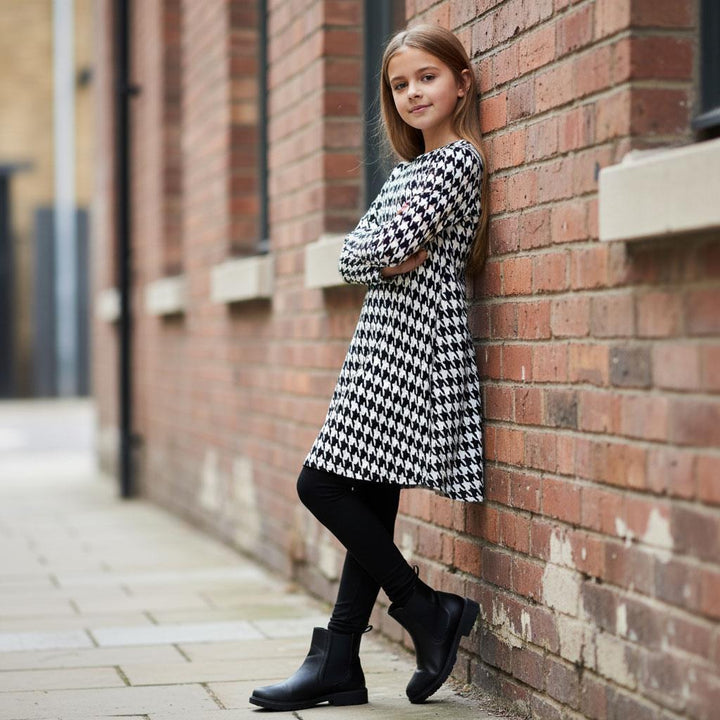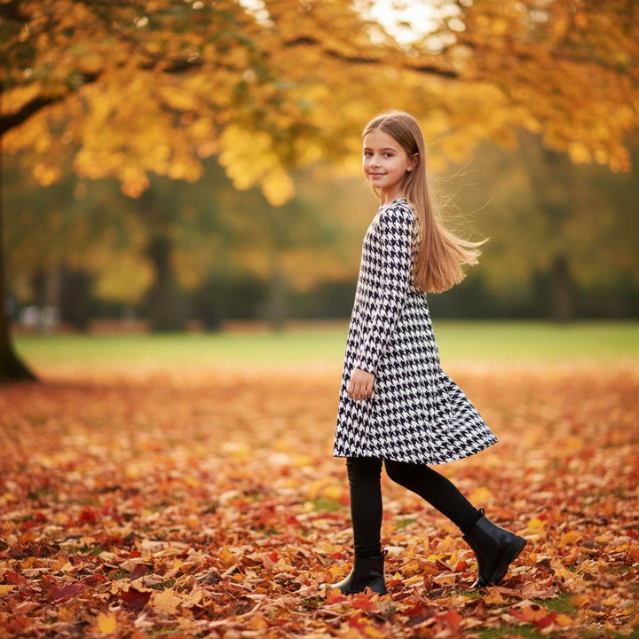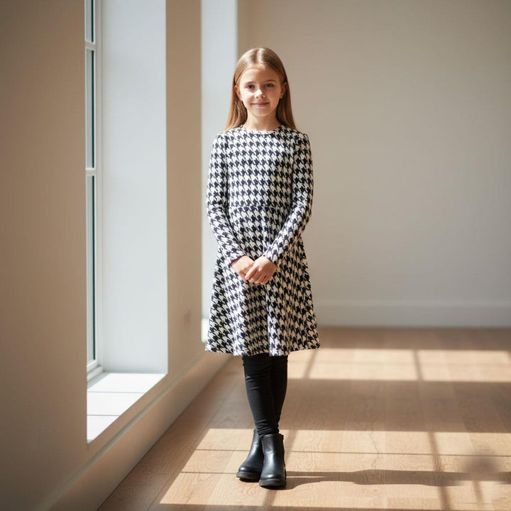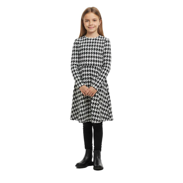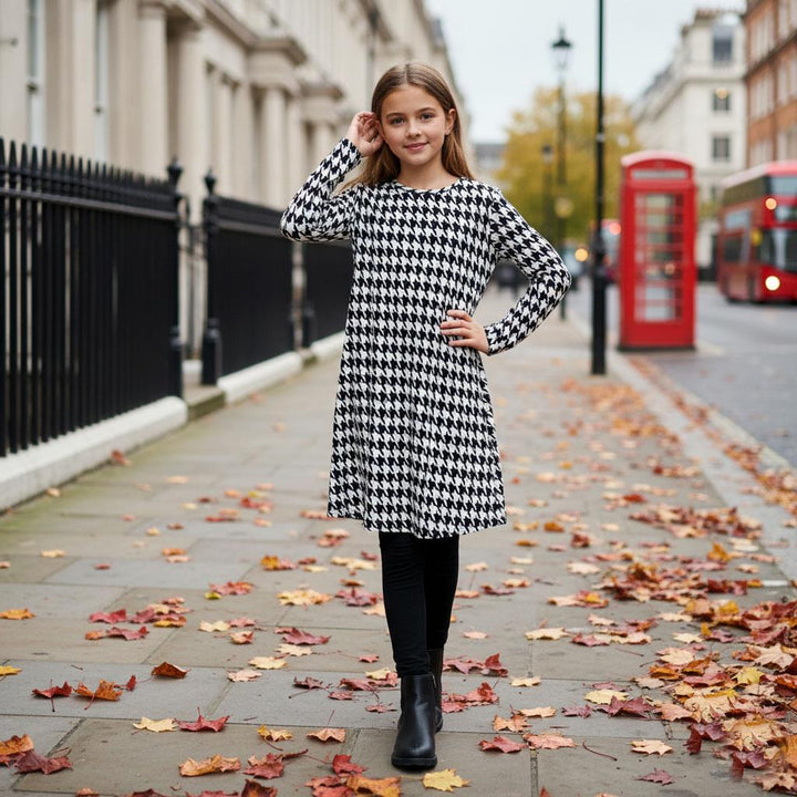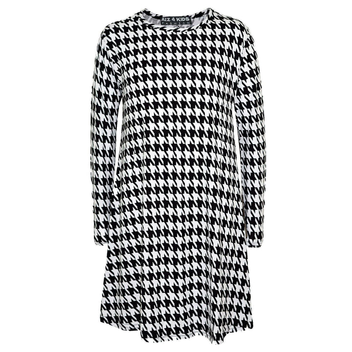 Kids Girls Swing Dress Dog Tooth Print Fashion Dresses New Age 3-13 Years