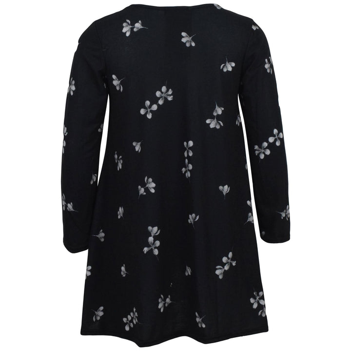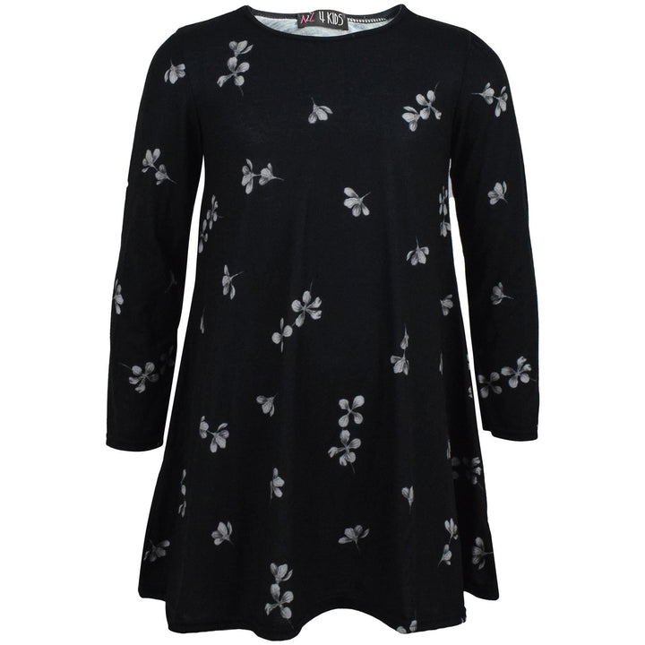 Kids Girls Swing Dress Long Sleeves Black Floral Party Fashion Summer Dresses