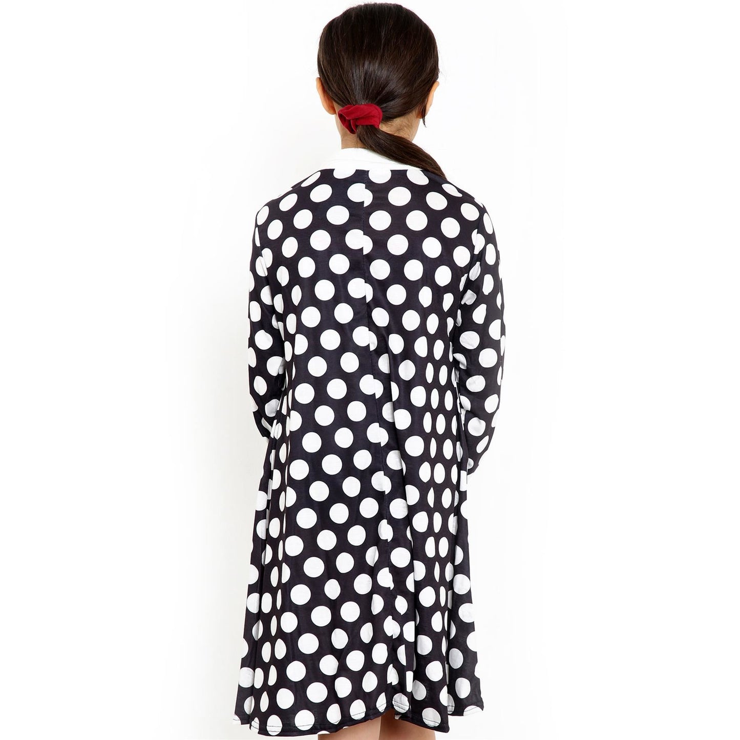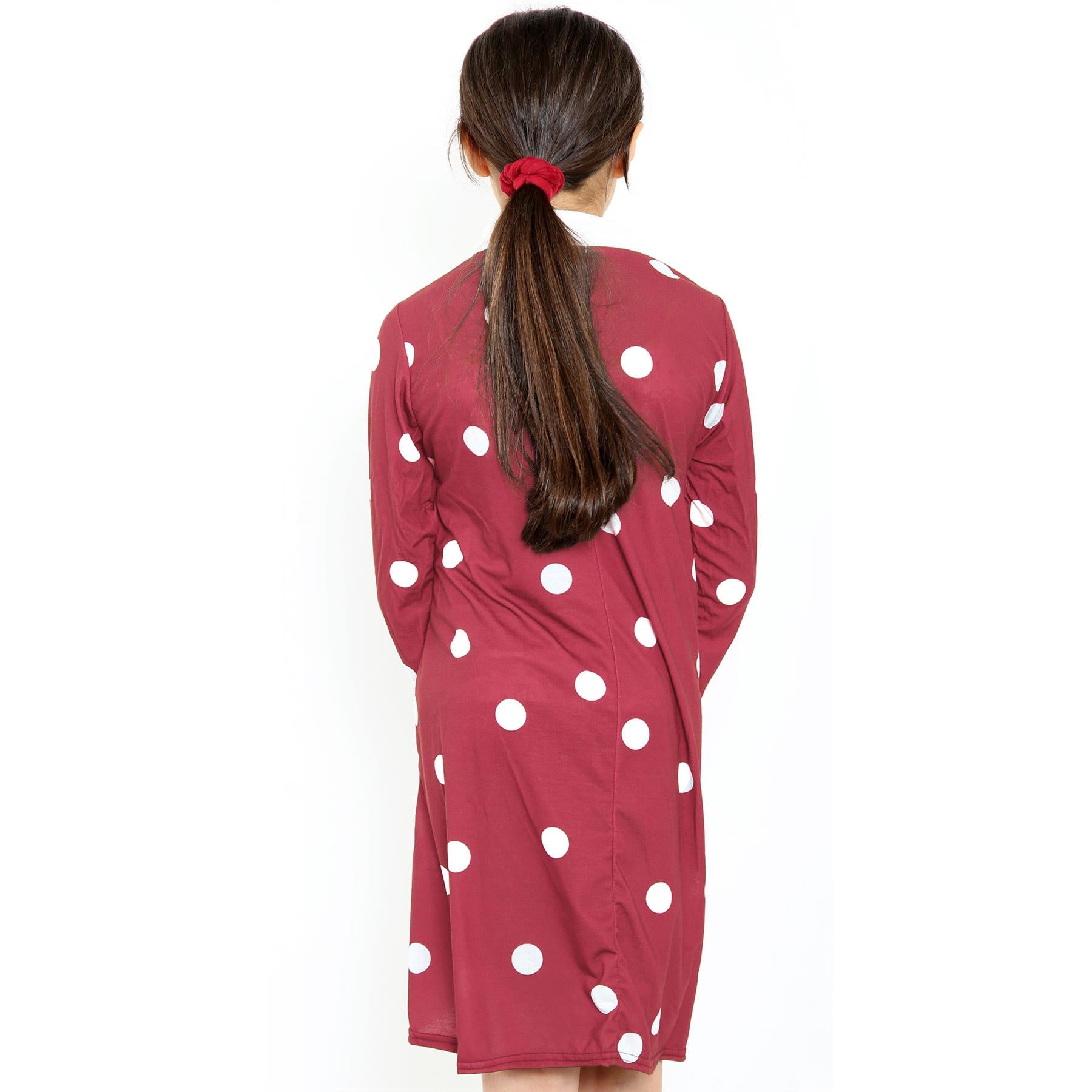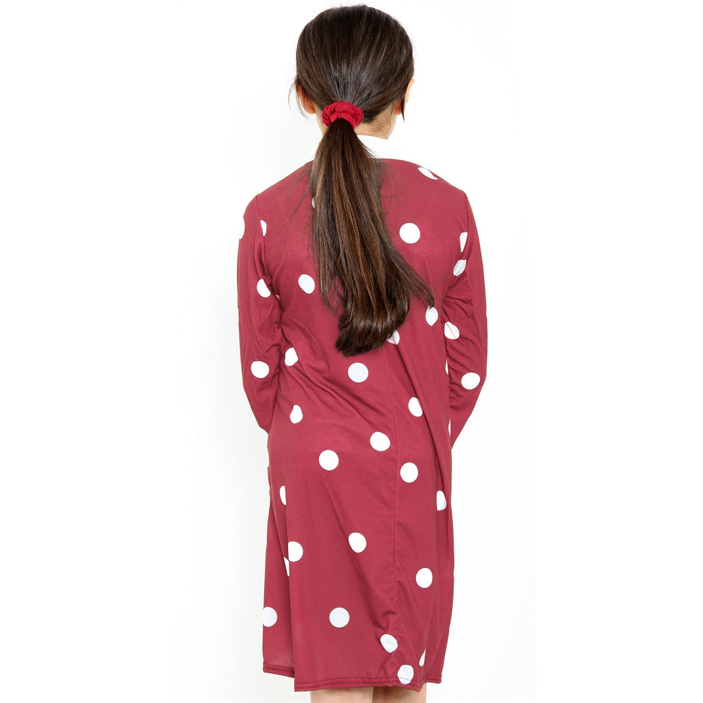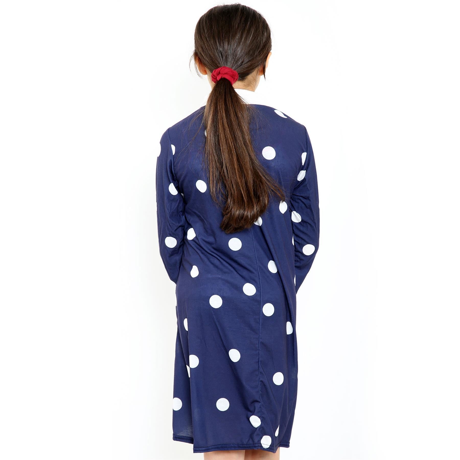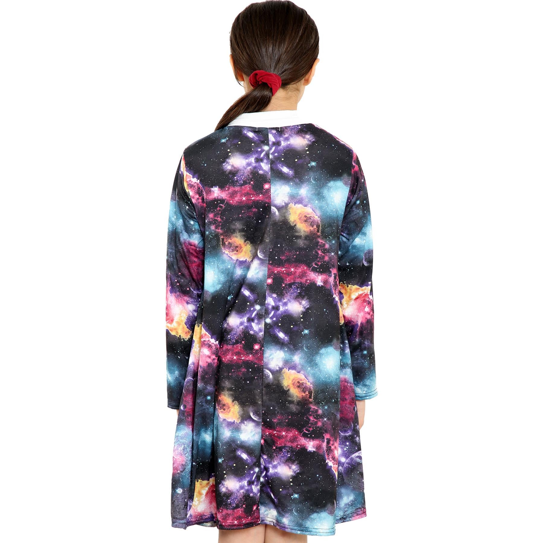 The Girls Dress boasts several attractive features, including a Peter Pan collared neckline, elegant long sleeves, an A-line flared design, a plain solid color shade, knee-length, a pullover design, lightweight Jersey fabric, and exceptional comfort.
