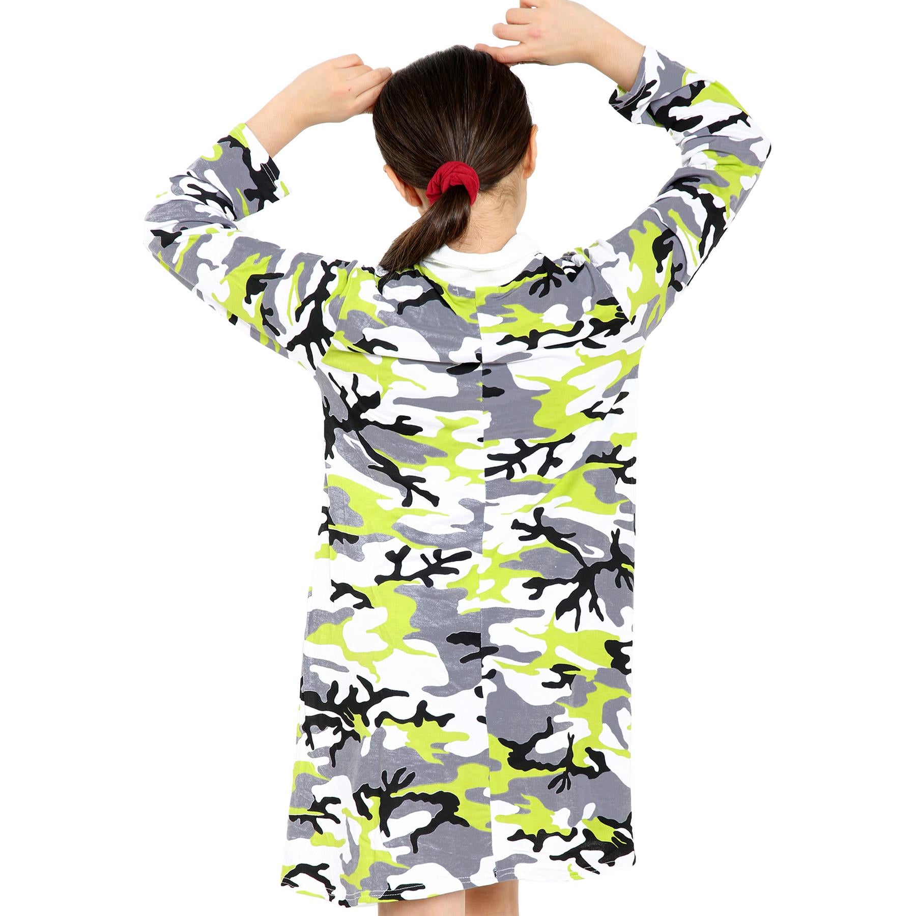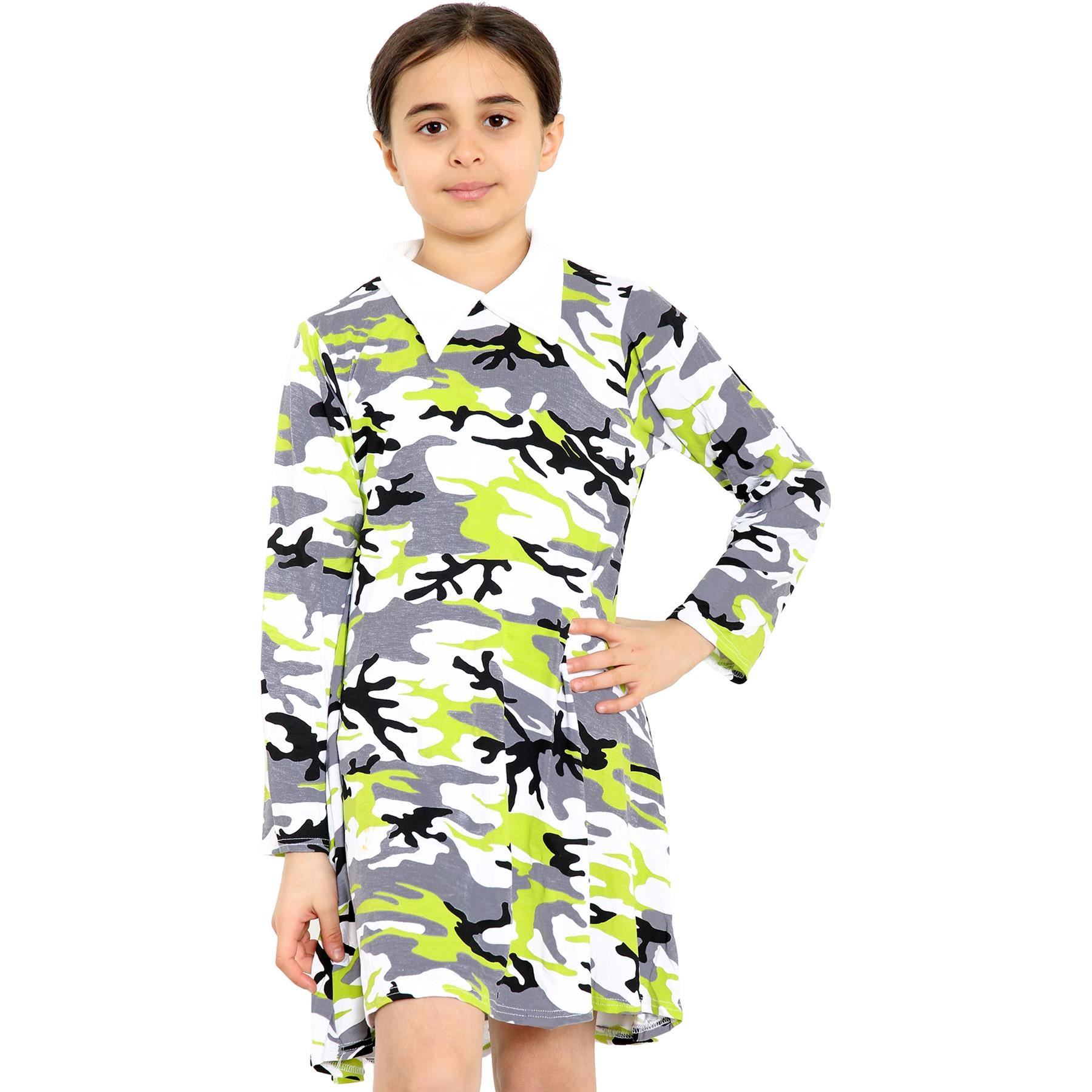 Kids Girls Swing Dress Peter Pan Collar Camouflage Print Flared Skater Dresses