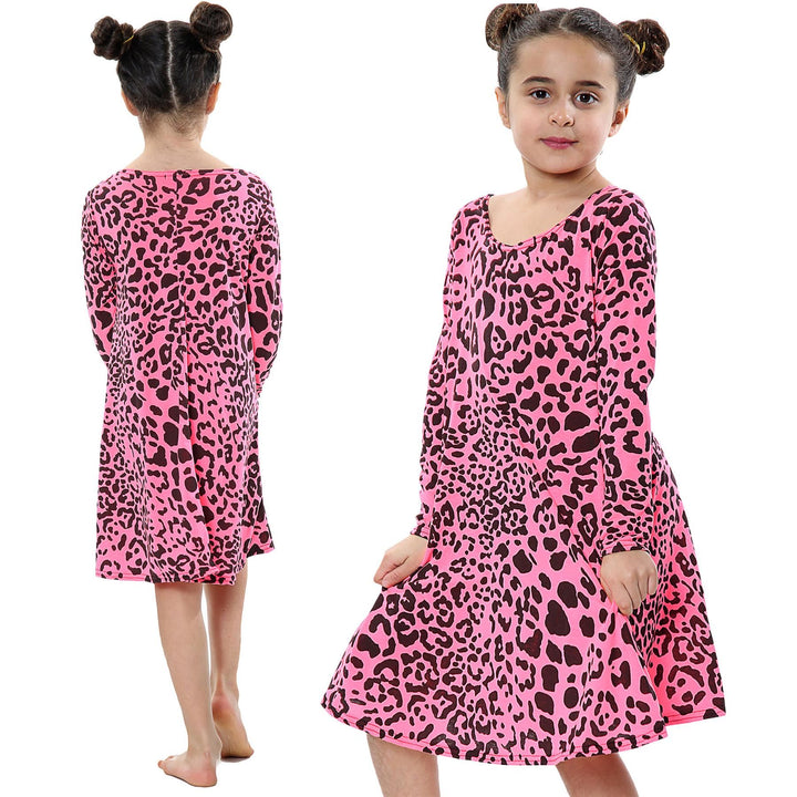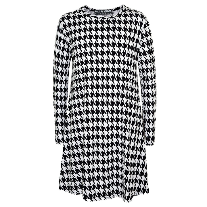 Kids Girls Swing Dresses Spicy Tartan Dog Tooth Print Fashion Dresses 3-13 Years
