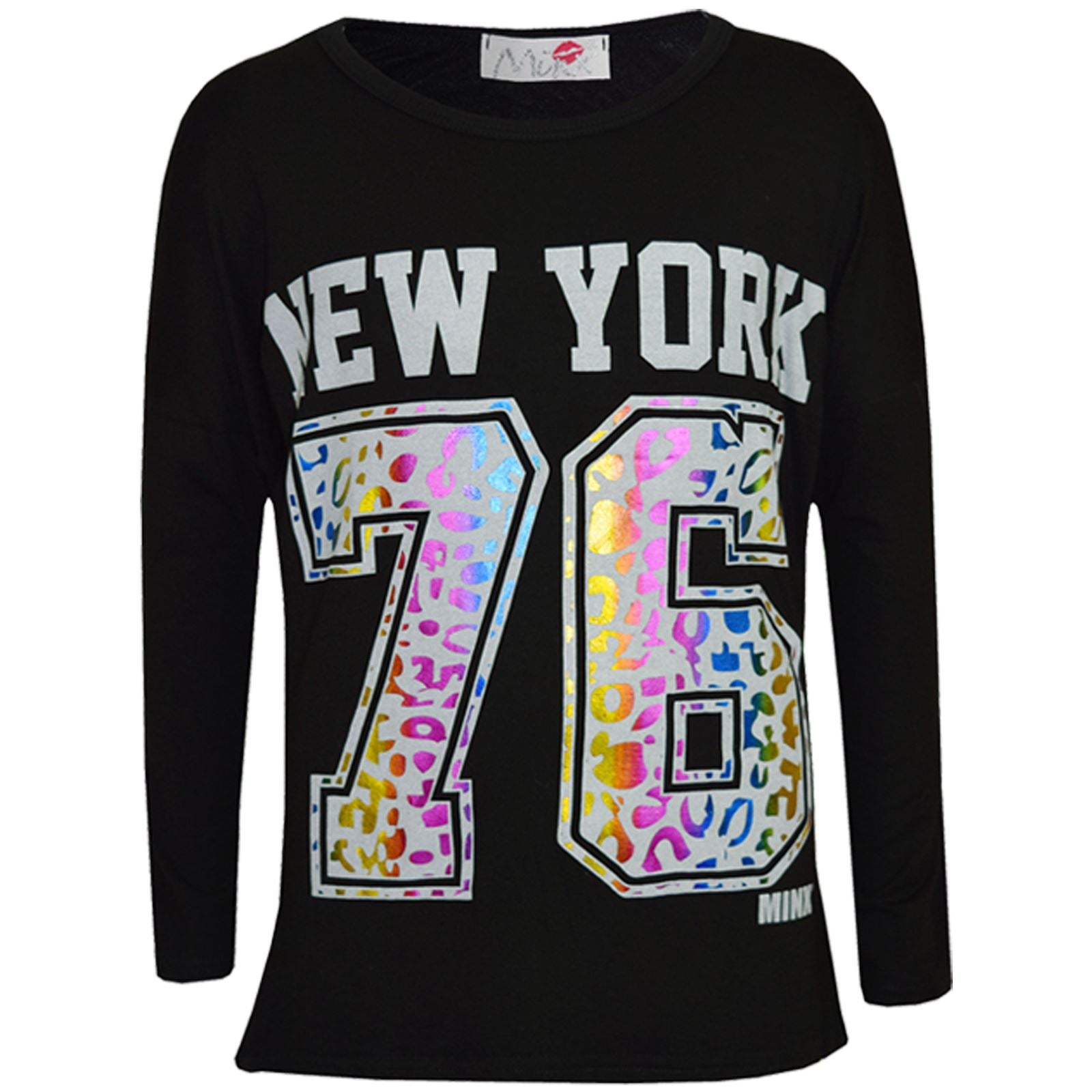 Kids Girls T Shirt New York 76 Multi Color Foil Print Trendy Fashion Top T Shirt