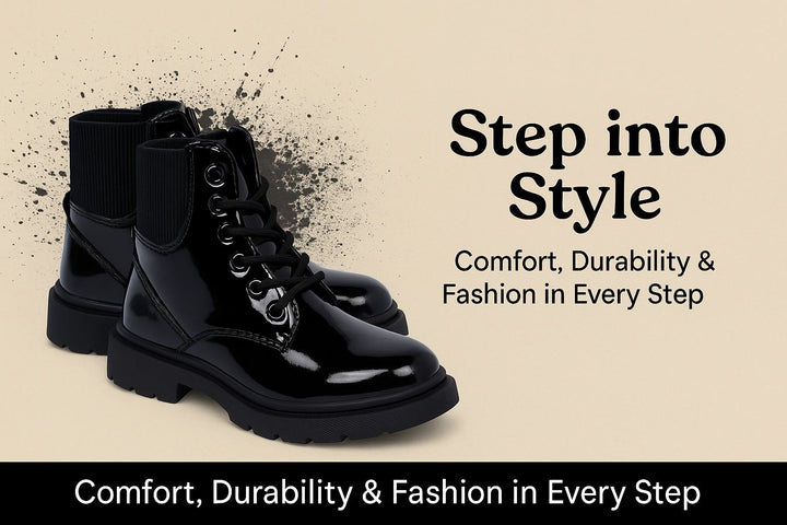 Crafted with a high-shine PU upper, these boots add a sleek, fashionable edge to any outfit while offering easy cleaning and long-lasting wear. Perfect for casual outings, school days, or weekend adventures.