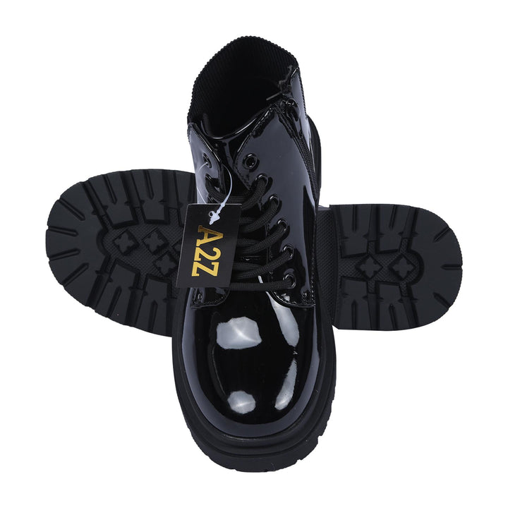 Kids Girls Teens Ladies School Shoes Lace Up Patent Boot Ankle Side Zip & Chunky