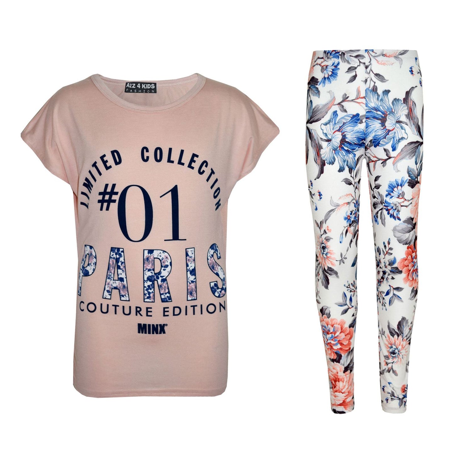 Kids Girls Top #01 Paris Printed Trendy Top & Stylish Legging Set Age 7-13 Years